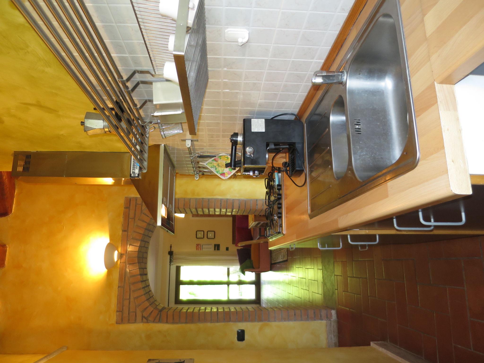 "Casa Domenico 2", 3-room apartment 80 m2. Comfortable and rustic furnishings: living/dining room with 1 double sofabed, open-hearth fireplace, dining table and TV. Exit to the garden, to the veranda. 1 room with 1 double bed. Exit to the garden. 1 room with 1 double bed. Exit to the garden. Open kitchen (dishwasher, 4 gas rings, toaster, freezer, electric coffee machine). Bathroom, bath/shower/bidet/WC. Gas heating. Terrace roofed, patio, garden. Terrace furniture, deck chairs (2). Very beautiful view of the countryside and the resort. Facilities: mosquito net, baby cot. Internet (WiFi, free). Suitable for families. Maximum 1 pet/ dog allowed. IT056036B5I8WRKDXI