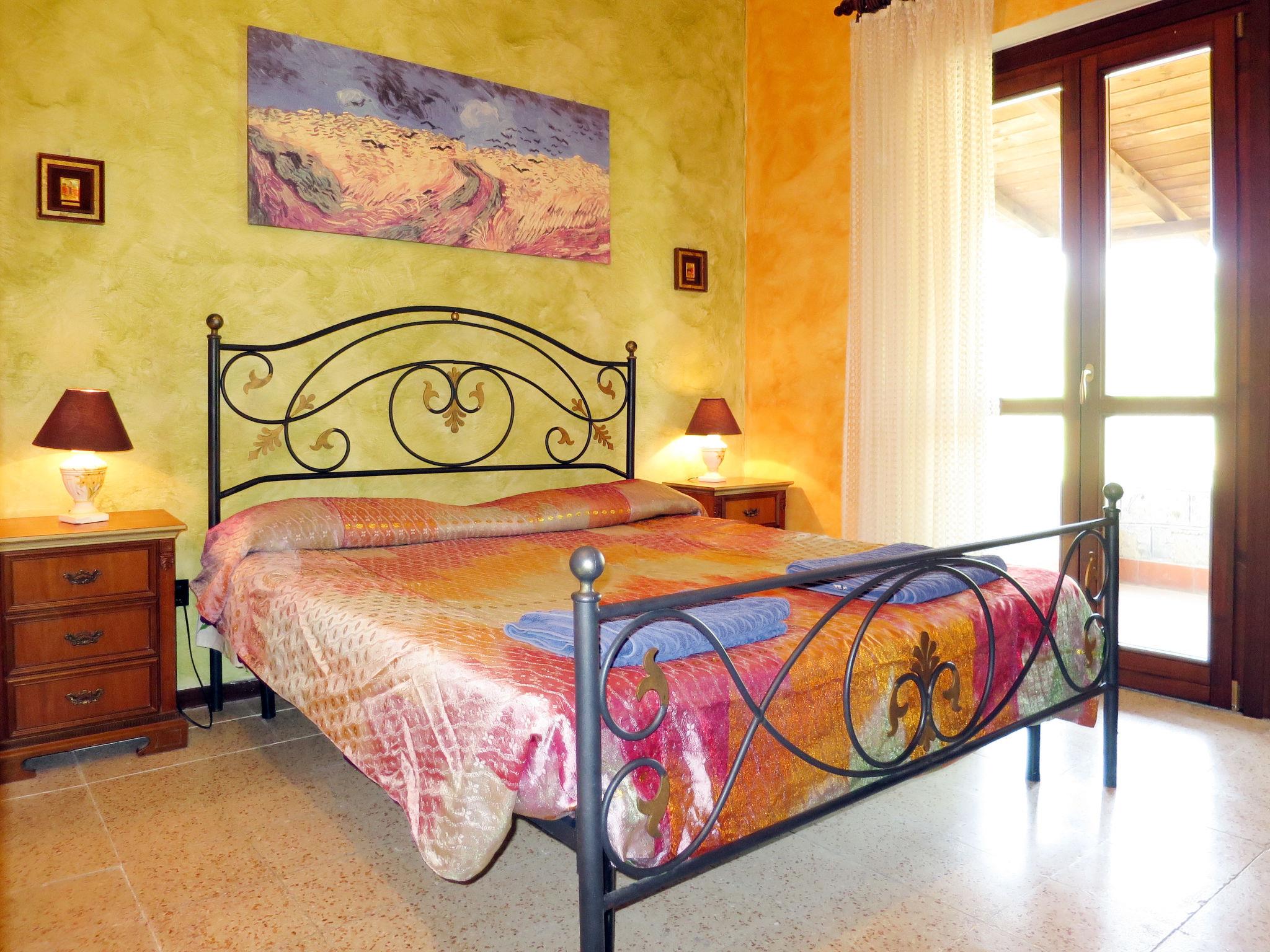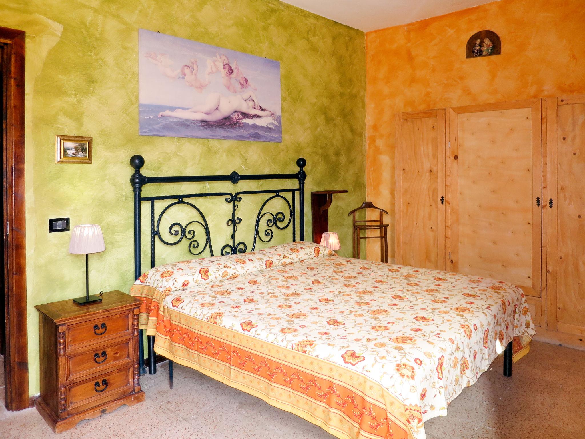 "Casa Domenico n° 1", 4-room apartment 100 m2 on 2 levels. Comfortable and rustic furnishings: living/dining room with 1 double sofabed, dining table and TV. Exit to the garden, to the patio. Open kitchen (oven, dishwasher, 4 gas rings, toaster, freezer, electric coffee machine) with open-hearth fireplace and dining table. Exit to the garden. Upper floor: 1 room with 1 double bed. Exit to the balcony. 1 room with 1 double bed. Exit to the balcony. 1 room with 1 double bed. Exit to the balcony. Shower/bidet/WC. Gas heating. Balcony, terrace roofed, patio, garden. Terrace furniture, balcony furniture, covered balcony. Very beautiful panoramic view of the countryside and the resort. Facilities: mosquito net, baby cot. Internet (WiFi, free). Please note: non-smoking house. 1 small pet/ dog allowed. IT056036B5I8WRKDXI