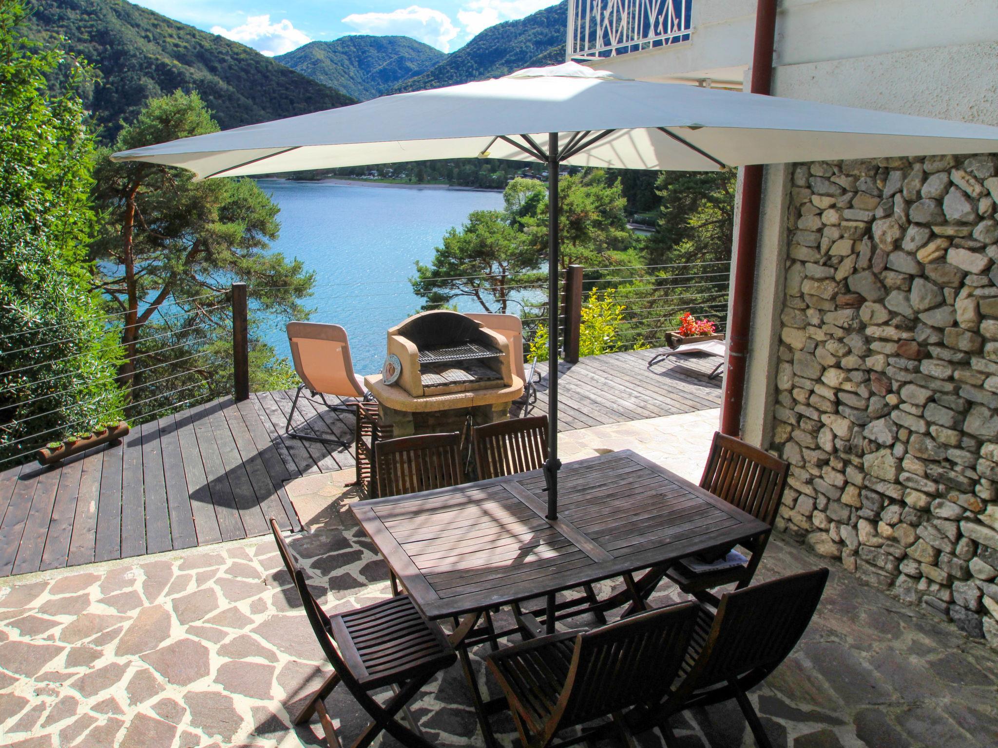 4-room house 100 m2 on 2 levels. Modern and cosy furnishings: 1 large room with panoramic window with 1 bed, 1 double bed and shower/WC. Exit to the terrace. Upper floor: (exterior staircase), 1 room with 1 double sofabed (140 cm). 1 double bedroom. Living/dining room with panoramic window with satellite TV. Exit to the terrace. Kitchenette (4 hot plates, oven, dishwasher, microwave, freezer, electric coffee machine). Shower/WC. Heating (extra). Heating available only from 15.09. to 15.06, Solar power. 2 large terraces. Terrace furniture, barbecue, deck chairs (6). Marvellous view of the lake and the mountains. Facilities: washing machine, iron, hair dryer. Internet (WiFi, free). Please note: maximum 2 pets/ dogs allowed. Smoke alarm, fire extinguisher. No internal connecting door between the floors. IT022229C2VGEB8YOT