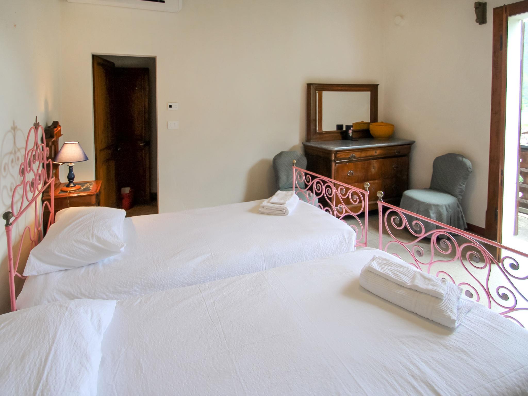 7-room house 200 m2 on 3 levels. Rustic and antique furnishings: large living/dining room with 1 sleeping facility (length 180 cm), TV. Exit to the terrace. Kitchen (oven, 4 induction hot plates, microwave, freezer). Sep. WC. Upper floor: 2 small rooms, each room with 1 bed. 3 rooms, each room with 2 beds. 2 showers/bidet/WC. 2nd upper floor: 1 double bedroom with shower/WC. Heating (extra). Wooden floors. 2 balconies, large terrace 40 m2. Terrace furniture, barbecue. Beautiful view of the lake and the mountains. Facilities: baby cot for up to 3 year olds. Internet (WiFi, free). Maximum 2 pets/ dogs allowed. IT022229C2RRSNK7SF