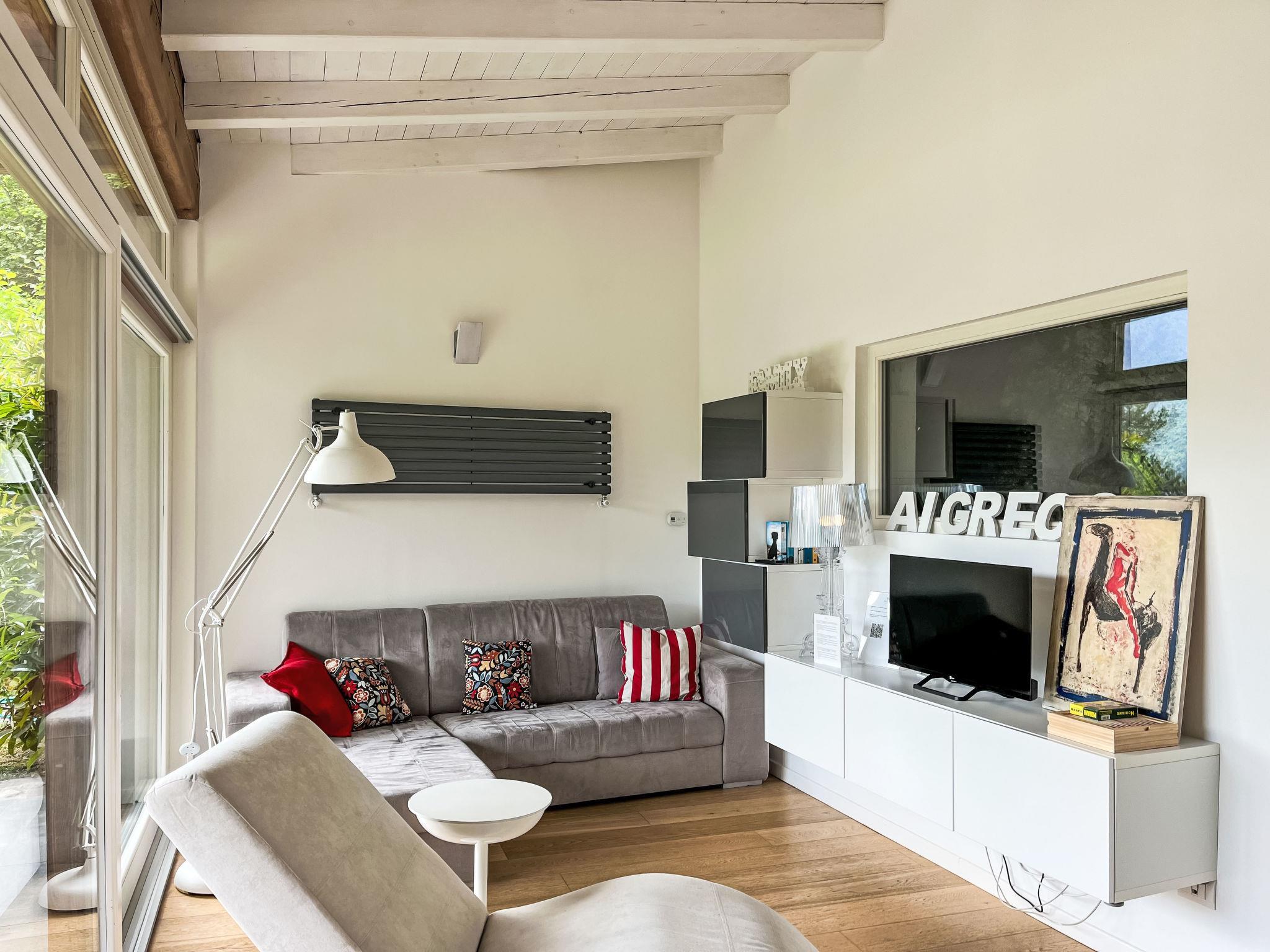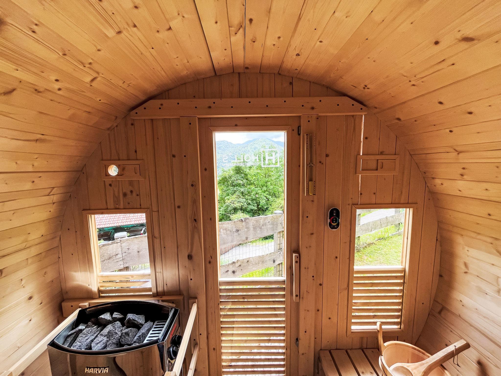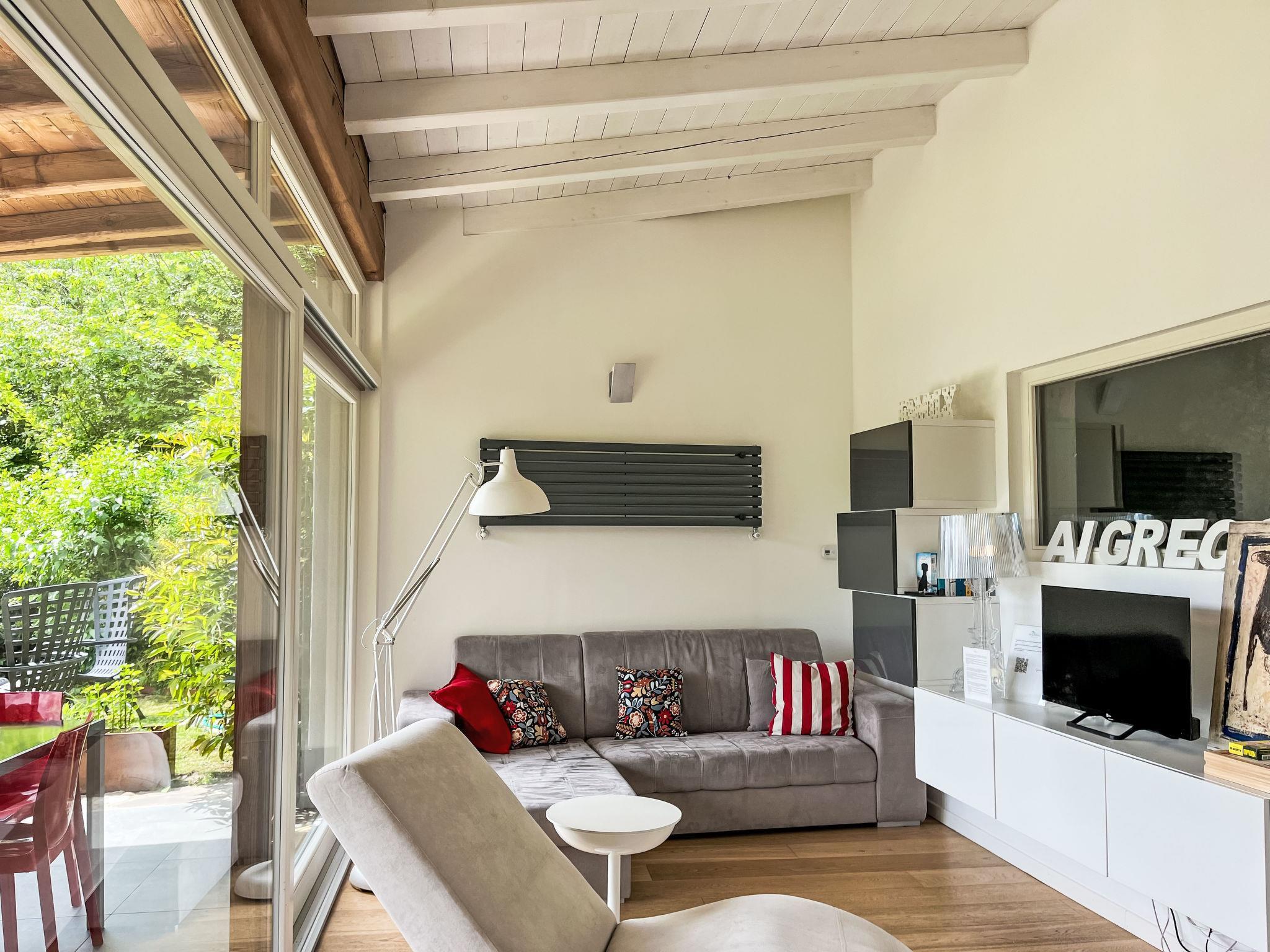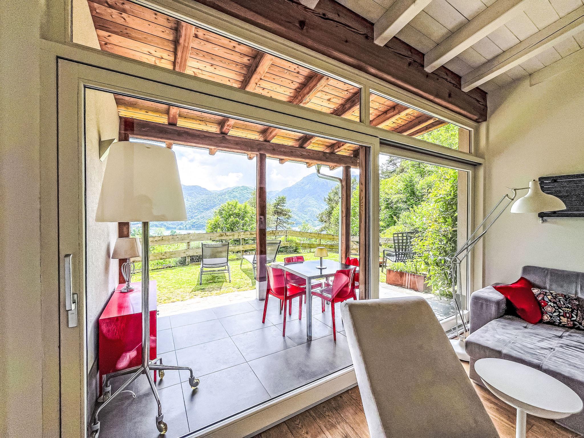 2-room house 60 m2 on 2 levels. Comfortable and tasteful furnishings: living/sleeping room with panoramic window with 1 sofabed, Scandinavian wood stove and satellite TV. Exit to the patio. Kitchen (oven, dishwasher, 4 induction hot plates, kettle, microwave, electric coffee machine). Exit to the garden. Shower/bidet/WC. Upper floor: 1 double bedroom with bath/WC. Heating. Heating available only from 01.10. to 01.05. Patio roofed. Terrace furniture, barbecue, deck chairs (2). Panoramic view of the lake and the mountains. Facilities: washing machine, hair dryer. Internet (WiFi, free). Maximum 3 pets/ dogs allowed. IT022229C2UTIB7GIW