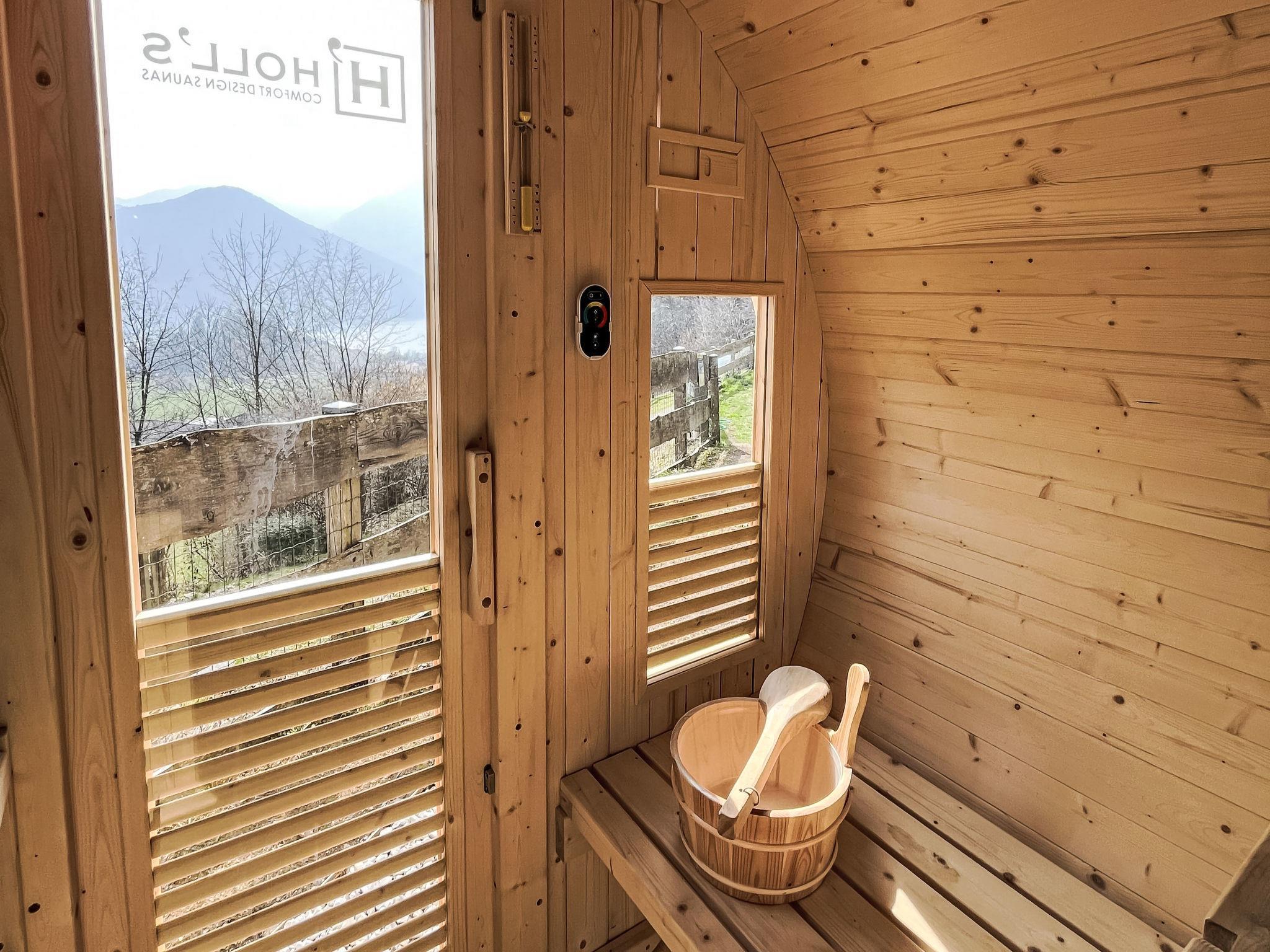 Chalet "Ai Grecc". In the hamlet Mezzolago, in a quiet, elevated position, 600 m from the lake, in a cul-de-sac. Private: garden (fenced) with lawn. In the house: sauna. Parking on the premises. Supermarket 1.5 km, restaurant 1 km, bar 1 km, bus stop 600 m. Well-known lakes can easily be reached: Garda 15 km. Please note: car recommended. Customers can use a swimming pool for free in a residence about 200m from the house (from mid-May to mid-September).