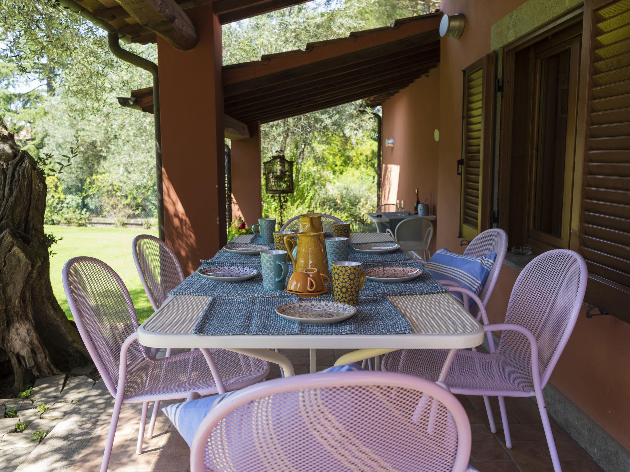 Beautiful, comfortable villa "Casal di Yuri", detached, surrounded by trees. In the district of Tre Croci 5 km from the centre of Vetralla, 16 km from the centre of Viterbo, 70 km from the centre of Roma, 13 km from the lake. Private: well-kept garden 1'500 m2 (fenced) with lawn and wildlife garden, swimming pool (12 x 6 m, seasonal availability: 23.May. - 03.Oct.). Outdoor shower, garden furniture, barbecue, parking at the house on the premises. Shop 100 m, supermarket 4 km, bus stop 1.2 km, railway station "Vetralla" 4 km, sandy beach "Lido di Tarquinia" 40 km, lake Vico 13 km. Golf course (18 hole) 26 km. Nearby attractions: Sutri 20 km, San Martino In Cimino 6 km. Well-known lakes can easily be reached: Bolsena 38 km, Bracciano 31 km. Please note: car recommended. Groups of teenagers on request only. The owner does not accept any youth groups. The owner lives on the same property.