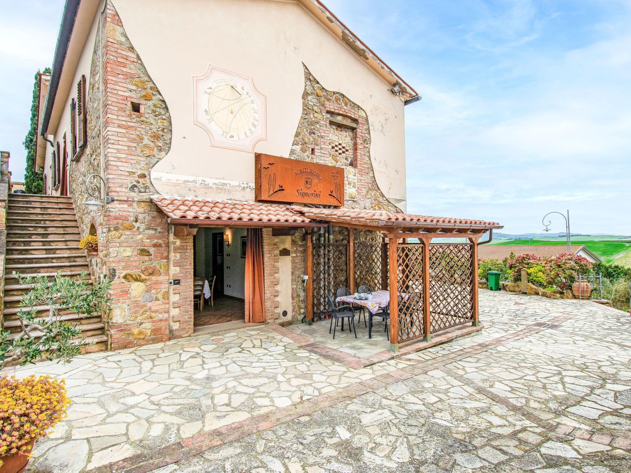 Cosy, comfortable country house 200 m a.s.l., renovated in 2005, surrounded by trees and vineyards. 5 km from the centre of Lajatico, on top of a hill, in the countryside. For shared use: property 43 ha (fenced), plants and trees, beautiful garden to relax, swimming pool fenced (14 x 6 m, depth 100 - 150 cm, seasonal availability: 01.May. - 01.Oct.). Table tennis, children's playground. In the house: washing machine (extra), heating available only from 15.Nov. - 15.Apr.. Parking (for 2 cars) on the premises. Grocery 7 km, supermarket 7 km, restaurant 10 m, bus stop 2 km, railway station 35 km. Nearby attractions: San Gimignano 25 km, Pisa 50 km, Volterra 15 km, Marina di Cecina 40 m. Please note: baby equipment on request.