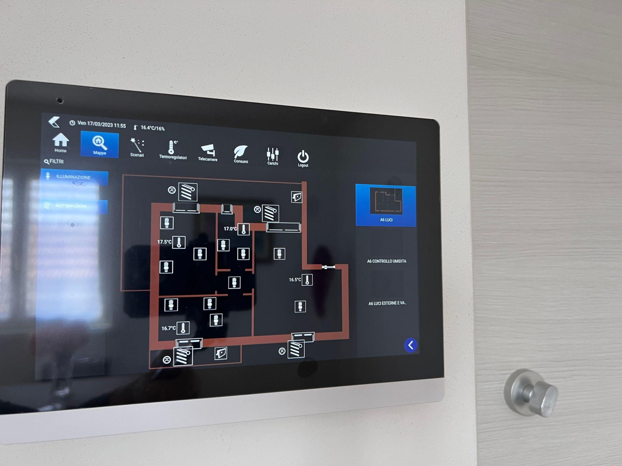The whole condominium is brand new. The flat is very bright with large windows and a large balcony, which allows you to enjoy relaxing moments in the open air. It is composed of a living room with kitchen, a double bedroom with a bed 160x190 furnished with wardrobe, chest of drawers, bedside tables, mirror and terrace, a room with two single beds 80 x 190 furnished with wardrobe, chest of drawers, bedside tables, mirror and terrace, a large bathroom with washbasin, toilet, bidet, shower with crystal box and washing machine, a kitchen with table and chairs, the kitchen is equipped with stove, oven, kettle, refrigerator, freezer, sink, dishwasher and a large French window on a large terrace.The furniture is characterised by modern solutions, in fact it is equipped with the latest home automation system and internet access via wifi.