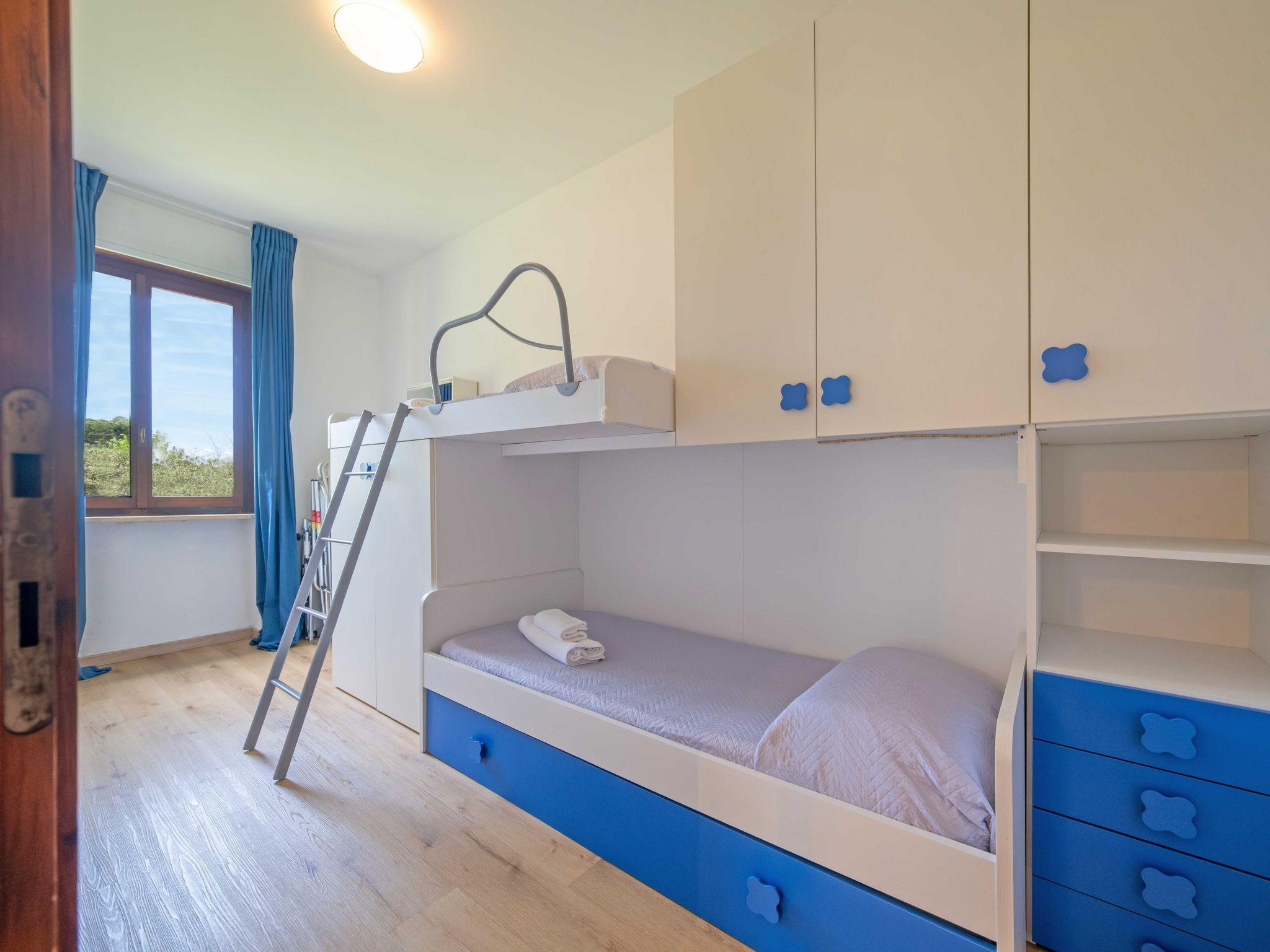 The interior, measuring approximately 80 square metres, has been partially renovated and furnished with your comfort in mind. You will find a spacious living room with a kitchenette and a sofa that can be converted into a double bed to relax after a day of exploring. The house includes a double bedroom with pleasant views of the garden and pool, and a smaller room perfect for younger guests, with two bunk beds and an additional pull-out bed. A bright bathroom with shower and washing machine completes the offer, providing all the comforts of home. Air conditioning, Wi-Fi and satellite channels are available for your entertainment and comfort.