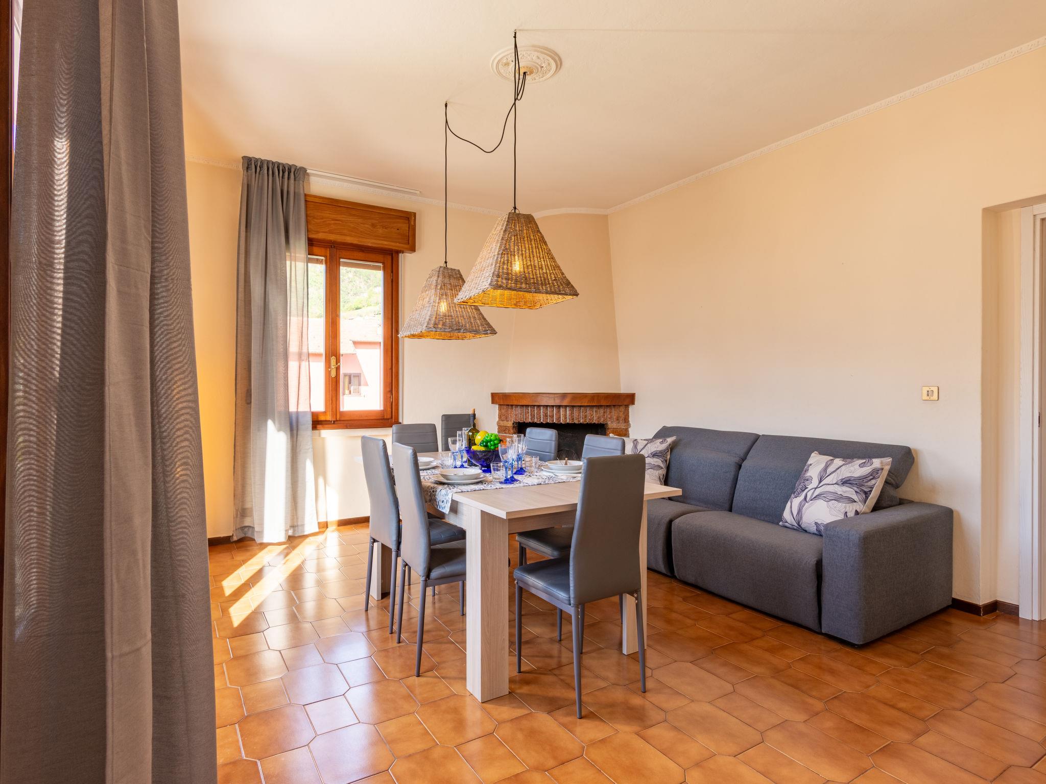5-room apartment 100 m2 on 1st floor. Bright, partly renovated in 2023, beautiful furnishings: living room with dining table and TV. Exit to the garden. Walk-through room with 1 double bed. 1 room with 1 double bed. 1 room with 3 beds. Dining room with open-hearth fireplace (only for decoration), dining table. Exit to the balcony. Small kitchen (dishwasher, 4 induction hot plates, kettle, microwave, freezer, electric coffee machine). Shower/WC. Heating. Heating not available in all rooms. Balcony, terrace roofed, porch. Terrace furniture, balcony furniture, barbecue. View of the lake. Facilities: children's high chair, baby cot for up to 2 year olds. Internet (WiFi, free). Parking (1 car), garage (2 cars). Please note: non-smokers only. IT013252C2AFZ5ZG53