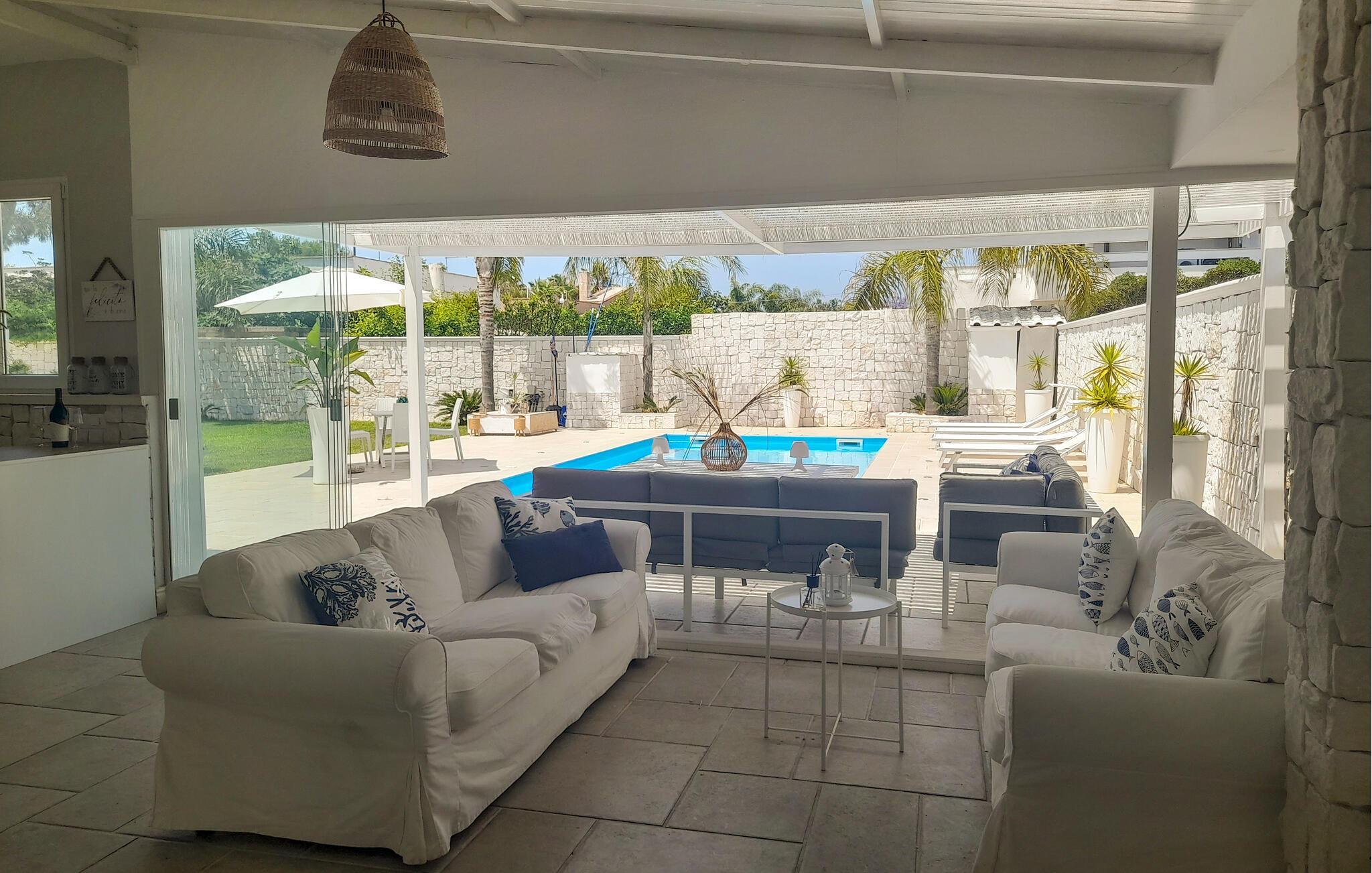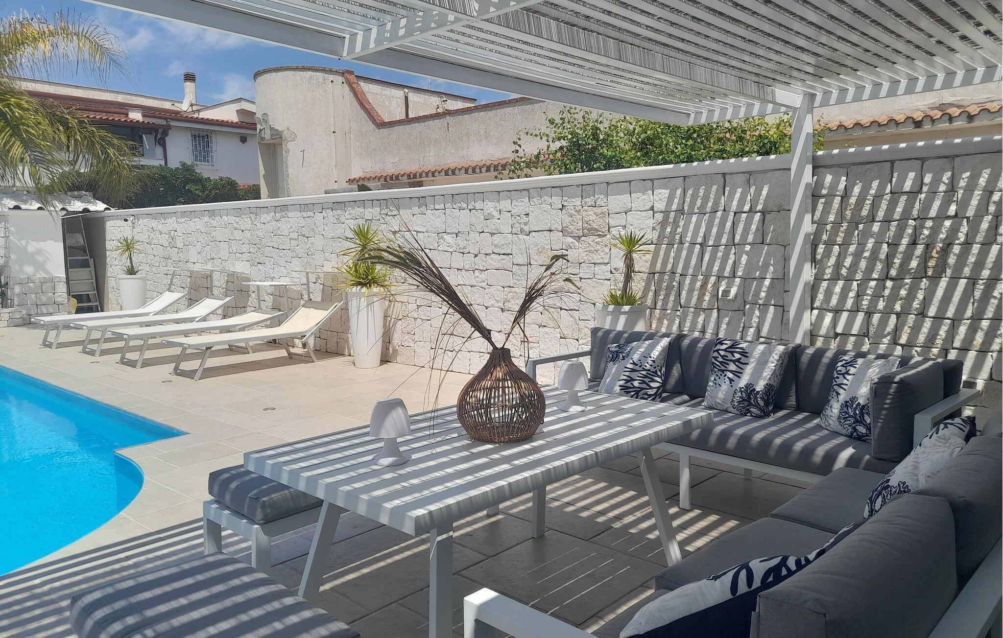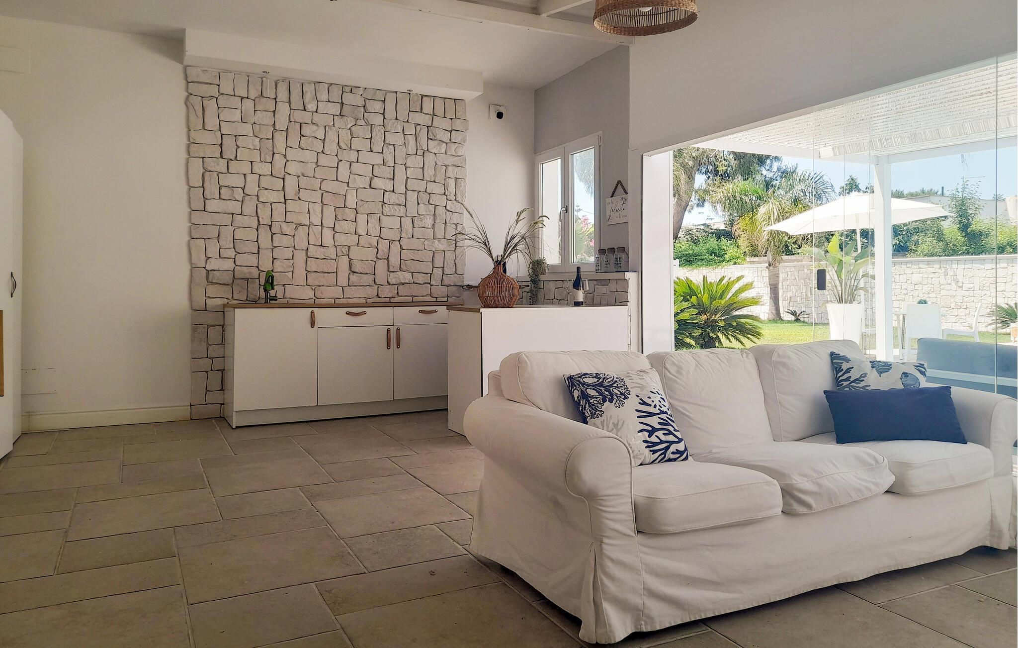 Velkommen til dette udsøgte feriehus i Leporano, hvor I kan se frem til en ferie med sol, vand og masser af komfort. Huset er flot indrettet med særlige stenvægge, lyse farveskalaer og alle de bekvemmeligheder, I behøver for at have det lækkert med dem, I holder af. Den komfortable og rummelige stue er udstykket med et praktisk tekøkken og en bar, hvor I kan hygge jer i mange timer. I det velindrettede familiesoveværelse kan I både nyde en velfortjent nattesøvn og forkæle jer selv med en tur i spabadet efter en dejlig dag på farten.