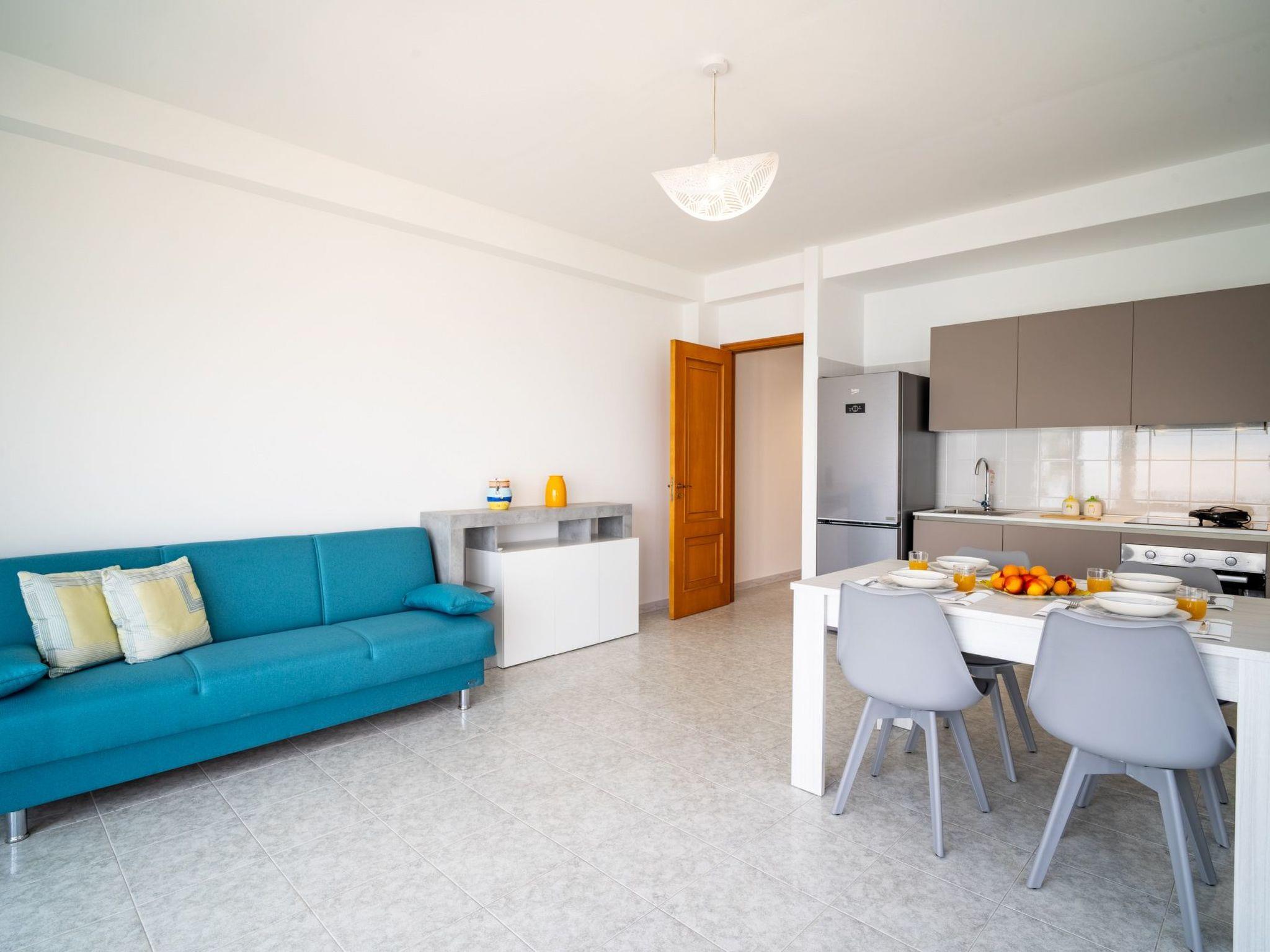 The flat can accommodate up to four people and is perfect for couples, families or small groups of friends. Inside you will find a bright and quiet double bedroom, a single bedroom, a complete bathroom with shower and a kitchen-living room with a sofa bed, ideal for relaxing after a day at the sea and in the sun.