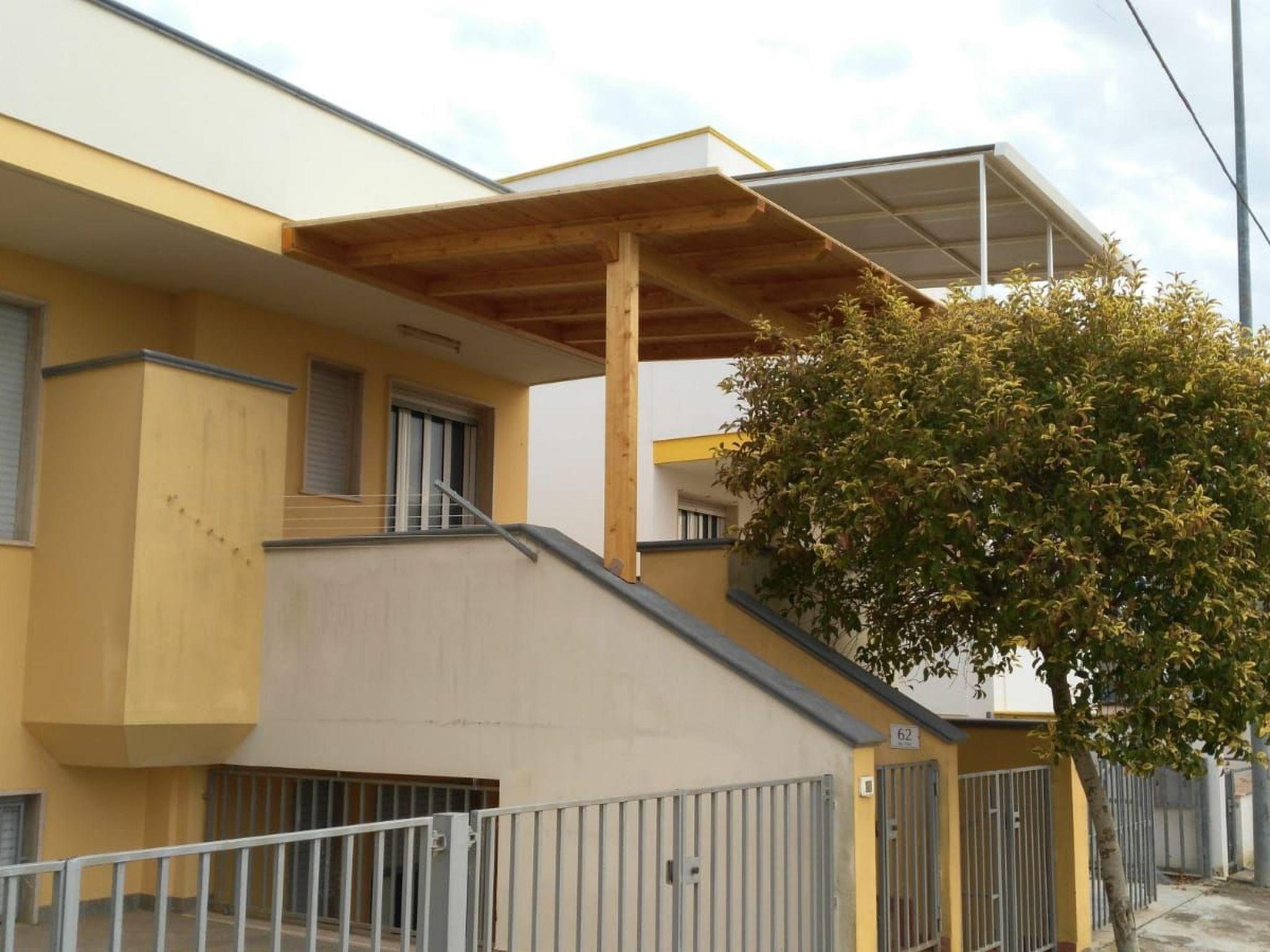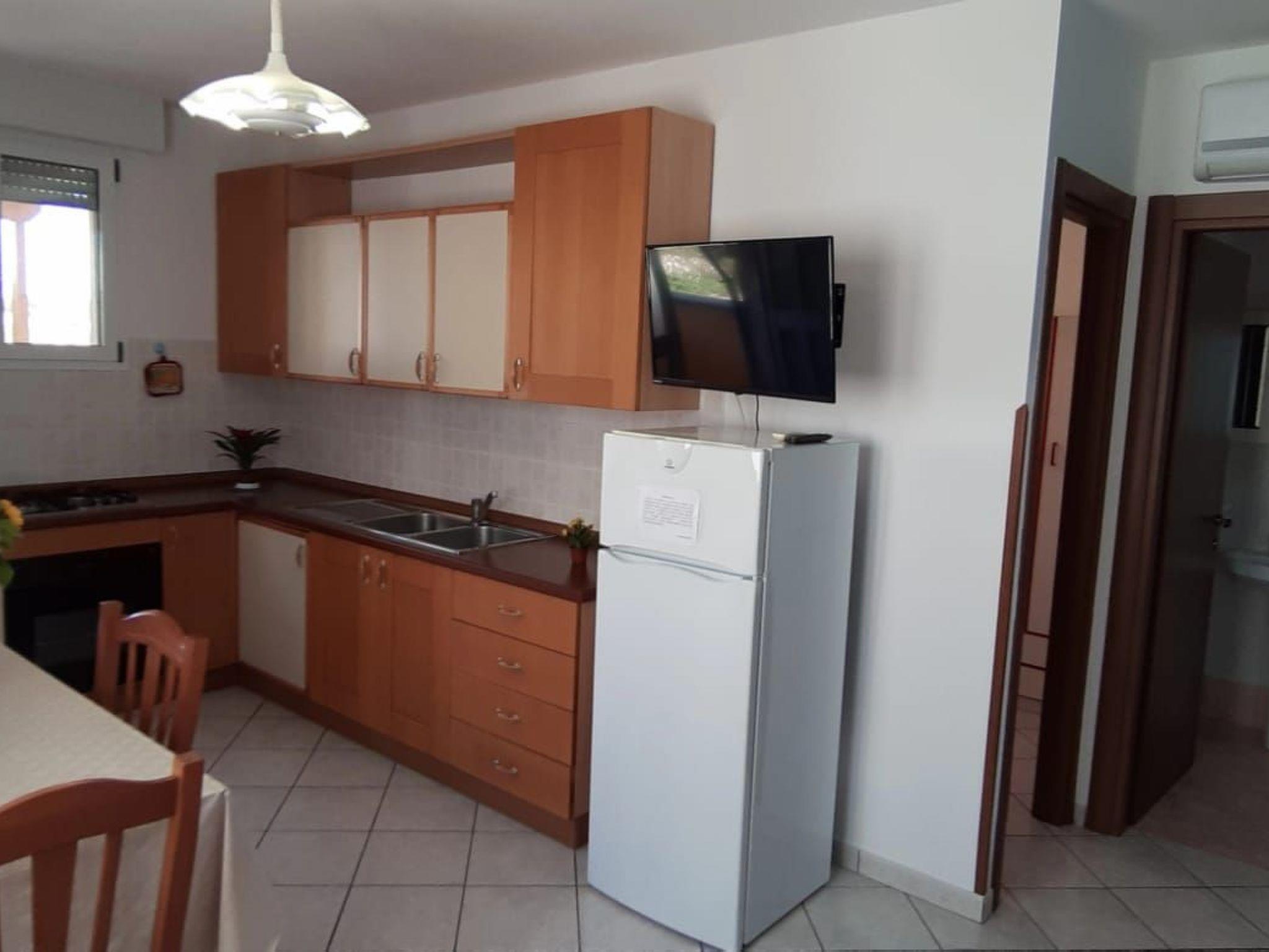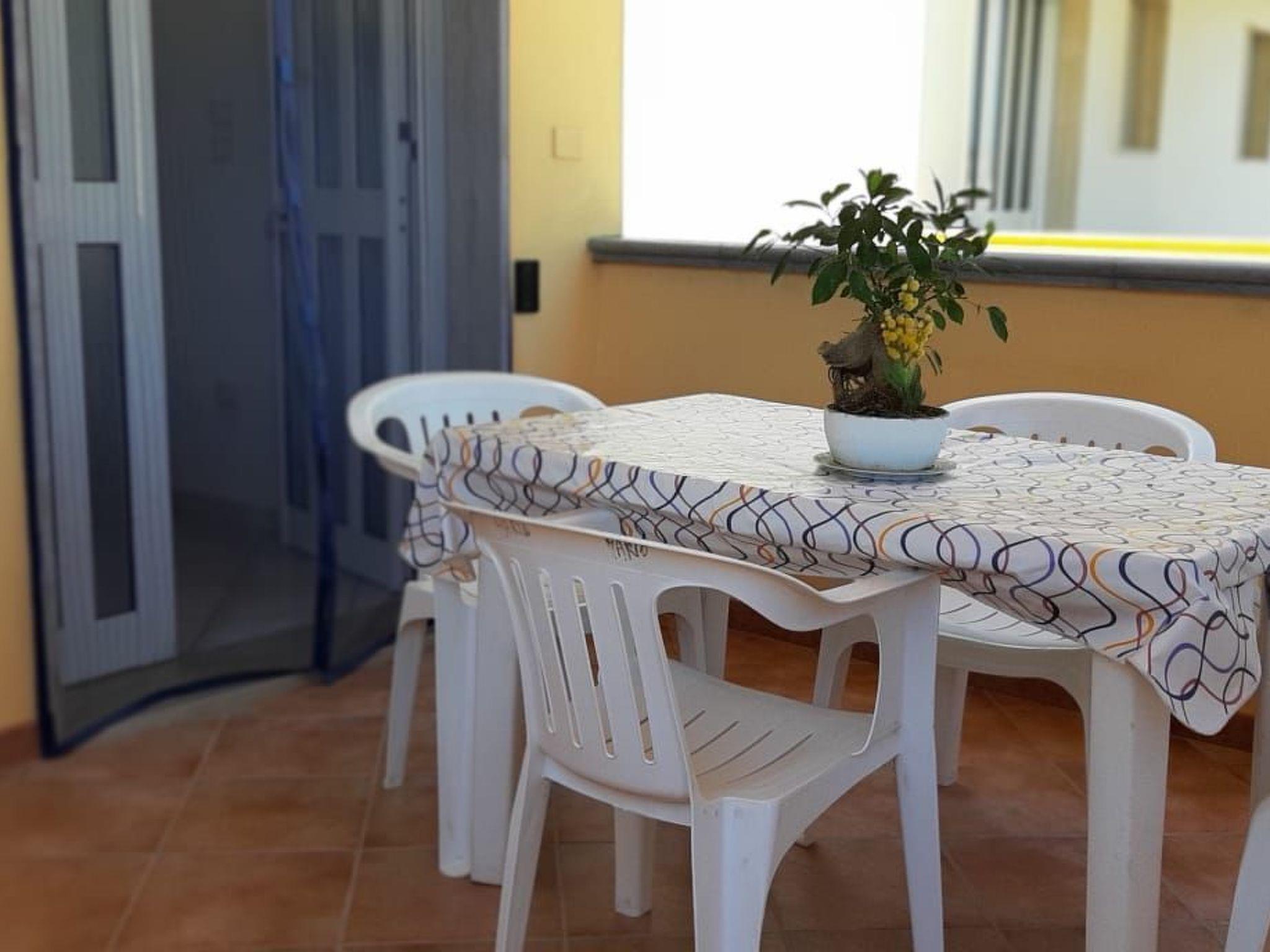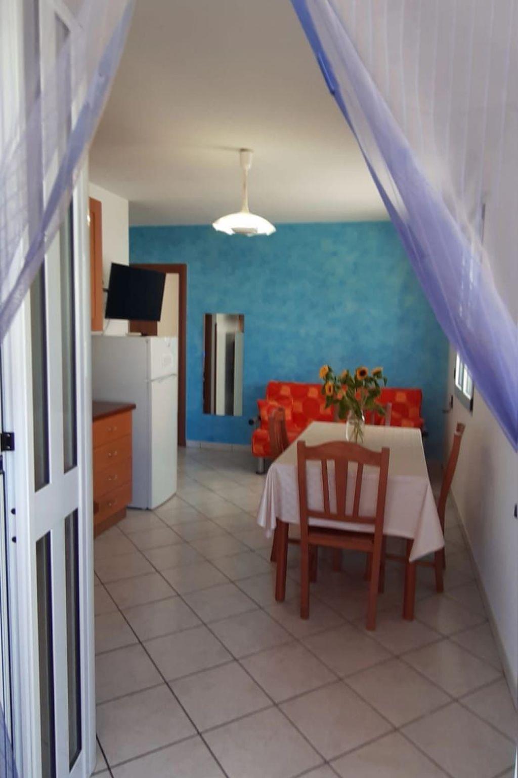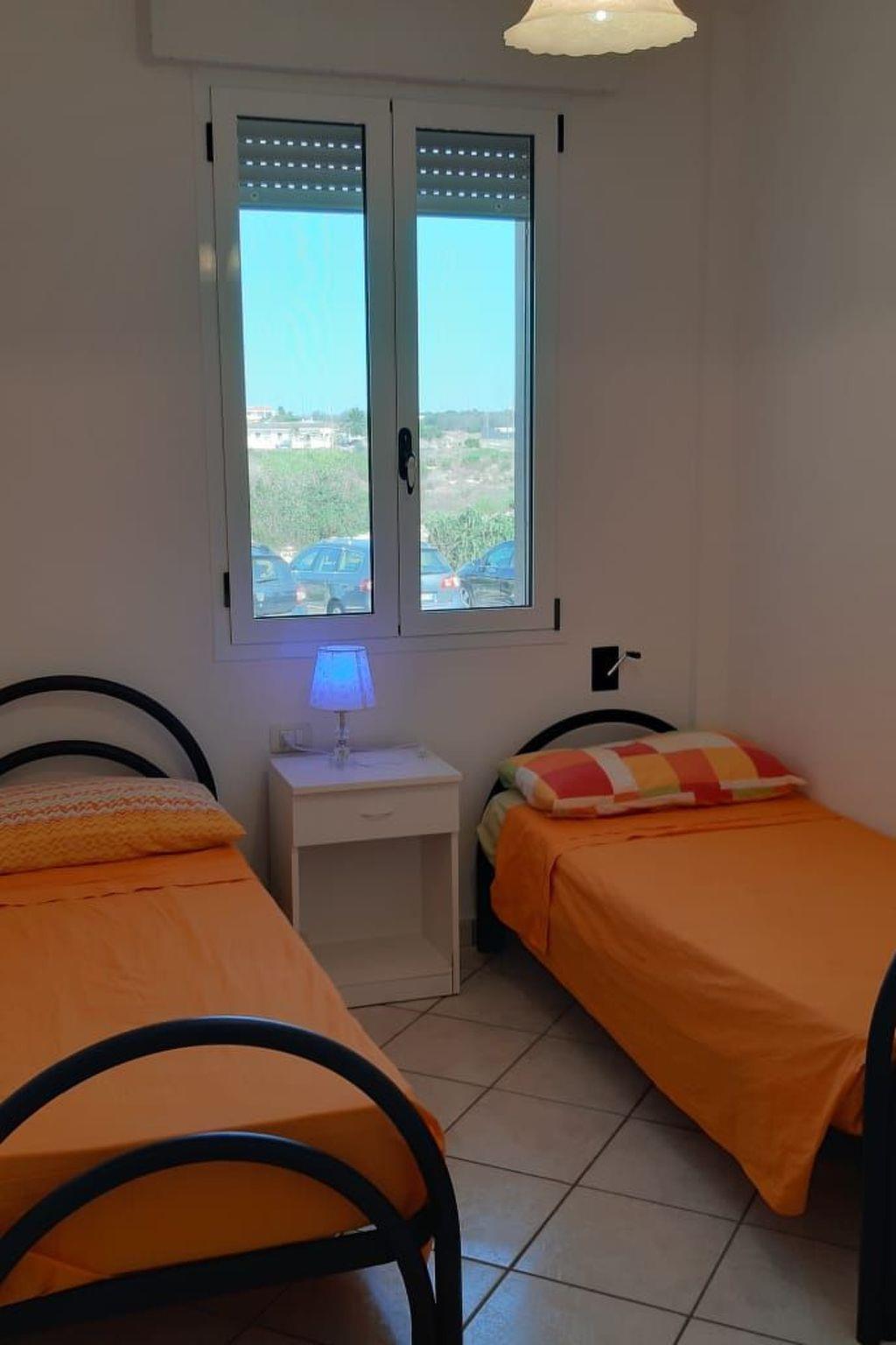 Three-room air-conditioned apartment on one floor consisting of a living room with a modular kitchen with a 2-seater sofa bed, 32" colour TV, fridge with freezer, kitchen with four burner cooker and gas oven, two-mouthed sink, dishwasher, six-seater table with four wooden chairs, double bedroom with double bed, 180 metres wide, two bedside tables, two-door wardrobe, clothes hanger behind the entrance door, small bedroom with two separate beds, 90 metres wide, two-door wardrobe, mirror and bedside table, clothes hanger behind the entrance door, bathroom with: WC; bidet; washbasin; mirror; shower; towel hanger, large veranda furnished with table and four additional resin chairs, second shower, outside, clothes rack. Free parking, in front of the house. Nearby, 150 mt. bike rental, the stop of Salento in Bus with which you can also move up to Lecce, for schedules and costs just check the site by typing on google: "Salento in bus", 1.5 km the track Salentina go kart, where the famous MTB race (Marathon of Salento) with more than 1300 members and where you can rent go kart racing with friends and spending a pleasant evening.