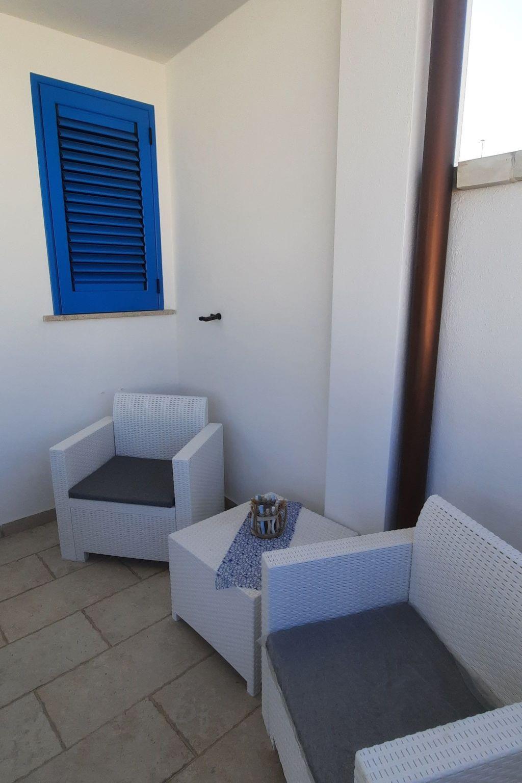 The holiday flat in Lido Marini, built in 2013, is only 100 metres from the sandy beach.