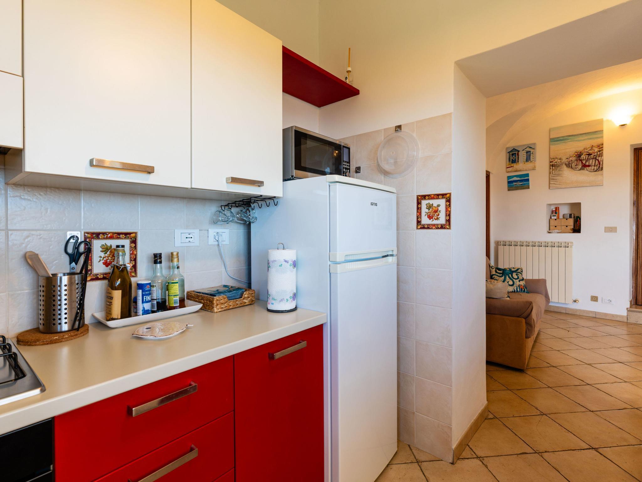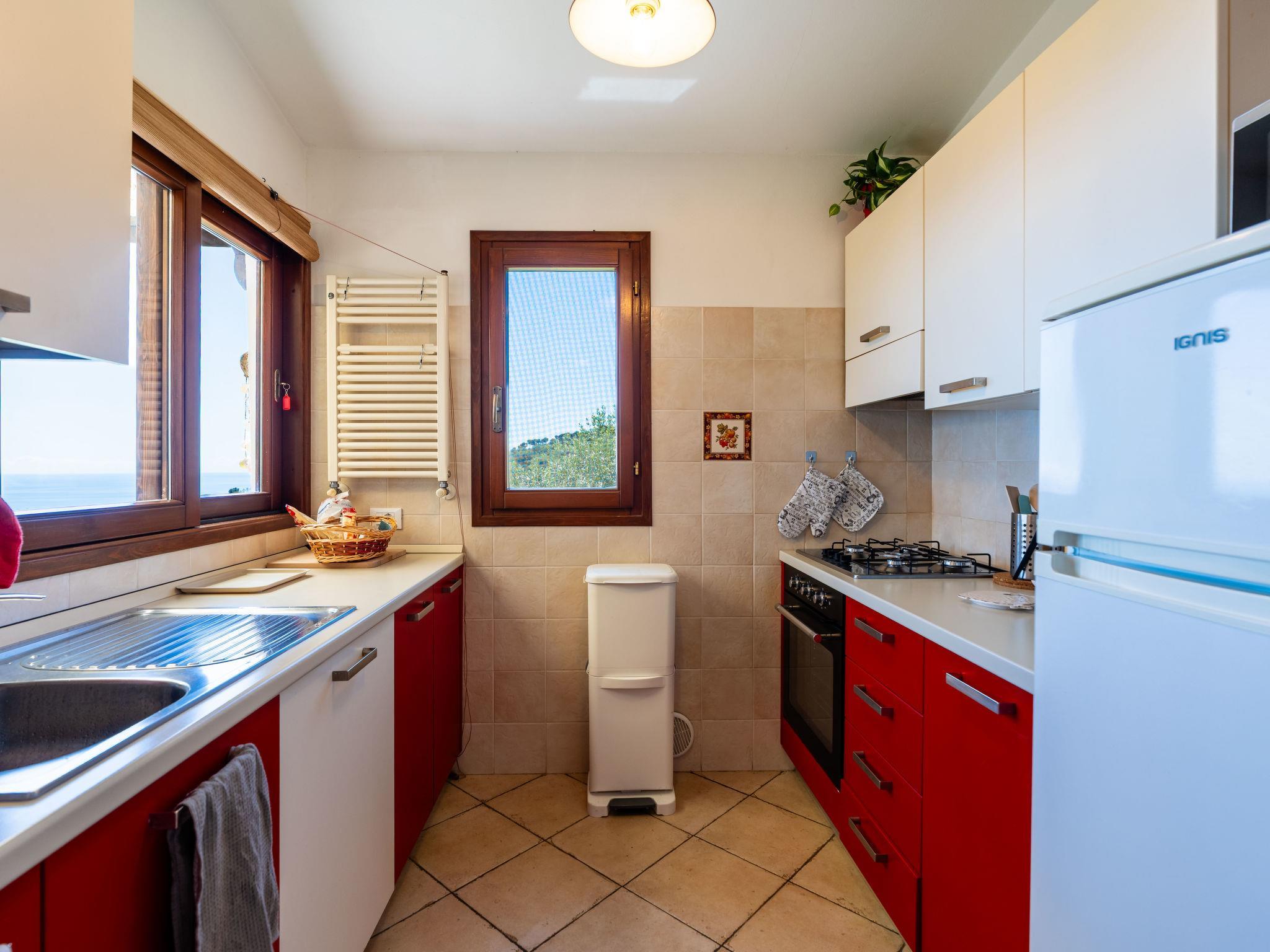 "Terrazza Bella Vista", 3-room apartment 70 m2, on the upper ground floor. Spacious and bright, fully renovated in 2025, tasteful and cosy furnishings: 1 room with 1 double bed (1 x 160 cm, length 200 cm). 1 room with 1 bed (80 cm, length 200 cm), 1 x 2 bunk beds (80 cm, length 200 cm). Living/dining room. Exit to the terrace. Open kitchen (oven, 4 gas rings, toaster, kettle, microwave, freezer, grill, electric coffee machine). Shower/bidet/WC. Heating. Heating available only from 15.10. to 20.04. Parquet floors. Small terrace, south facing position. Terrace furniture, electric barbecue. Marvellous panoramic view of the sea and the resort. Facilities: washing machine, dryer, iron, mosquito net, hair dryer. Internet (WiFi, free). Please note: private entrance, smoke alarm, fire extinguisher. IT008021C2M2UB9UX8
