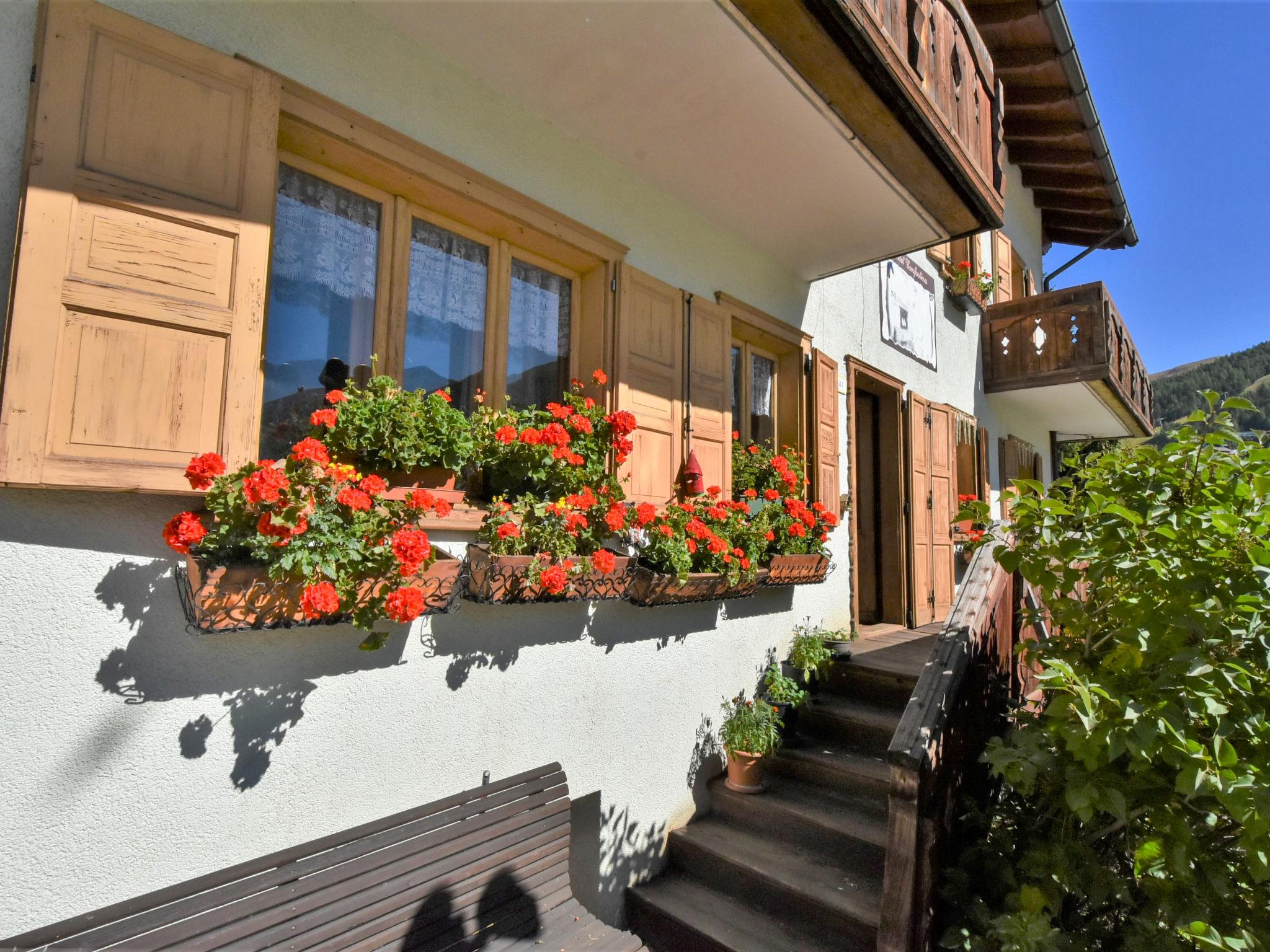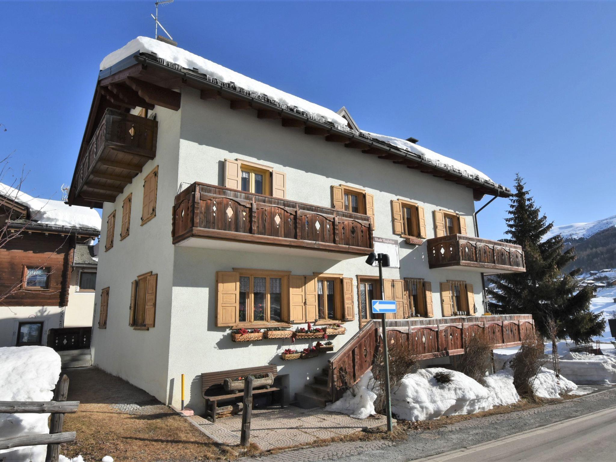 Small apartment house "Casa Confortina", 2 storeys. In the district of S. Rocco 1.5 km from the centre of Livigno, 37 km from the centre of Bormio, 200 m from the skiing area. For shared use: small garden (not fenced) plants. Garden furniture, barbecue. In the house: storage room for skis. Public parking 50 m on the road. Shop 50 m, supermarket 100 m, indoor swimming pool 3 km. Ski lift 700 m, slopes 200 m, ski bus stop 150 m, cross country ski track 100 m. Well-known ski regions can easily be reached: Mottolino. Please note: ski bus (free of charge). Loading and unloading of baggage is possible at the holiday house. The owner lives in the same residence.