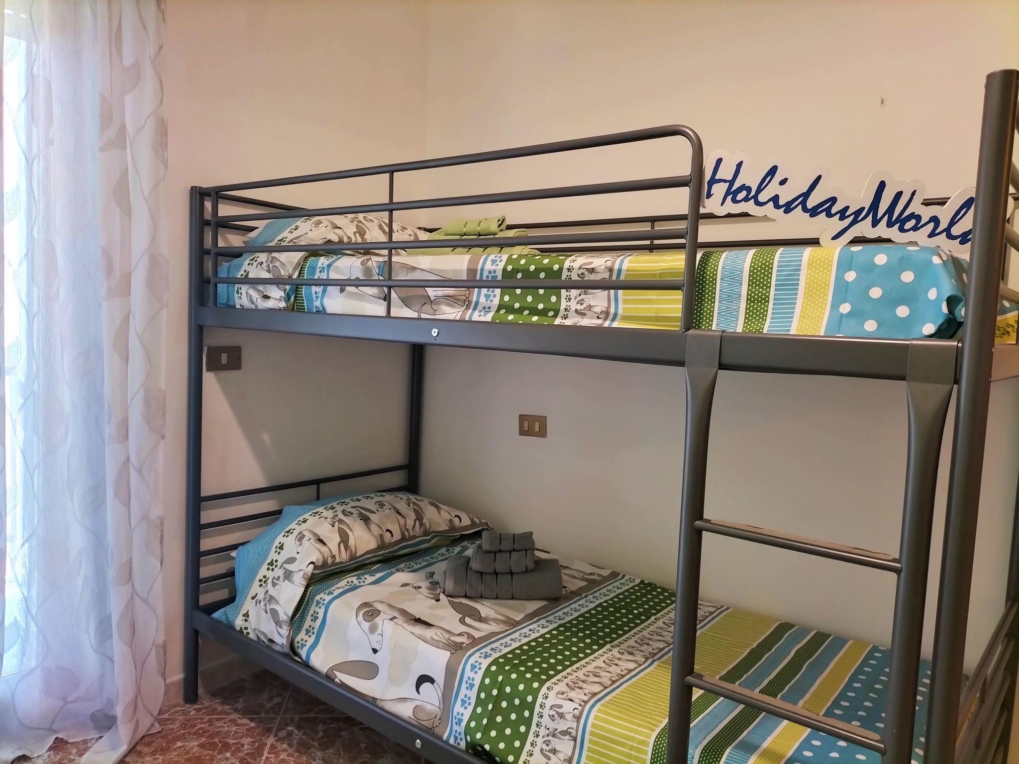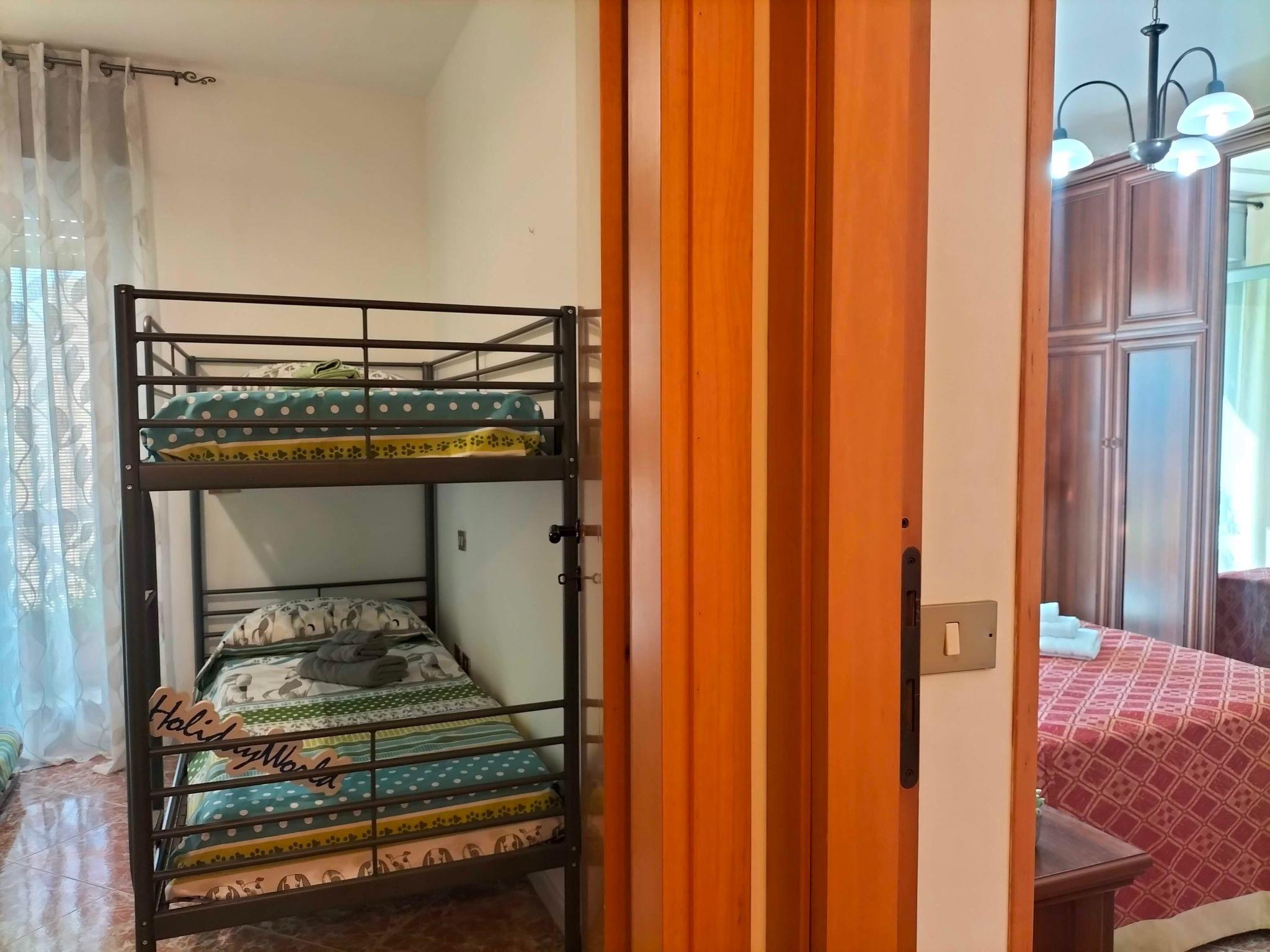 The spacious double bedroom and the comfortable small bedroom with bunk beds both have a communicating balcony that offers a splendid view of the Gran Sasso and the surrounding countryside and glimpses the small Sanctuary of the Madonna delle Grazie, a charming little church dating back to the 1400s that adds a further touch of history and beauty to the panorama.