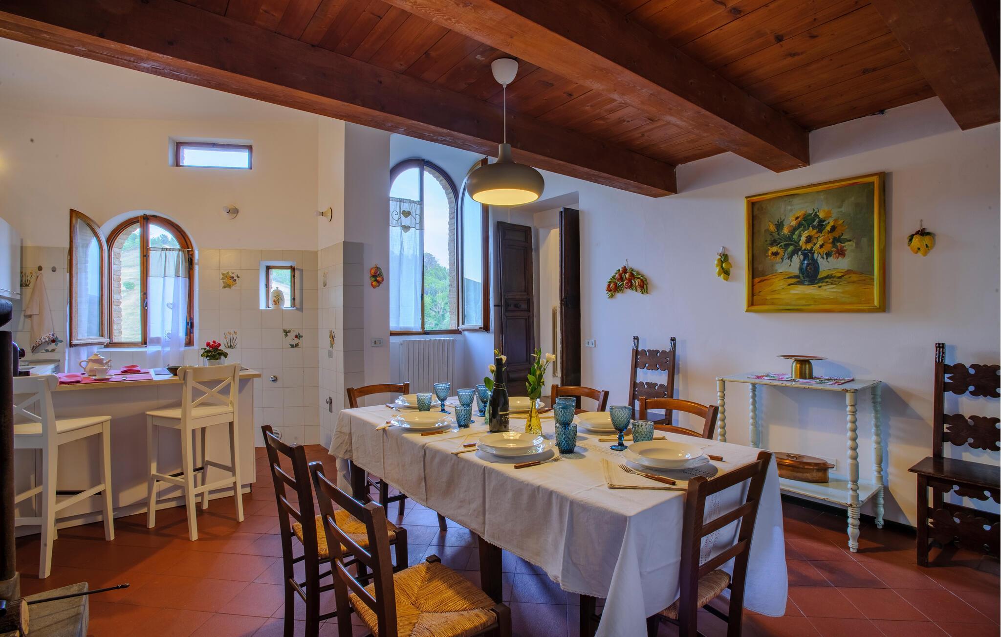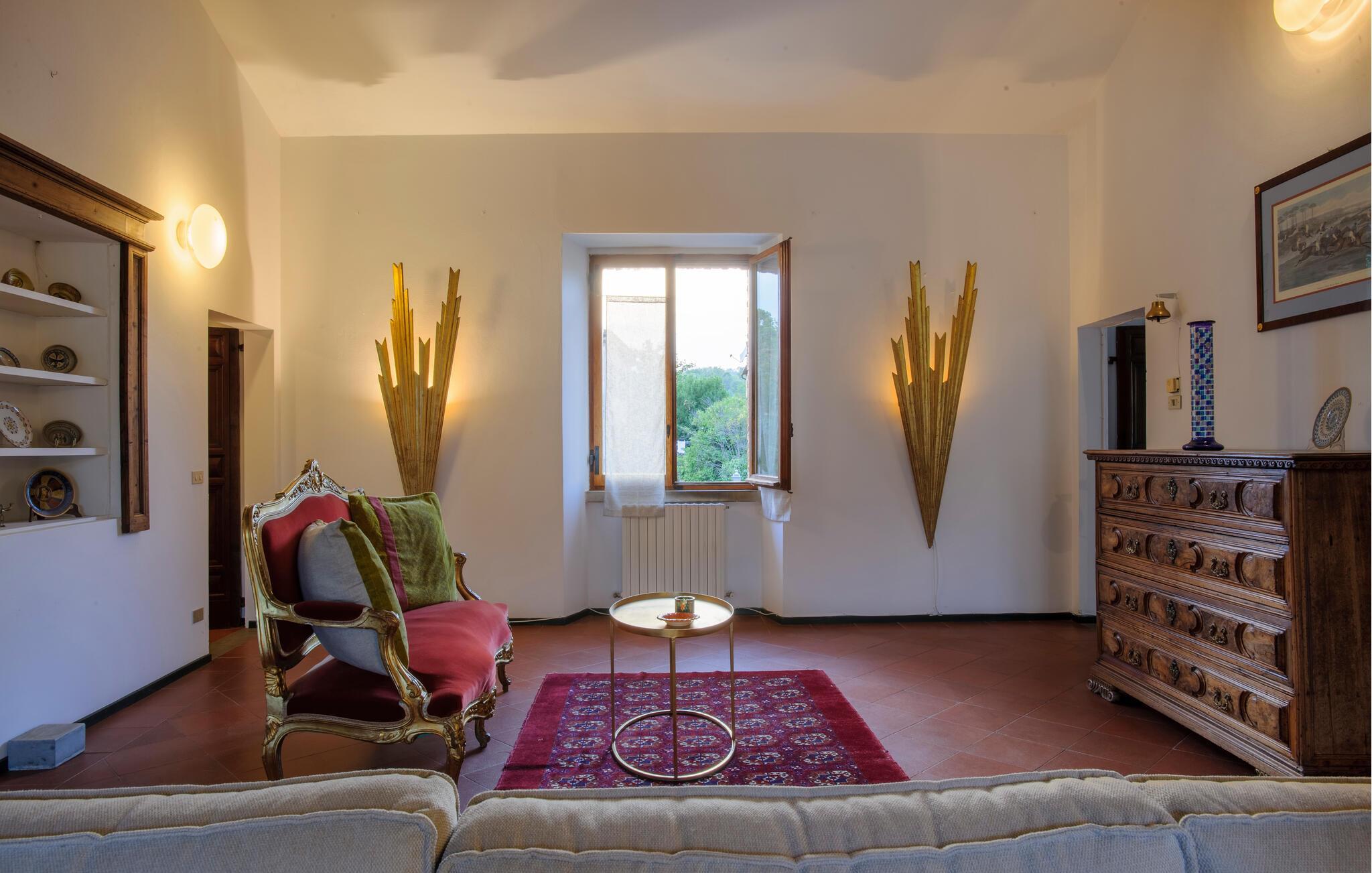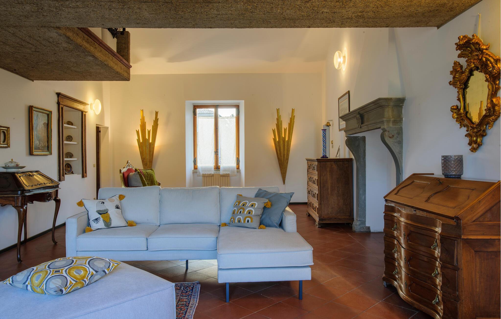 Huset i flere etager kombinerer komfortable bekvemmeligheder med historiske detaljer, hvilket skaber en unik atmosfære for jer. De stilfulde møbler og charmerende detaljer gør jeres ophold til en særlig oplevelse, som I sent vil glemme. Store vinduer åbner op for udsigten over det maleriske landskab, mens I kan nyde den friske luft fra altanerne og terrasserne. Om morgenen kan I drikke jeres kaffe i solen og lave planer for jeres næste udflugter.
