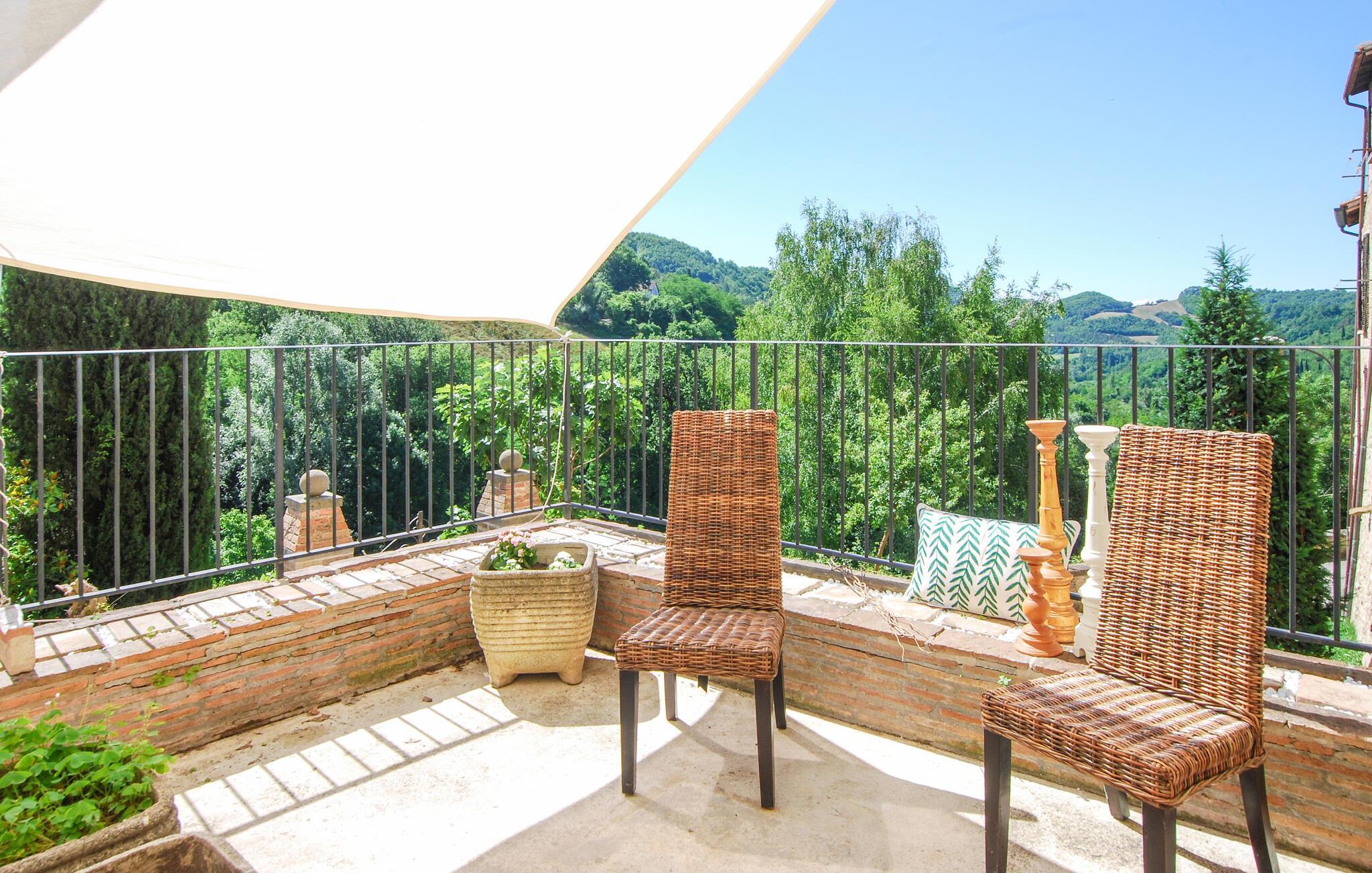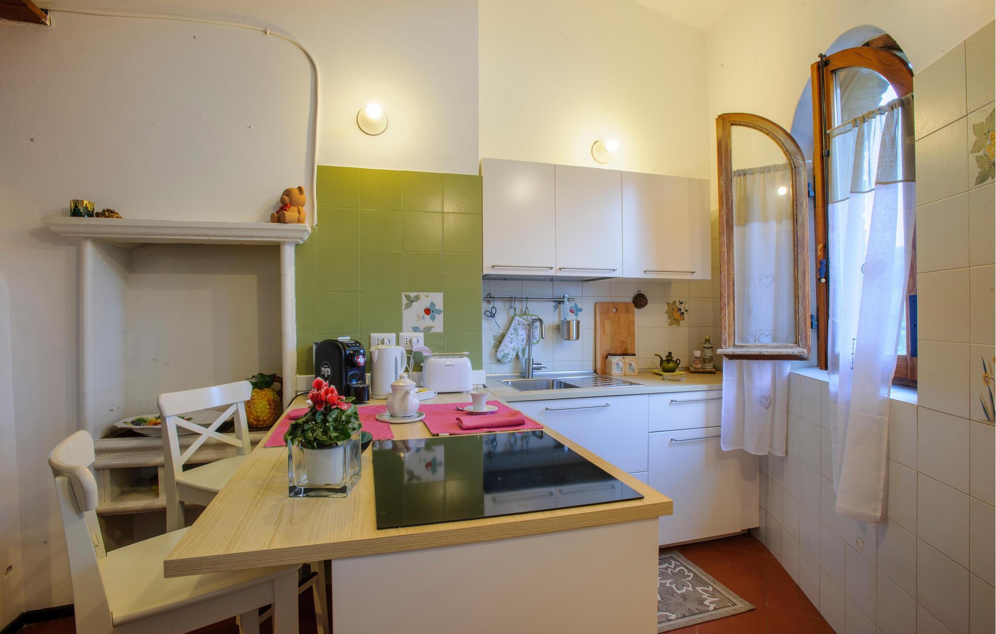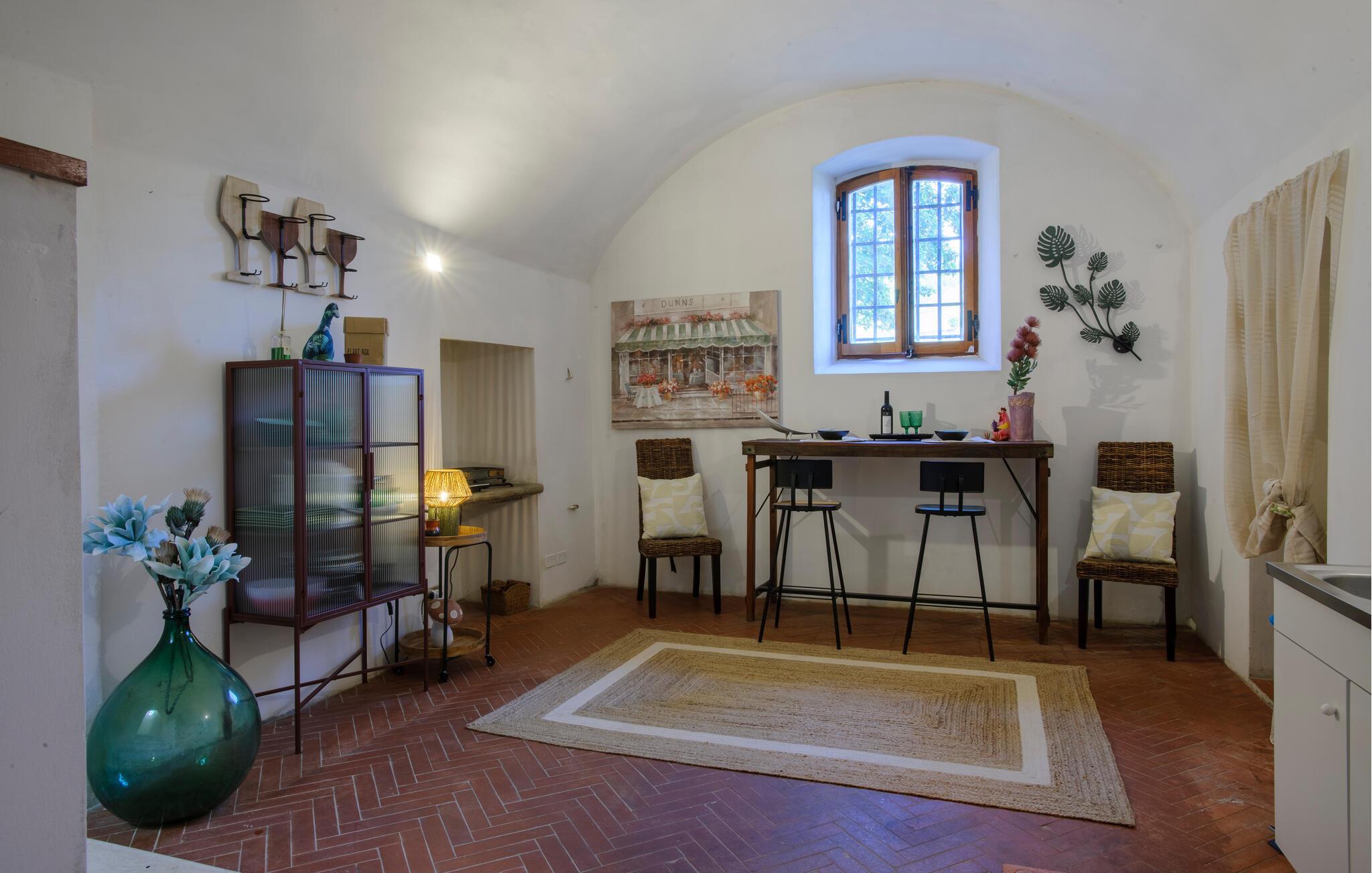 Huset i flere etager kombinerer komfortable bekvemmeligheder med historiske detaljer, hvilket skaber en unik atmosfære for jer. De stilfulde møbler og charmerende detaljer gør jeres ophold til en særlig oplevelse, som I sent vil glemme. Store vinduer åbner op for udsigten over det maleriske landskab, mens I kan nyde den friske luft fra altanerne og terrasserne. Om morgenen kan I drikke jeres kaffe i solen og lave planer for jeres næste udflugter.