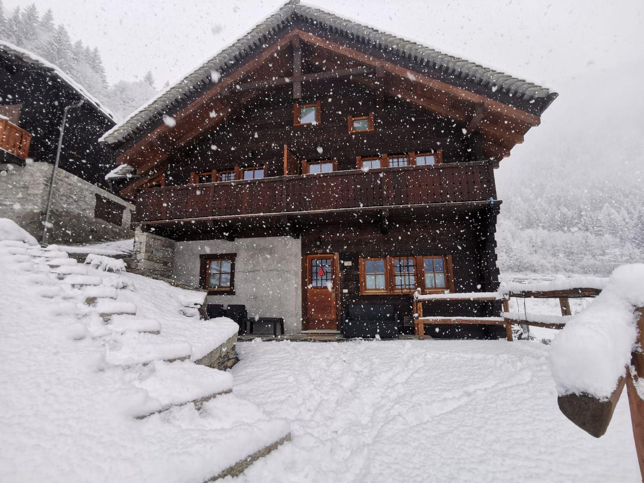 Typical Walser architecture: the base of the building is made of stone (it was usually used as a stable for animals and/or storage) while the upper part, built of wood, was used as a real home.
