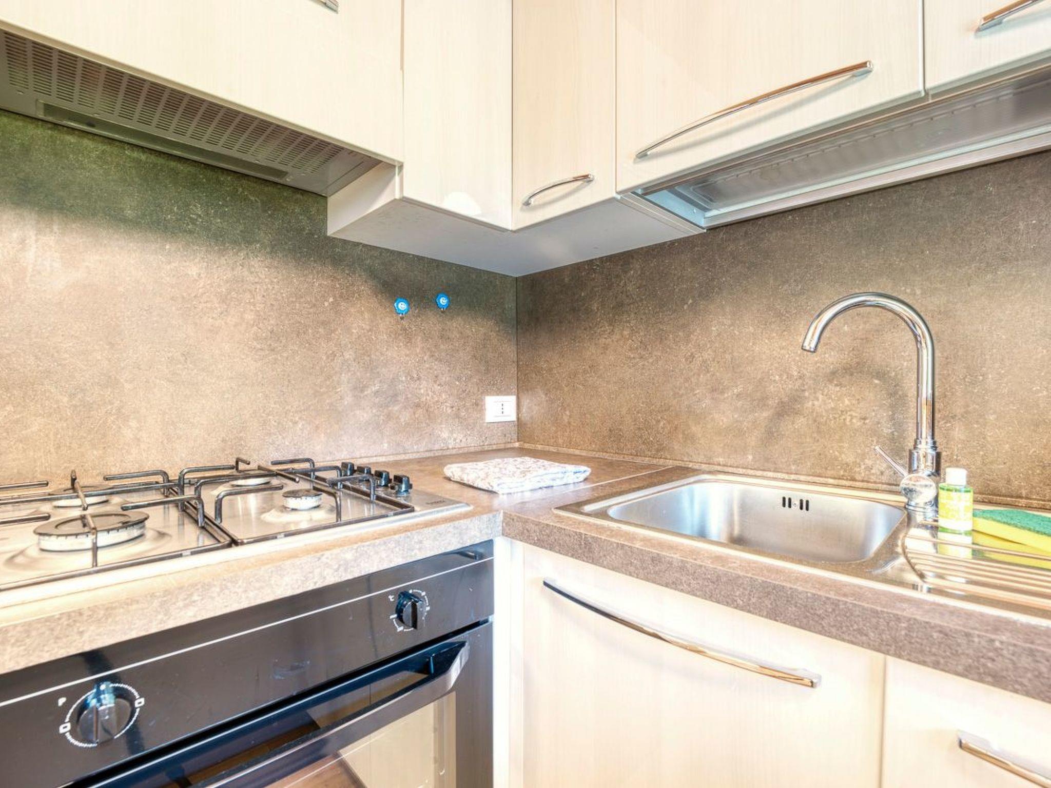 - Living room with solid wood table, modern equipped kitchen and double sofa bed;