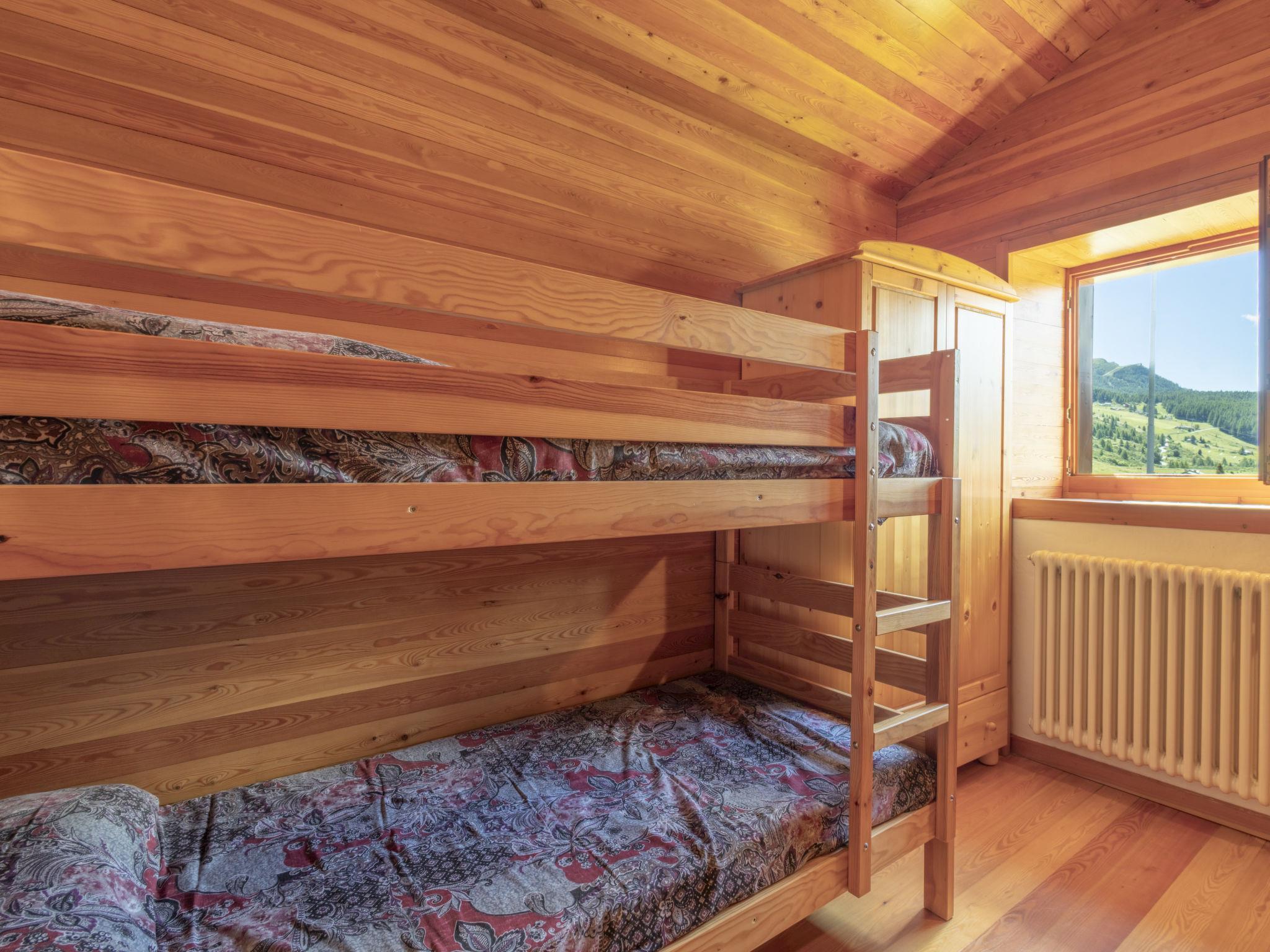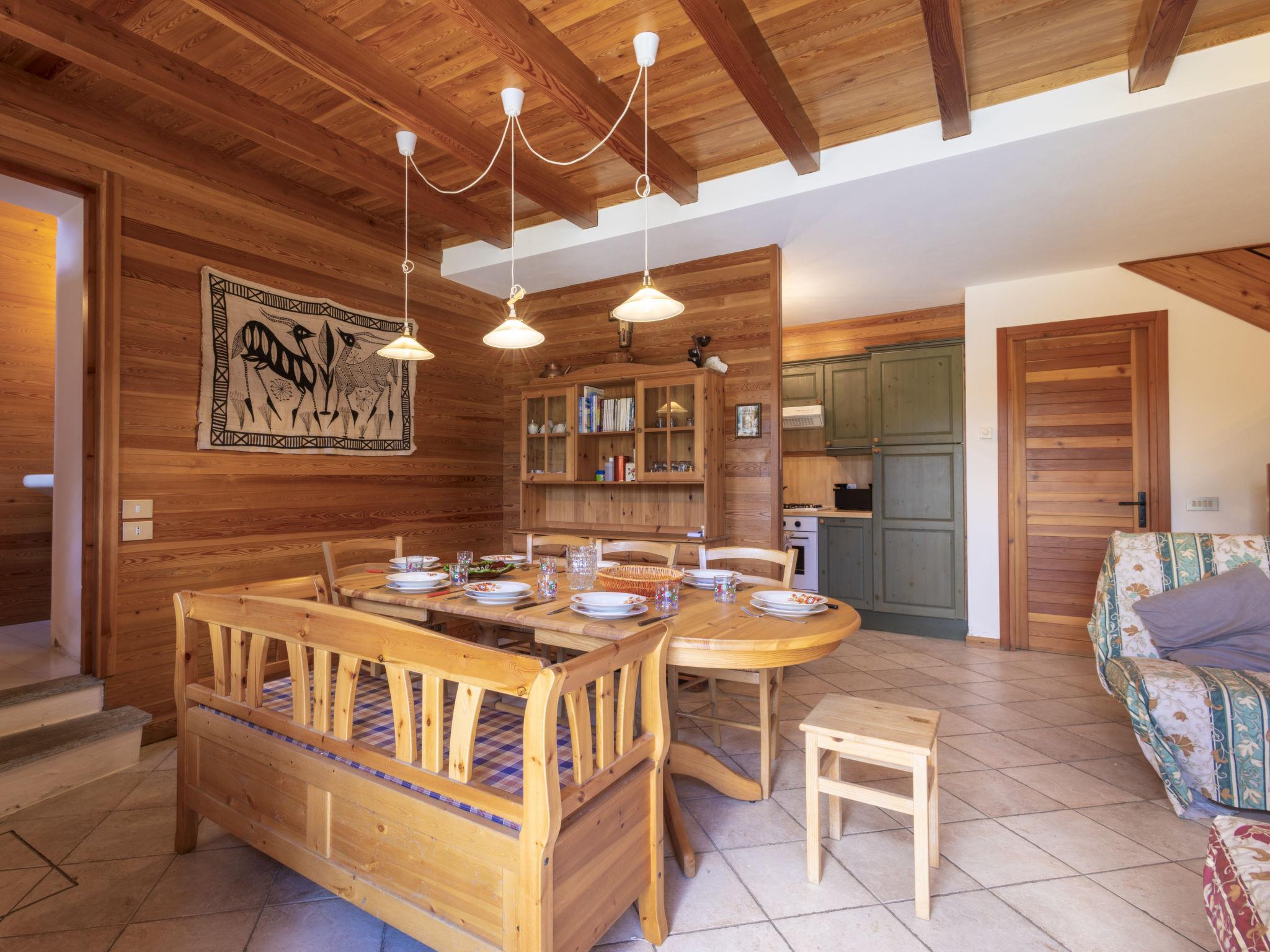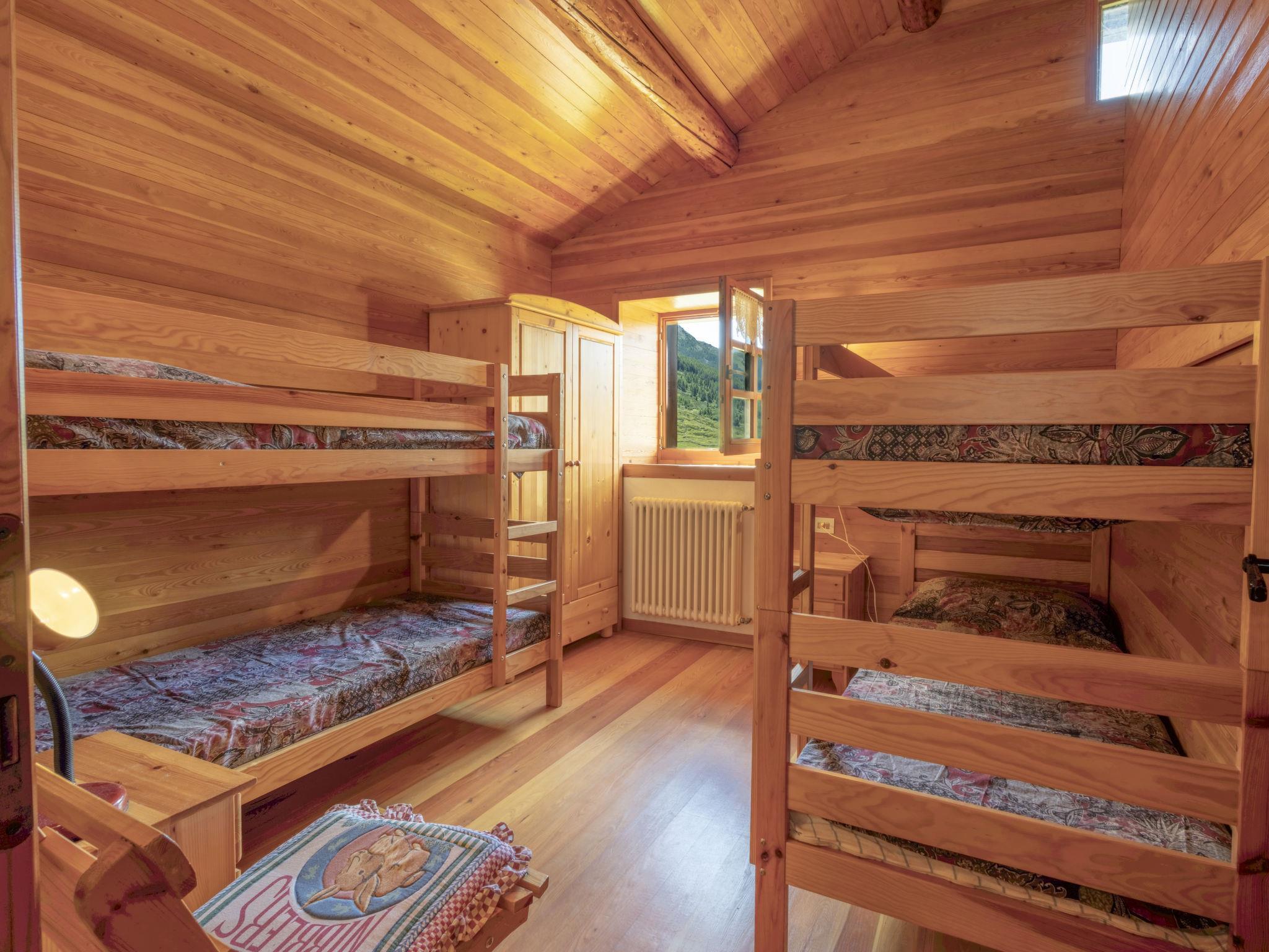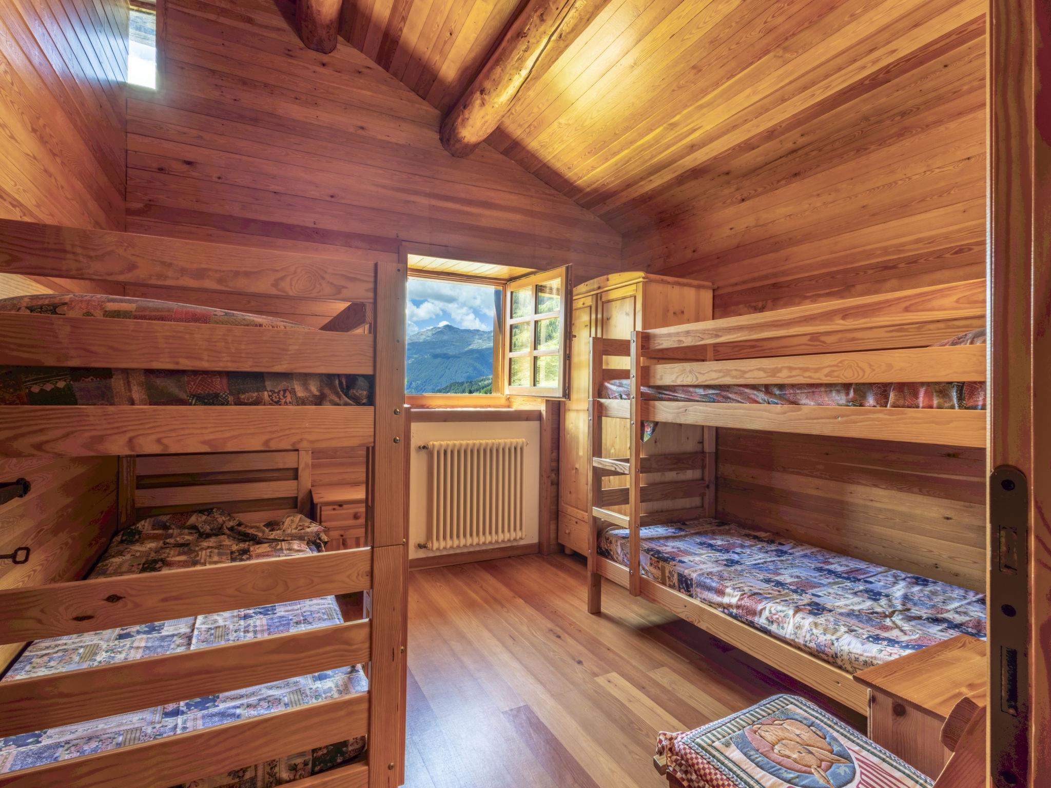 5-room chalet 150 m2, south facing position. Spacious, practical and wooden furniture furnishings: large living/dining room with Scandinavian wood stove (only for decoration), dining table and TV. Exit to the garden. Open kitchen (oven, 4 gas rings, toaster, kettle, microwave). Shower, sep. WC. Upper floor: 1 room with 1 x 2 bunk beds. 1 room with 1 x 1 bunk beds. 1 room with 2 beds. 1 room with 2 beds. Shower/bidet/WC, sep. WC. Heating. Parquet floors. Large garden. Terrace furniture, barbecue, deck chairs (4). Very beautiful panoramic view of the mountains, the valley and the garden. Facilities: washing machine, children's high chair, baby cot, hair dryer. Internet (WiFi, free). IT014035B4W4LNNAMT