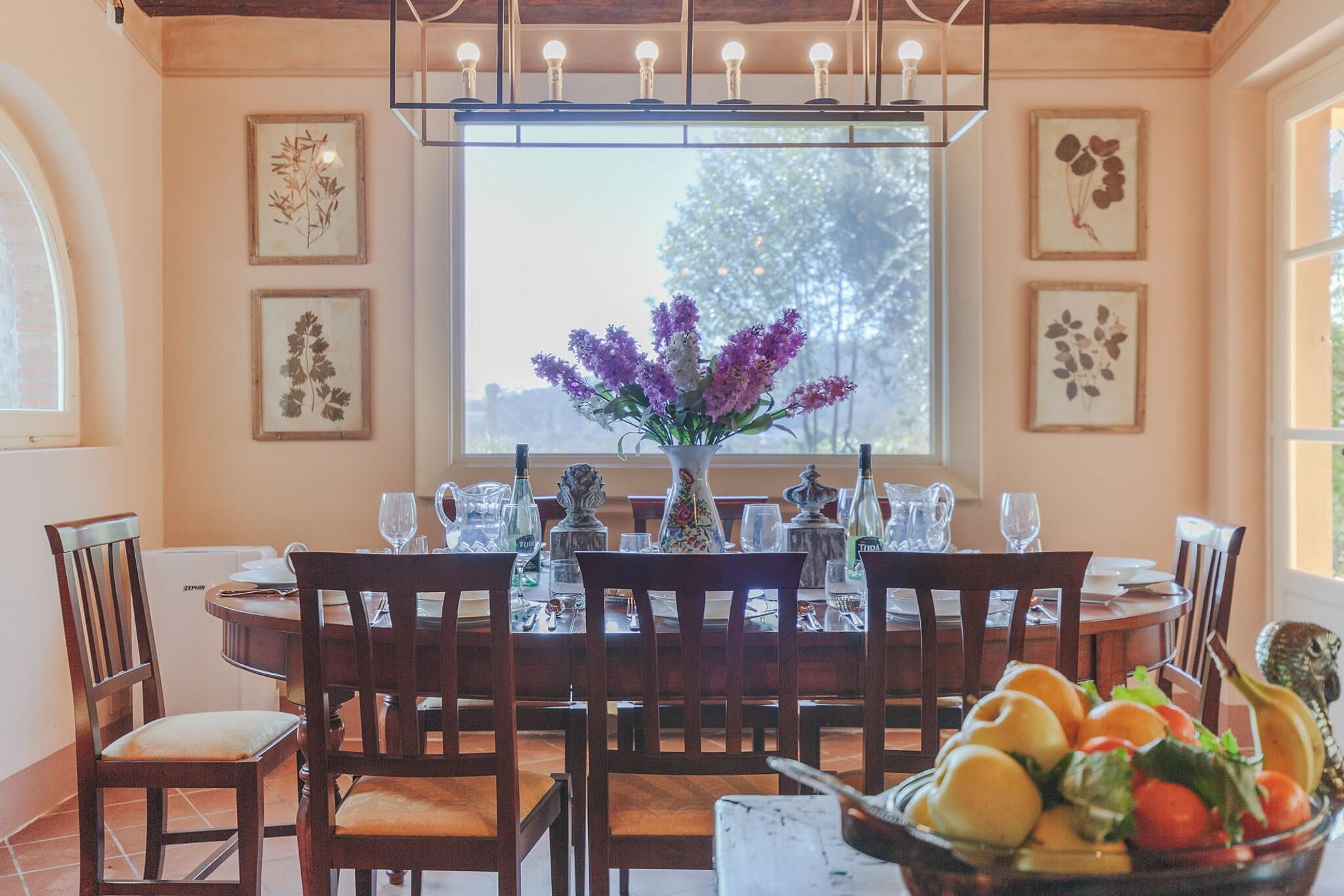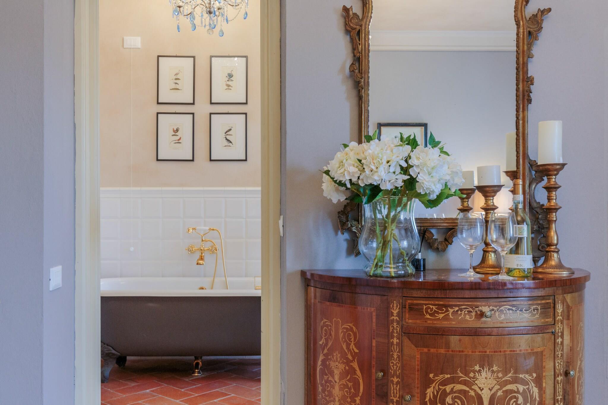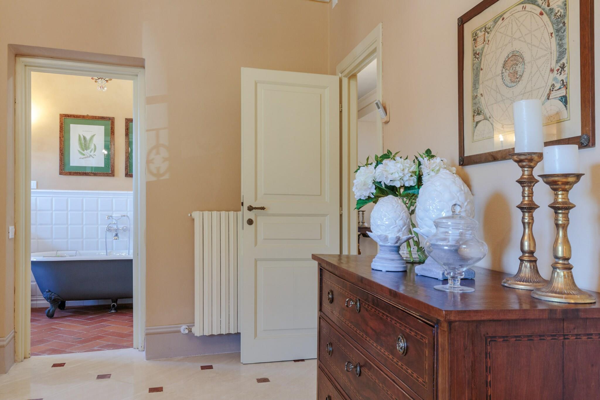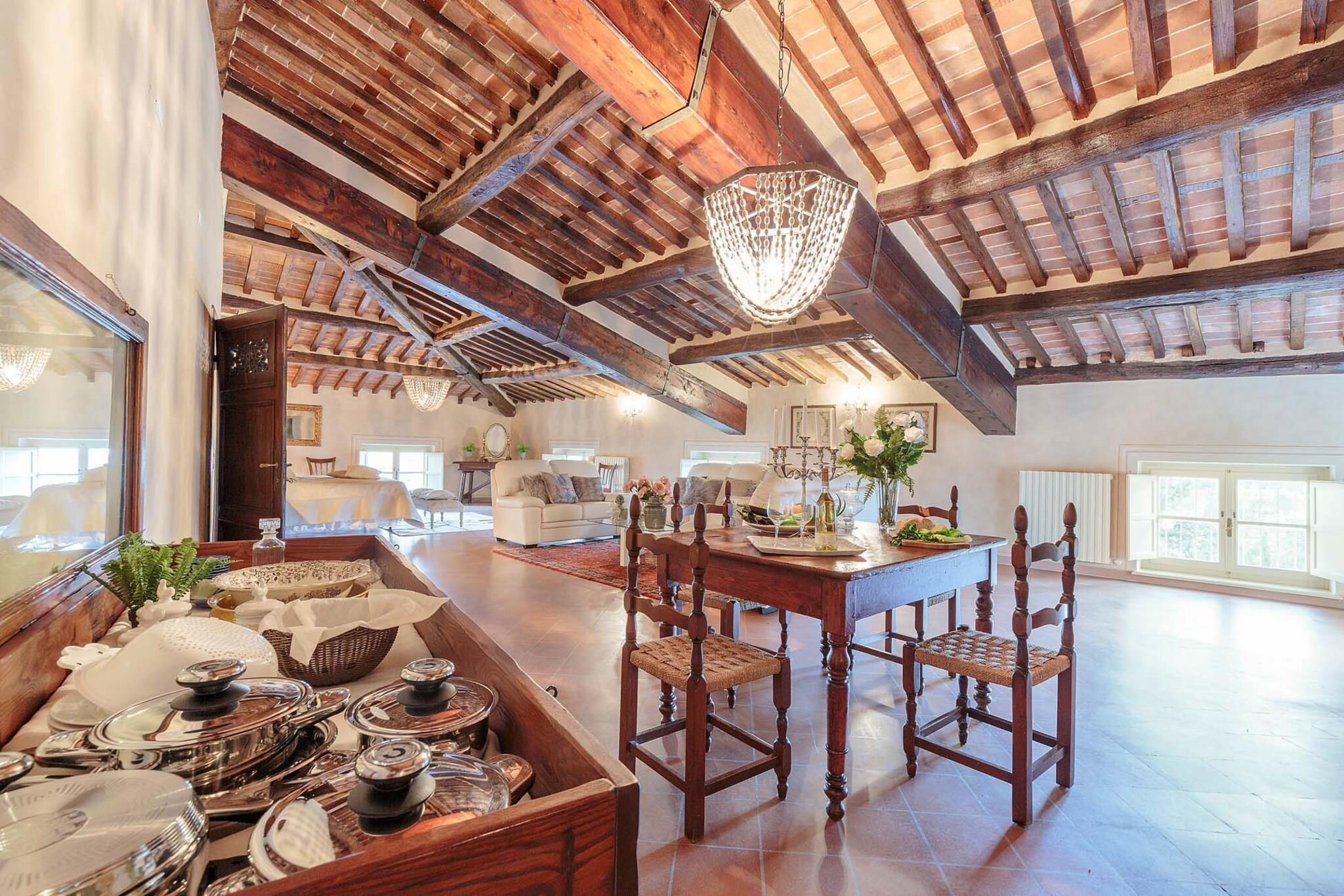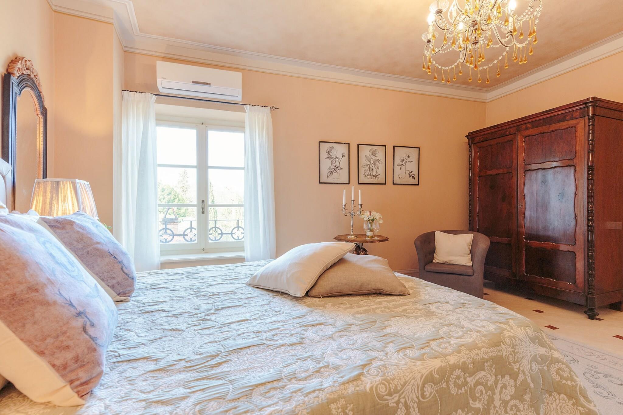 Velkommen til Villa Medea, en fortryllende toscansk ejendom, hvor charme fra det 16. århundrede møder raffineret moderne livsstil. Beliggende lige uden for Lucca blandt gamle cypresser, olivenlunde og terrasserede haver, byder denne storslåede villa op til 20 gæster velkommen i en atmosfære af elegance, varme og rummelighed. Med 10 smukt designede soveværelser og 10 stilfulde badeværelser fordelt på tre etager og et fuldt restaureret høloft, er Villa Medea skabt til uforglemmelige sammenkomster - uanset om det er en familiesammenkomst, et destinationbryllup eller en særlig fest under den toscanske sol. Nyd solbeskinnede dage ved den 14x6 meter store private pool, slap af i elegante lounges, eller nyd måltider under åben himmel under havepavillonen. Indenfor venter eksklusive faciliteter: et kokkekøkken, fitnesscenter, hurtig Wi-Fi, aircondition, satellit-tv og luksuriøse møbler overalt. Villa Medea tilbyder både ro og adgang: kun 6 km fra Lucca og en kort køretur til ikoniske steder som Pisa, Firenze, Cinque Terre og strandene i Viareggio. Uanset om du nipper til vin ved solnedgang, nyder en privat middag med udsigt over bakkerne eller tager en morgentur under århundreder gamle egetræer, føles hvert øjeblik her tidløst. Bemærk: Turistskat skal betales på ejendommen.