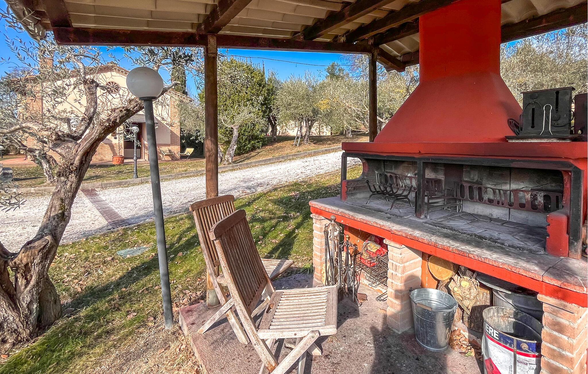 Denne flotte villa ligger smukt placeret i Italiens grønne hjerte, blot et par kilometer fra Trasimeno-søen. Boligen emmer af varme og en rustik atmosfære, hvor I ikke kan undgå at slappe og hygge jer med familien. I den åbne stue kan I nyde dagens måltider, og udendørs står den på rendyrket nydelse. Børnene kan boltre sig på deres private legeplads, mens I lægger jer godt til rette i liggestolene med udsigt over Umbriens frodige landskab. Når børnene har leget sig trætte, kan de køle sig ned og plaske rundt i den forfriskende pool.