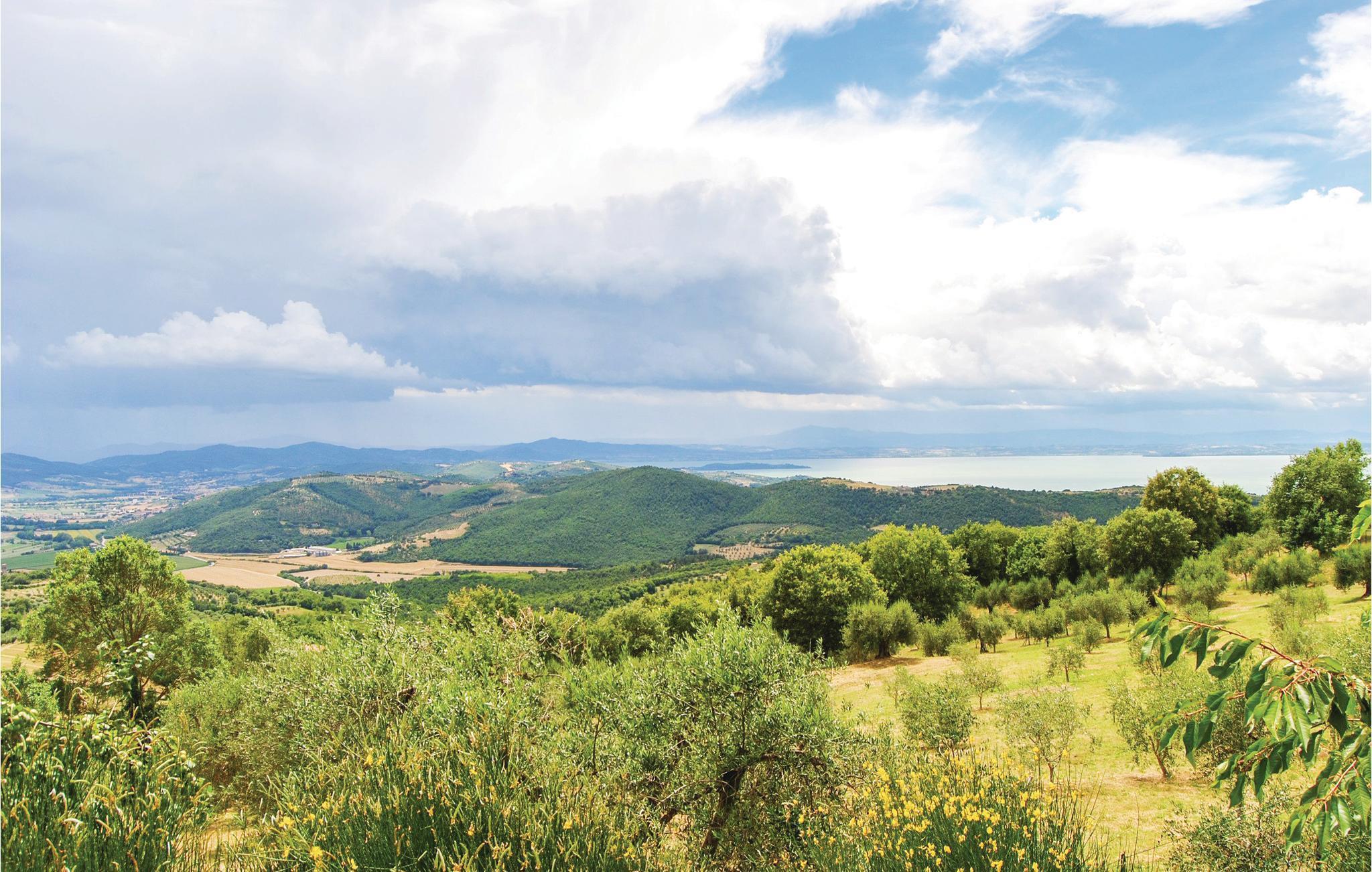 Dette feriehus med privat pool ligger i skønne bakkede omgivelser, ca. 3 km fra den lille by Magione. Huset er en del af en landbrugsejendom, der producerer vin og olivenolie. Indretningen er enkel, men praktisk, og i stuen er der en åben pejs. Den overdækkede terrasse og den private have med pool og terrasse til solbad byder på afslappende timer i det fri, og dertil deler I en stor naturgrund med tennisbane, grill og legeområde til børn med lejlighederne IUT167 og IUT190. Denne feriebolig er ideel til børnefamilier der holder af natur og aktivitet: Fra huset kan I vandre, cykle i bjergene eller tage til vandet. Afstande: Magione 3 km, Castel Rigone 7 km, Trasimenosøen 8 km. Tilkørsel over en grusvej.