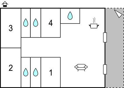 Soveværelse (nr. 1) - 1 Soveplads. (Enkeltseng(e)). 2 Sovepladser. (Dobbeltseng(e)).