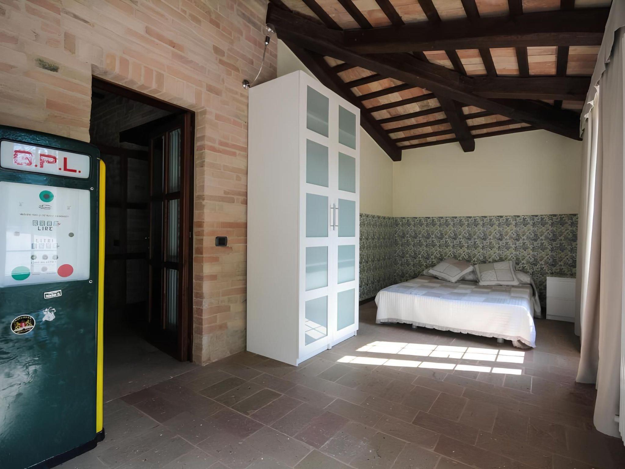 The exterior of the residence is equally charming. The terrace offers not only a magnificent place to eat outdoors, thanks to the table and chairs provided, but also the opportunity to relax on comfortable sun loungers, ideal for sunbathing or simply soaking up the tranquillity of the landscape, near the swimming pool that overlooks the green valley down to the sea of Porto San Giorgio. The property also features an ancient well, a wood-burning oven and stone and brick walls, contributing to an atmosphere of peace and tranquillity.
