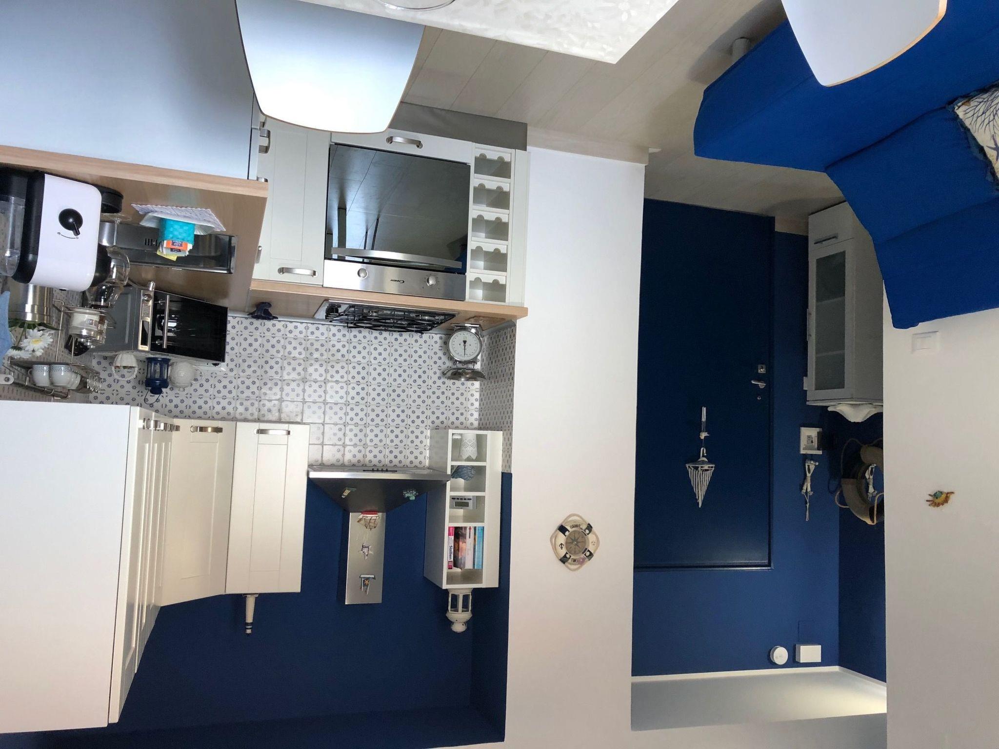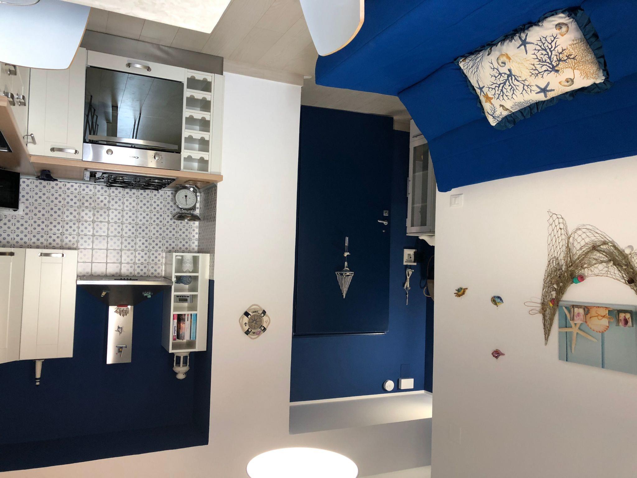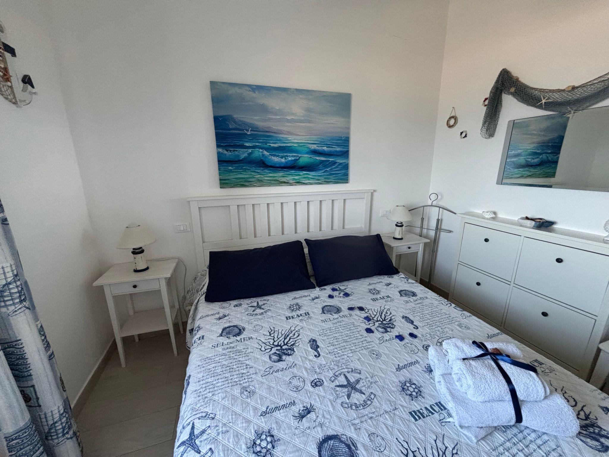 The interior is designed to offer maximum comfort and a cosy atmosphere: a double bedroom with all amenities, including a large wardrobe and shoe rack, and a living room with a sofa bed for two. The fully equipped kitchen offers a spectacular view of the sea. The functional and modern bathroom is equipped with shower, WC, bidet, washbasin and washing machine to ensure a comfortable stay. The flat is complete with air conditioning, satellite TV, a fan and all necessary household appliances.