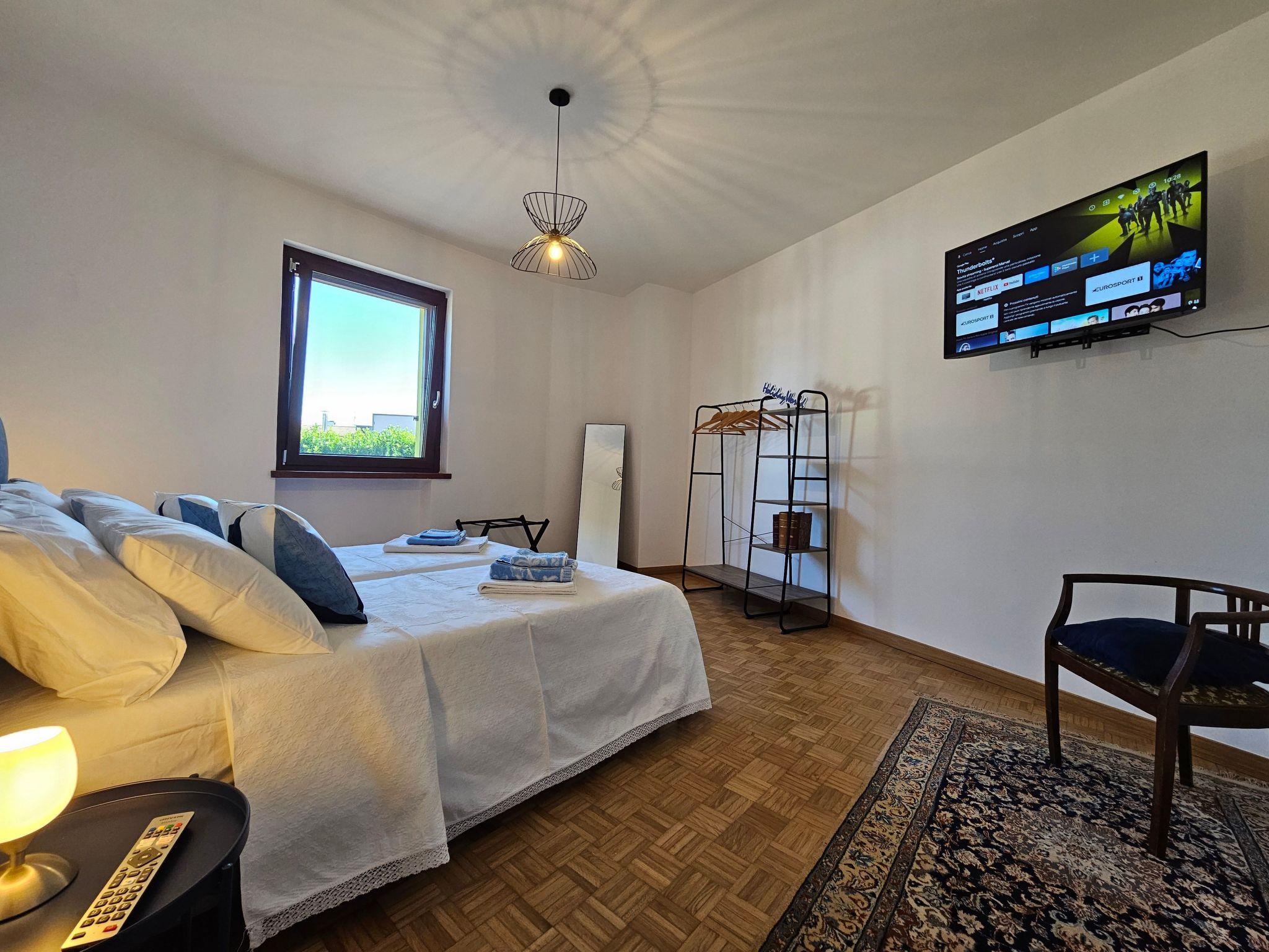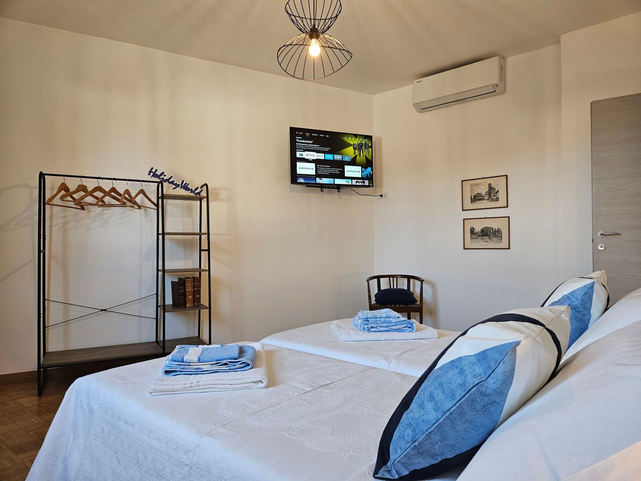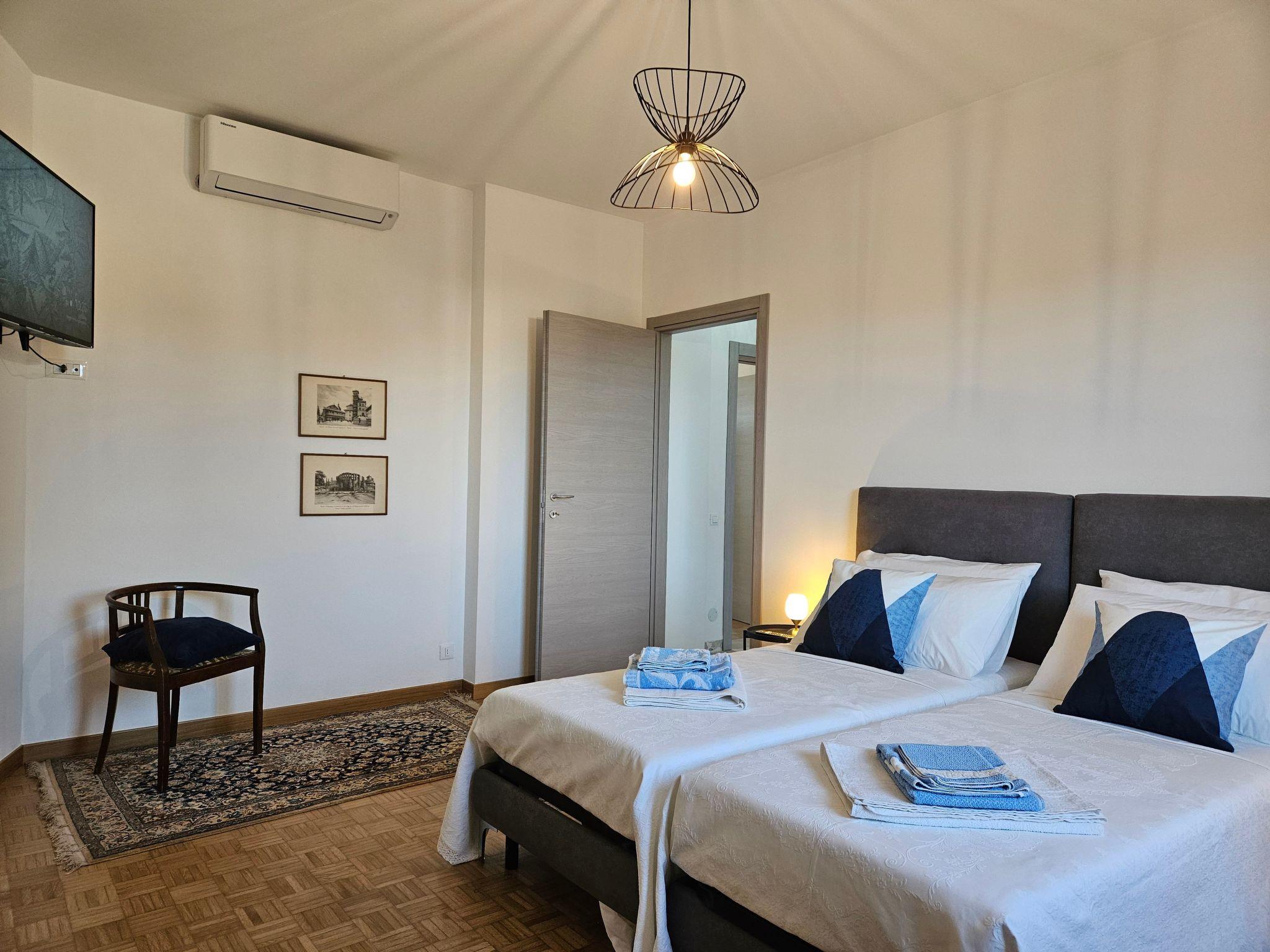 Welcome to this spacious and functional flat, which has 2 bright double rooms, a large living room with a double sofa bed, a kitchen complete with kitchenware and appliances, also ideal for long stays, a bathroom with shower, and a private balcony for relaxing moments. Free reserved parking is also available on the premises.
