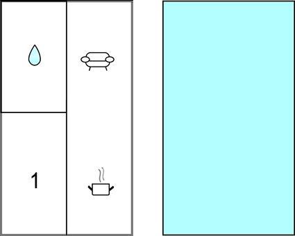 Opholdsstue/køkken - 2 Sovepladser. (Sofa, madras eller lignende).
