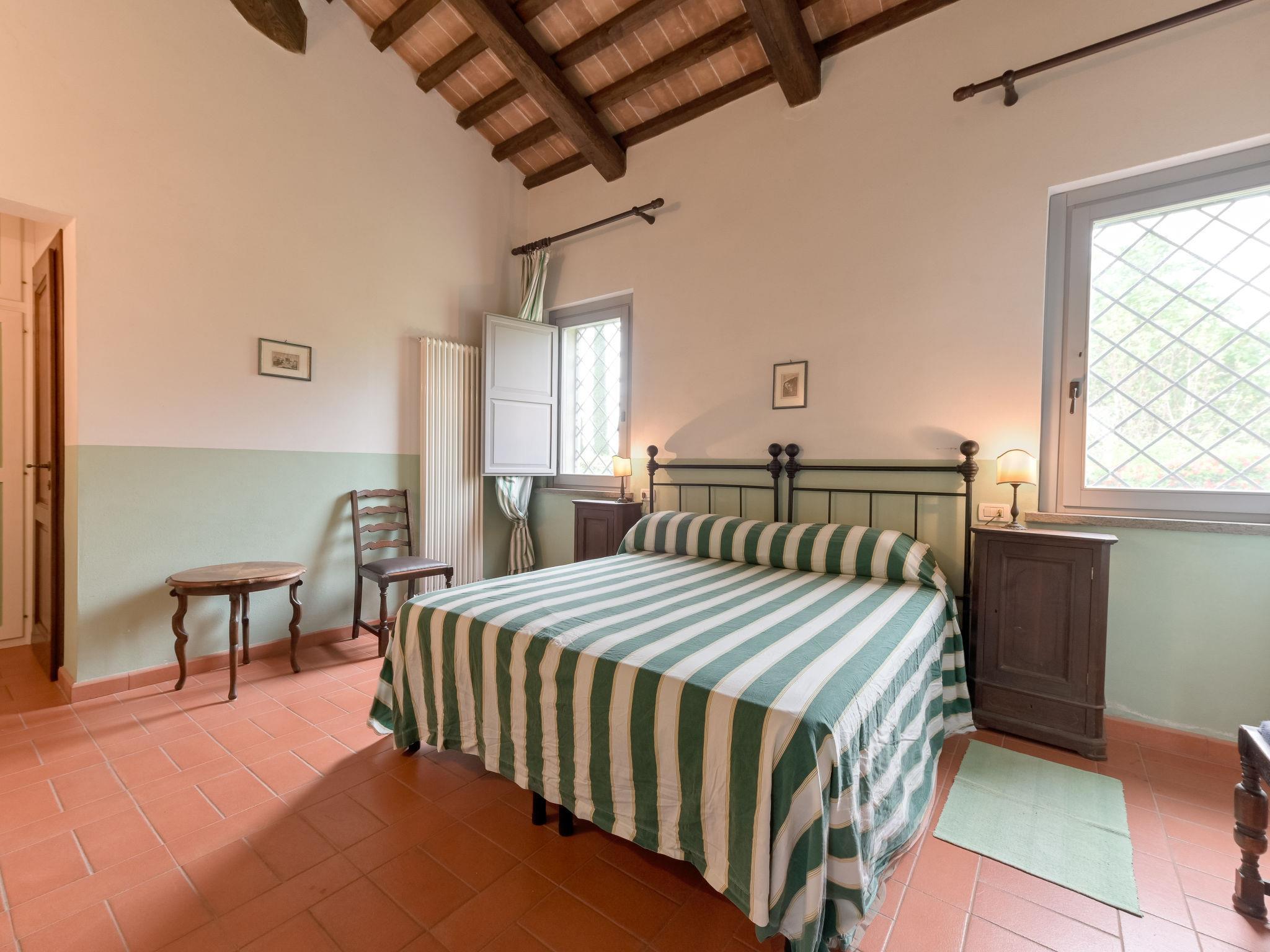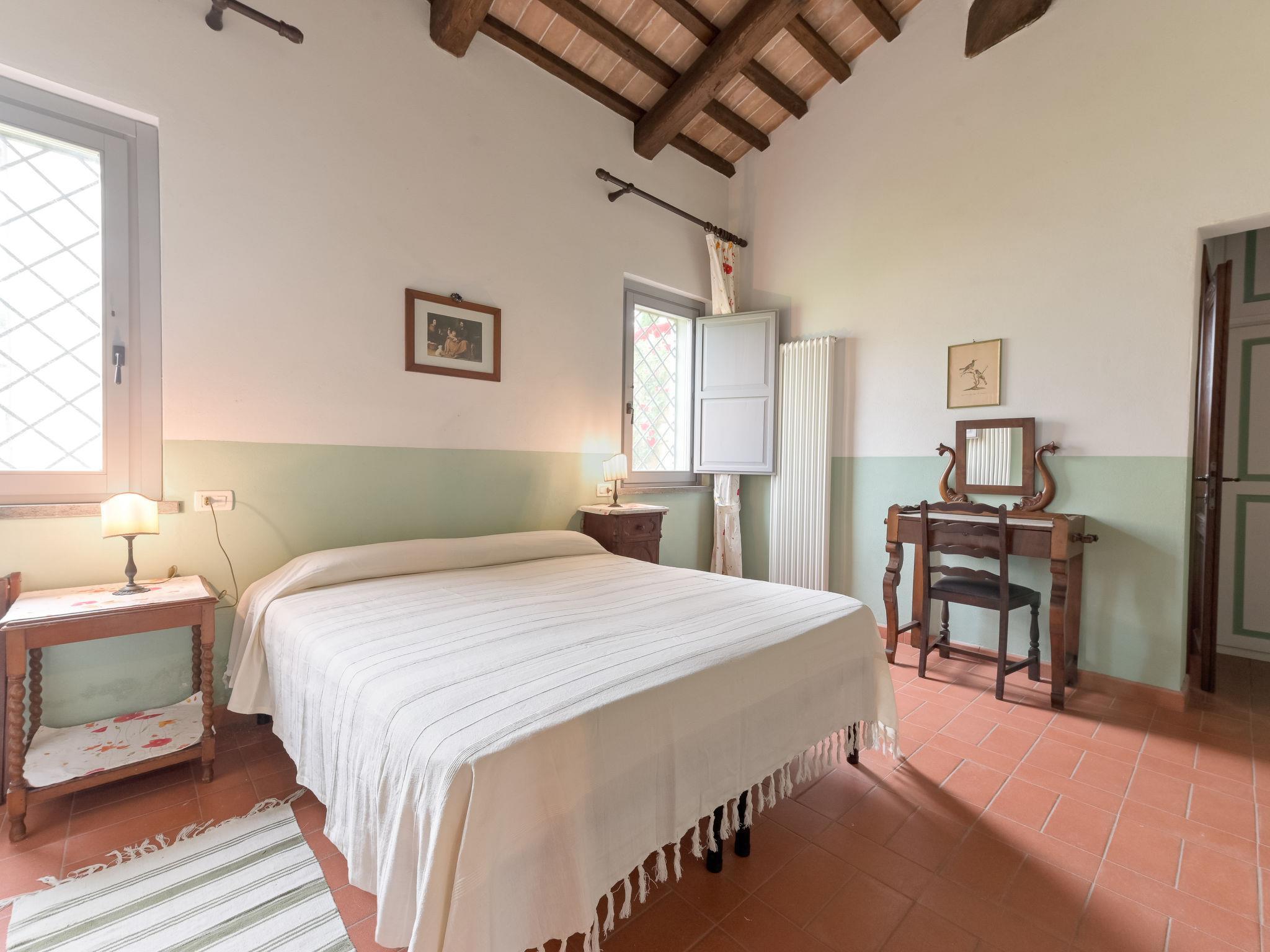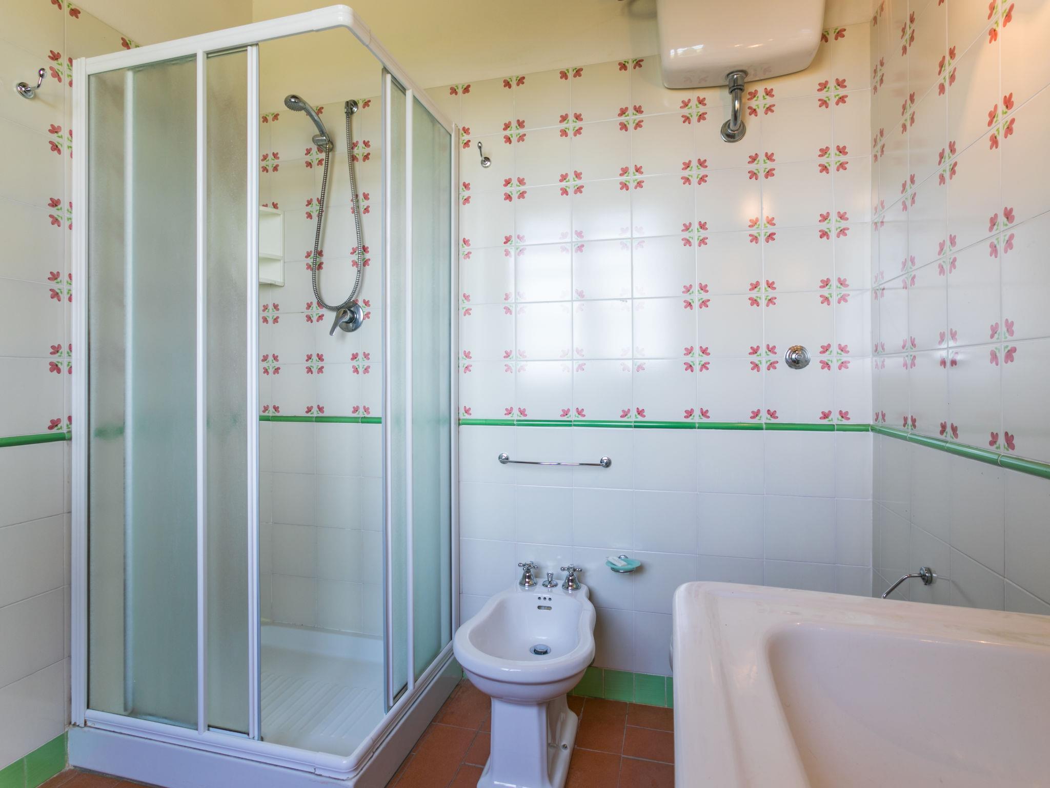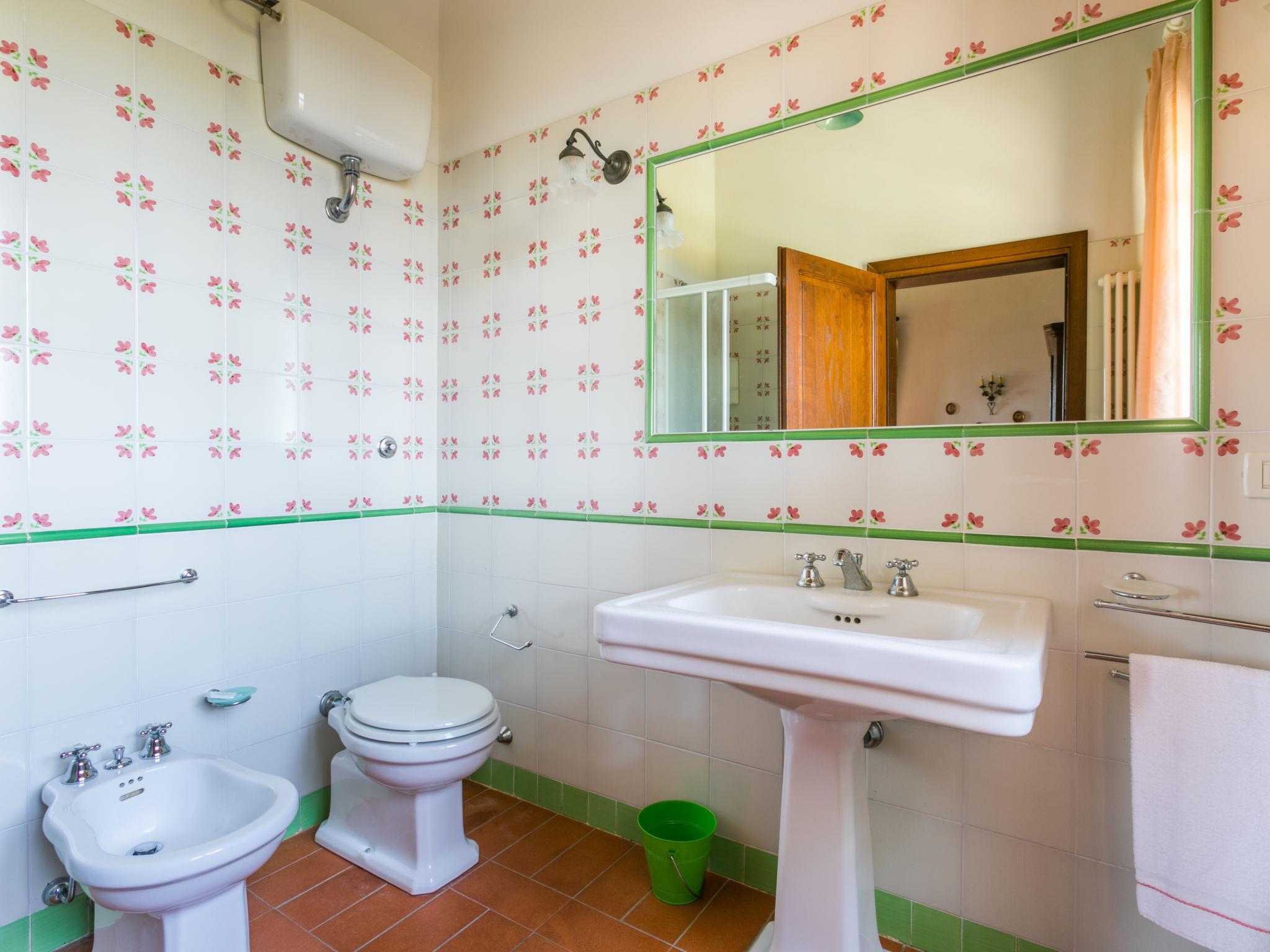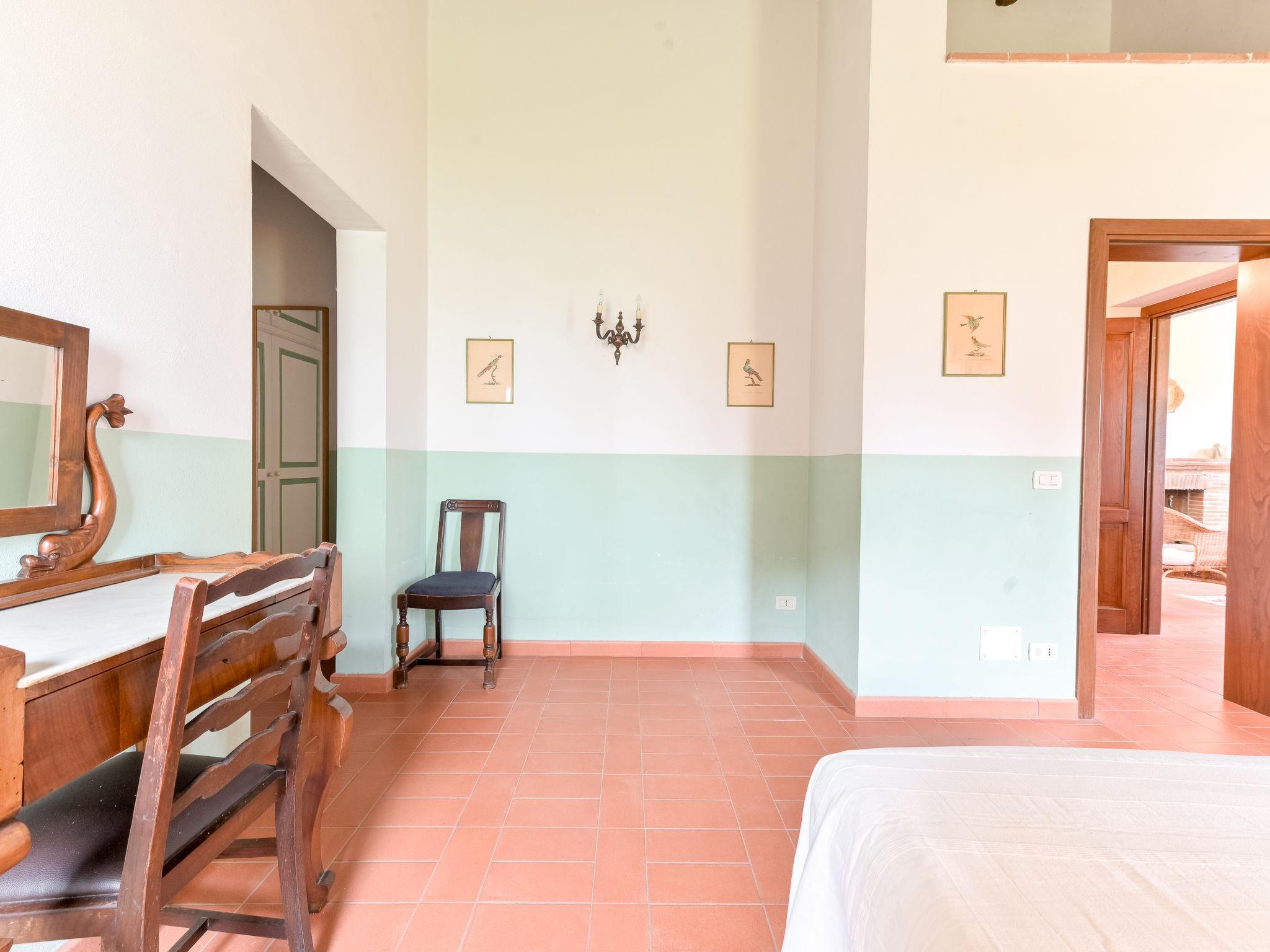 6-room villa 365 m2 on 2 levels. Antique and luxurious furnishings: large living room with open-hearth fireplace. Exit to the patio. Small living room with TV. 1 double bedroom 22 m2. 1 room 20 m2 with 2 beds. 2 rooms, each room with 1 double bed (160 cm), shower/bidet/WC. Kitchen 28 m2 (4 hot plates, oven, dishwasher, toaster, electric coffee machine) with dining table. Exit to the garden, pergola. Shower/bidet/WC, sep. WC. Upper floor: 1 double bedroom 28 m2 with open-hearth fireplace and shower/bidet/WC. 1 room 28 m2 with 1 bed, 1 double bed and shower/bidet/WC. Exit to the terrace. Patio, garden. Barbecue. Marvellous view of the countryside. Facilities: washing machine, iron, mosquito net, hair dryer. Parking. Please note: non-smokers only. Maximum 2 pets/ dogs allowed. Private entrance. No internal connecting door between the separated properties. All windows and patio doors have mosquito nets. IT053014B5TUJ7UD5C