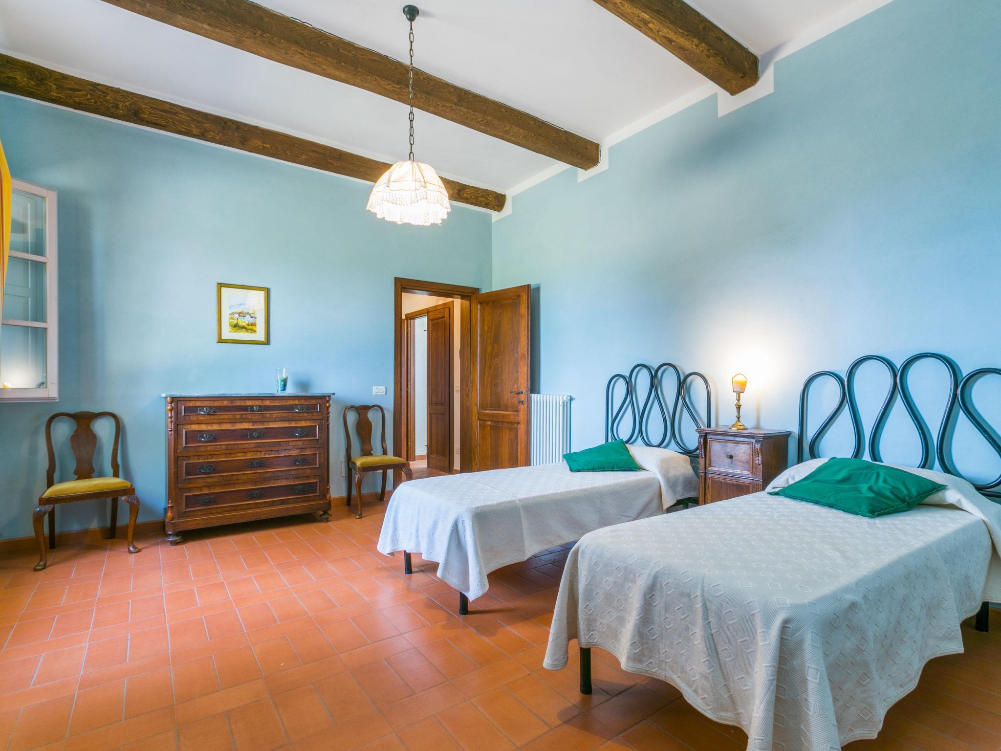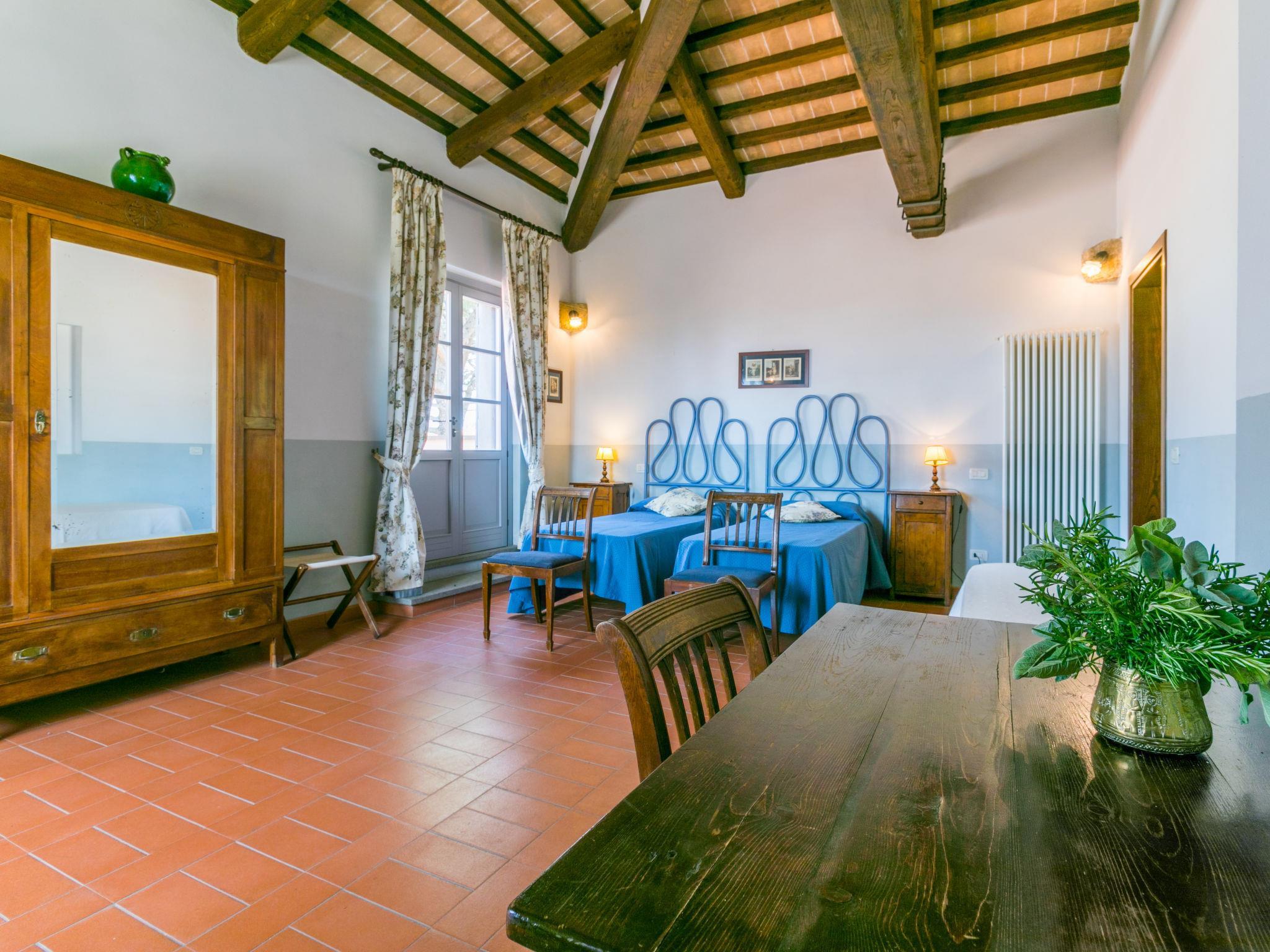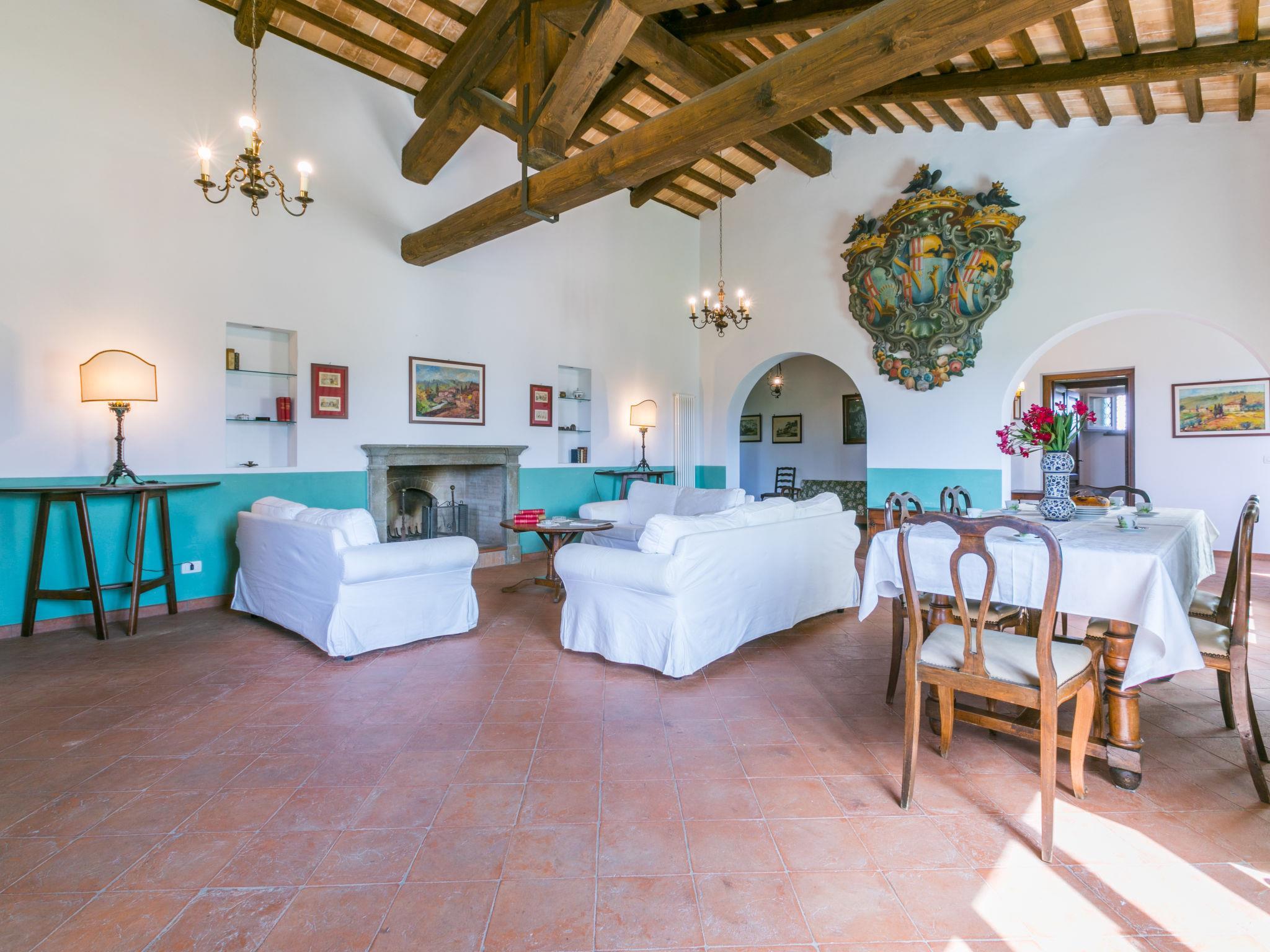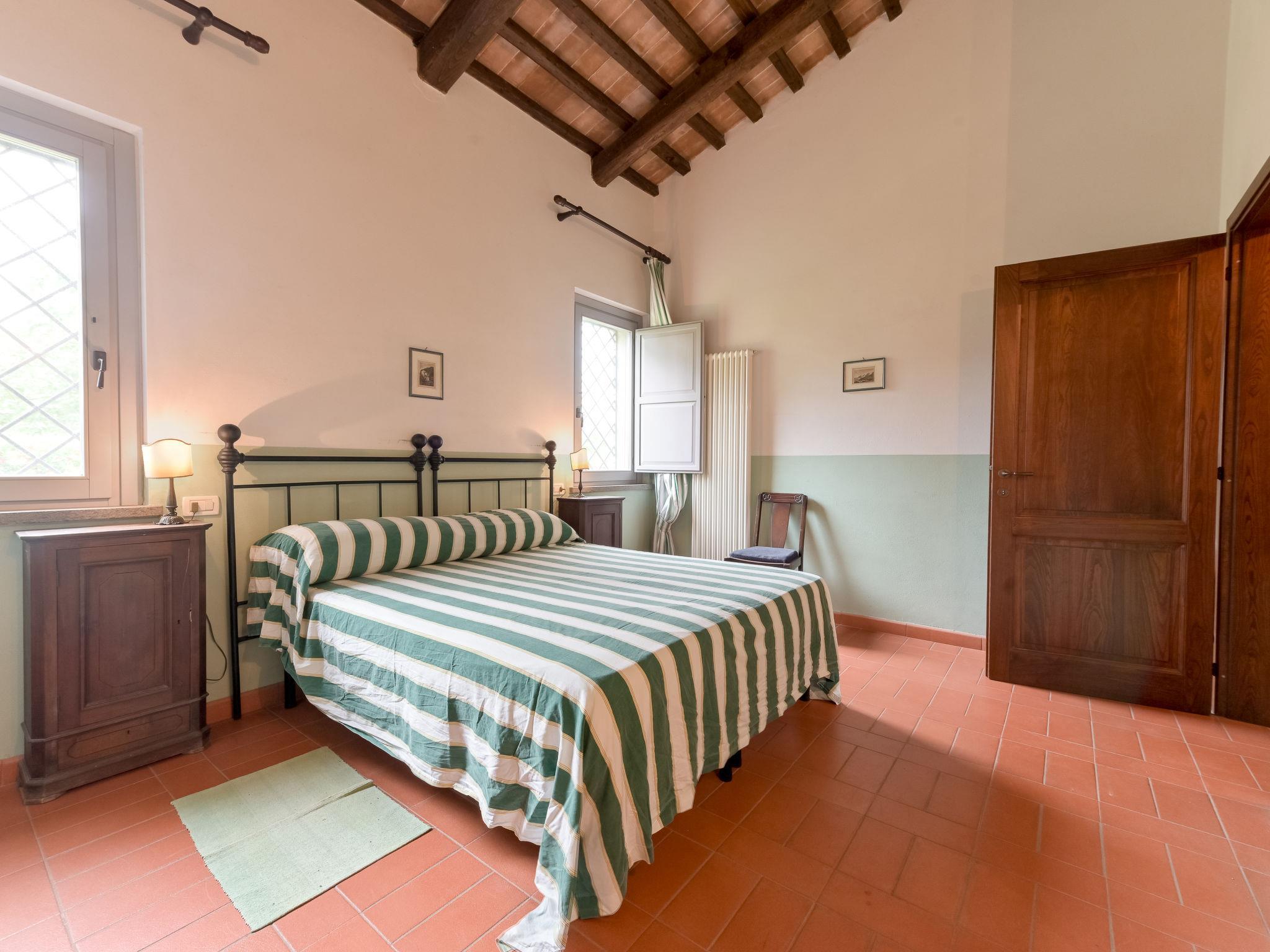 6-room villa 365 m2 on 2 levels. Antique and luxurious furnishings: large living room with open-hearth fireplace. Exit to the patio. Small living room with TV. 1 double bedroom 22 m2. 1 room 20 m2 with 2 beds. 2 rooms, each room with 1 double bed (160 cm), shower/bidet/WC. Kitchen 28 m2 (4 hot plates, oven, dishwasher, toaster, electric coffee machine) with dining table. Exit to the garden, pergola. Shower/bidet/WC, sep. WC. Upper floor: 1 double bedroom 28 m2 with open-hearth fireplace and shower/bidet/WC. 1 room 28 m2 with 1 bed, 1 double bed and shower/bidet/WC. Exit to the terrace. Patio, garden. Barbecue. Marvellous view of the countryside. Facilities: washing machine, iron, mosquito net, hair dryer. Parking. Please note: non-smokers only. Maximum 2 pets/ dogs allowed. Private entrance. No internal connecting door between the separated properties. All windows and patio doors have mosquito nets. IT053014B5TUJ7UD5C