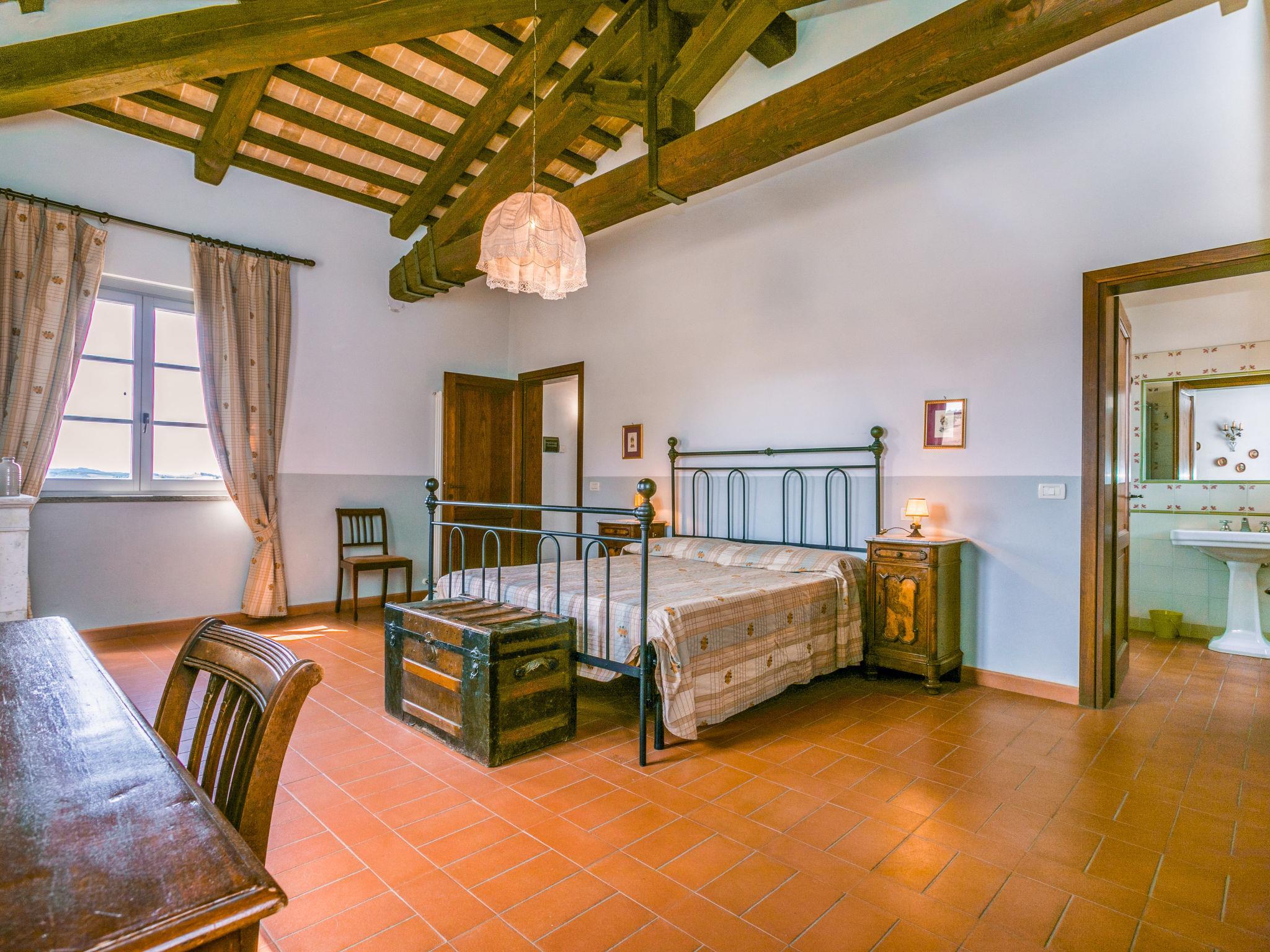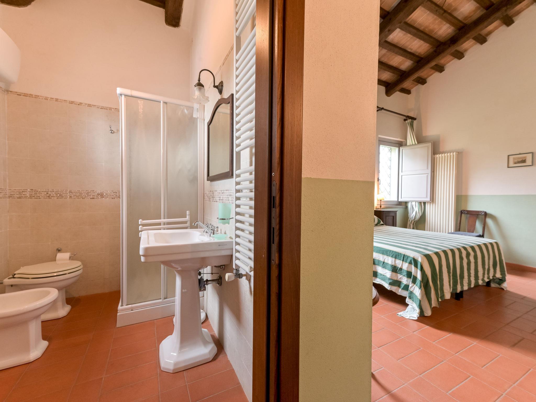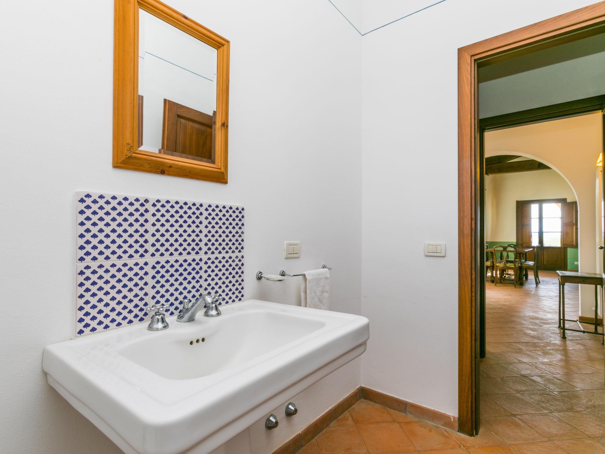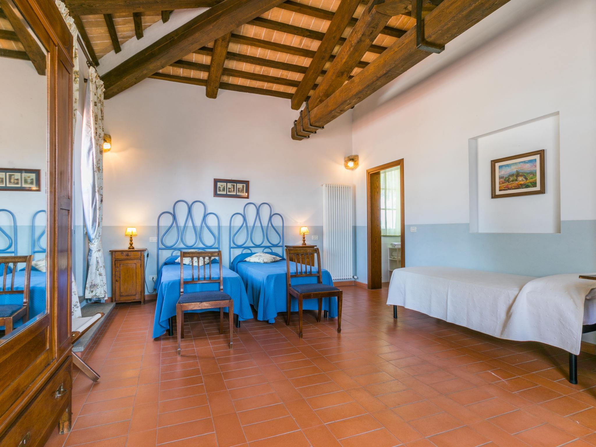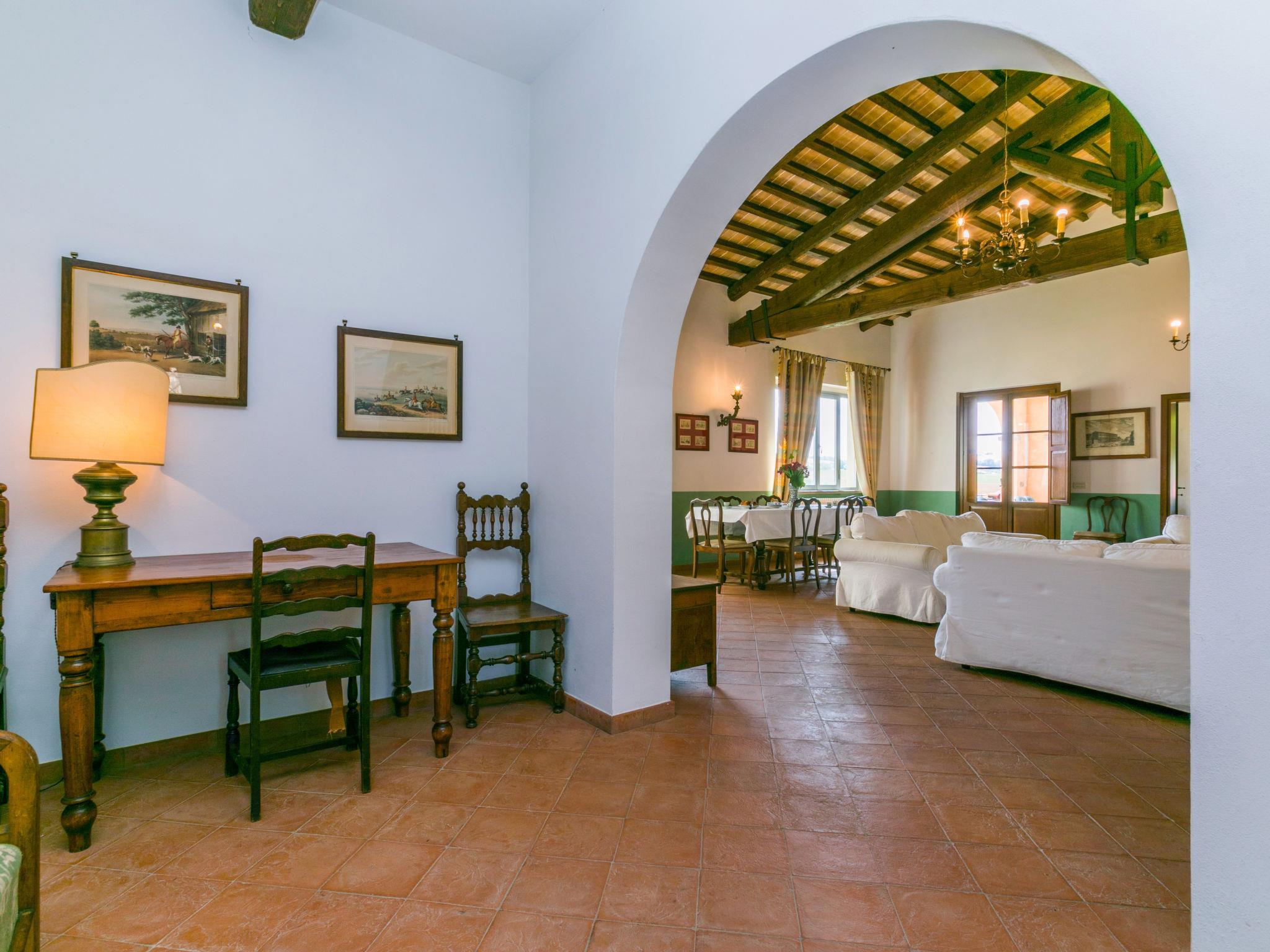 6-room villa 365 m2 on 2 levels. Antique and luxurious furnishings: large living room with open-hearth fireplace. Exit to the patio. Small living room with TV. 1 double bedroom 22 m2. 1 room 20 m2 with 2 beds. 2 rooms, each room with 1 double bed (160 cm), shower/bidet/WC. Kitchen 28 m2 (4 hot plates, oven, dishwasher, toaster, electric coffee machine) with dining table. Exit to the garden, pergola. Shower/bidet/WC, sep. WC. Upper floor: 1 double bedroom 28 m2 with open-hearth fireplace and shower/bidet/WC. 1 room 28 m2 with 1 bed, 1 double bed and shower/bidet/WC. Exit to the terrace. Patio, garden. Barbecue. Marvellous view of the countryside. Facilities: washing machine, iron, mosquito net, hair dryer. Parking. Please note: non-smokers only. Maximum 2 pets/ dogs allowed. Private entrance. No internal connecting door between the separated properties. All windows and patio doors have mosquito nets. IT053014B5TUJ7UD5C