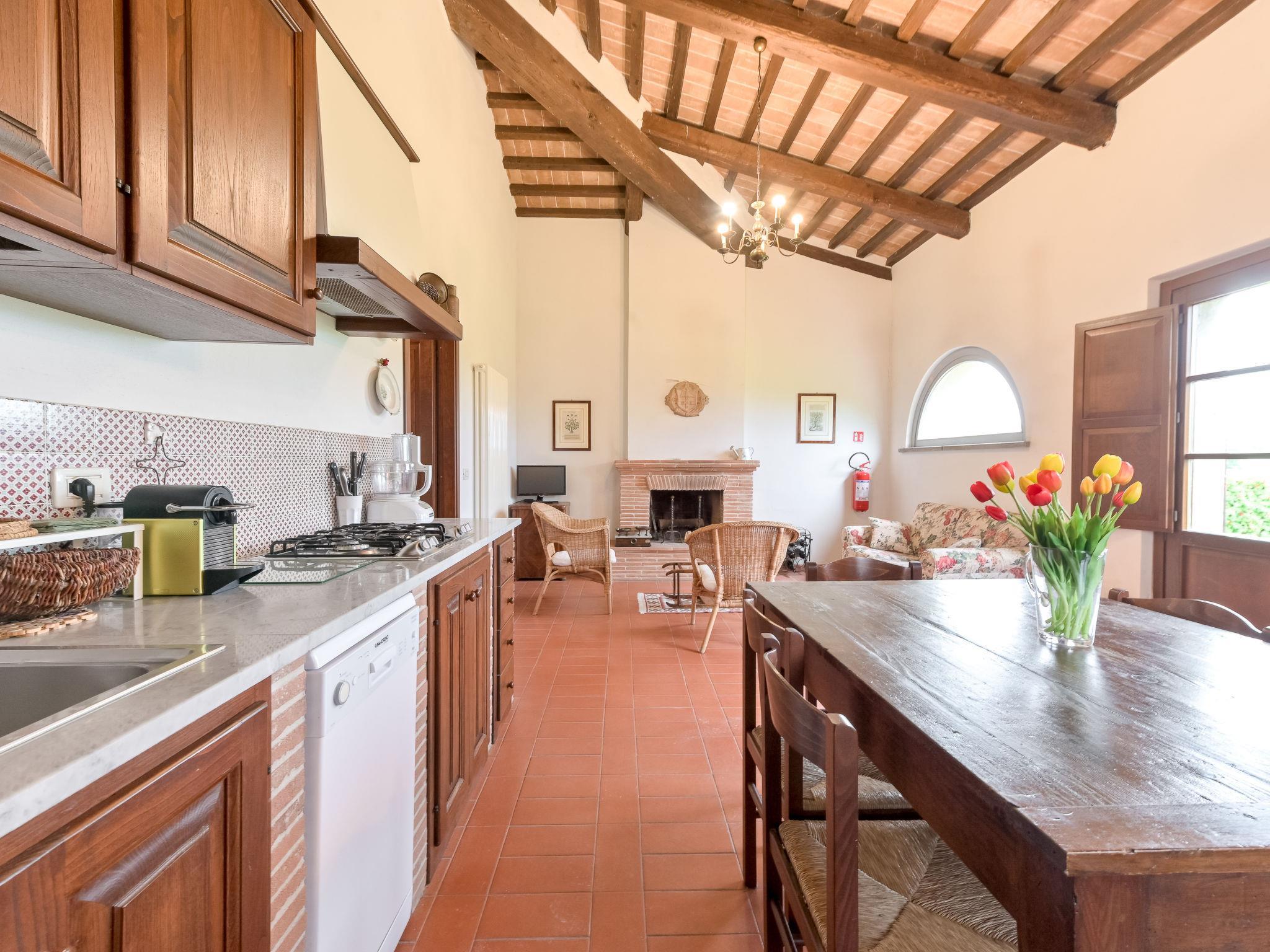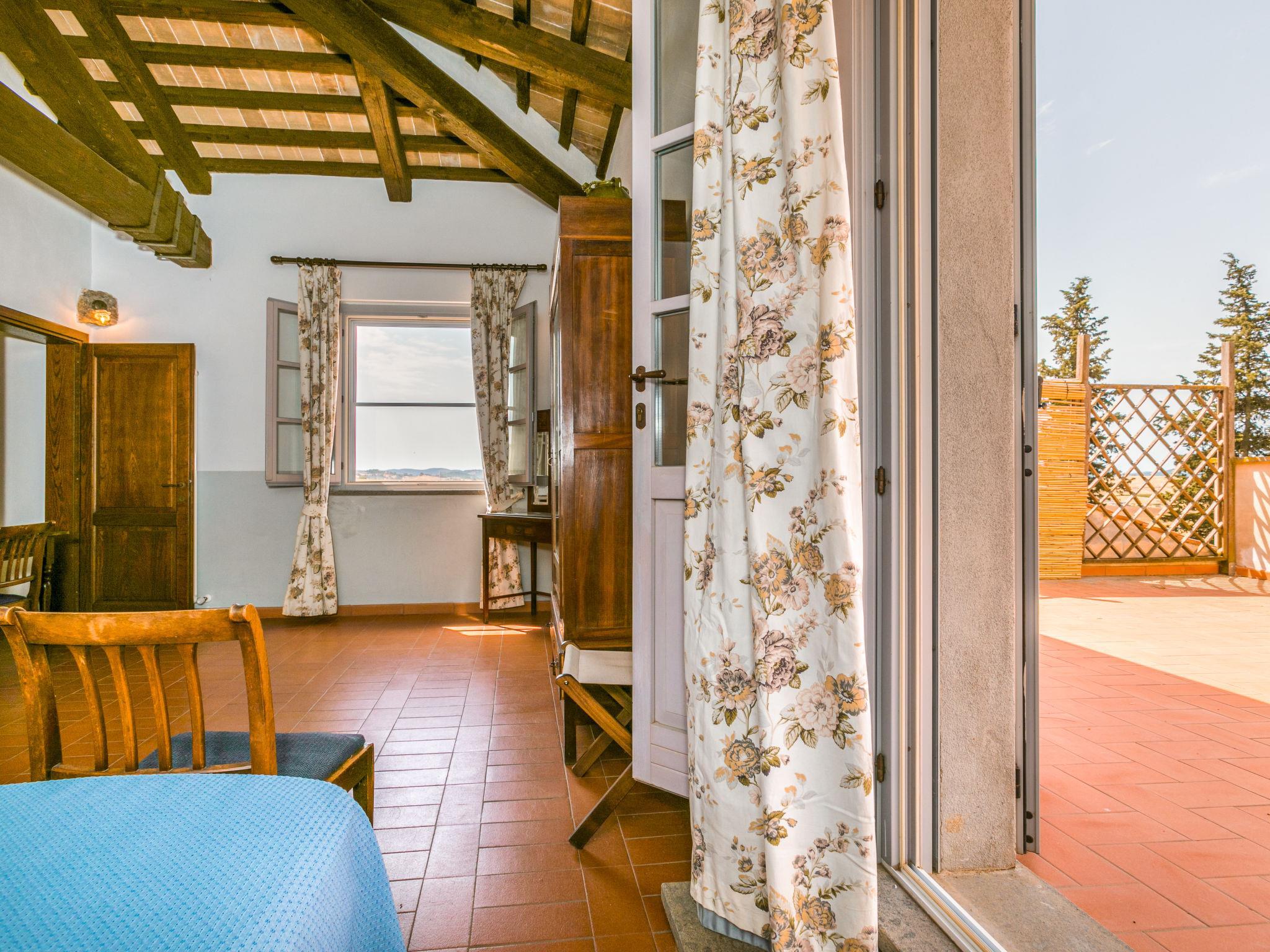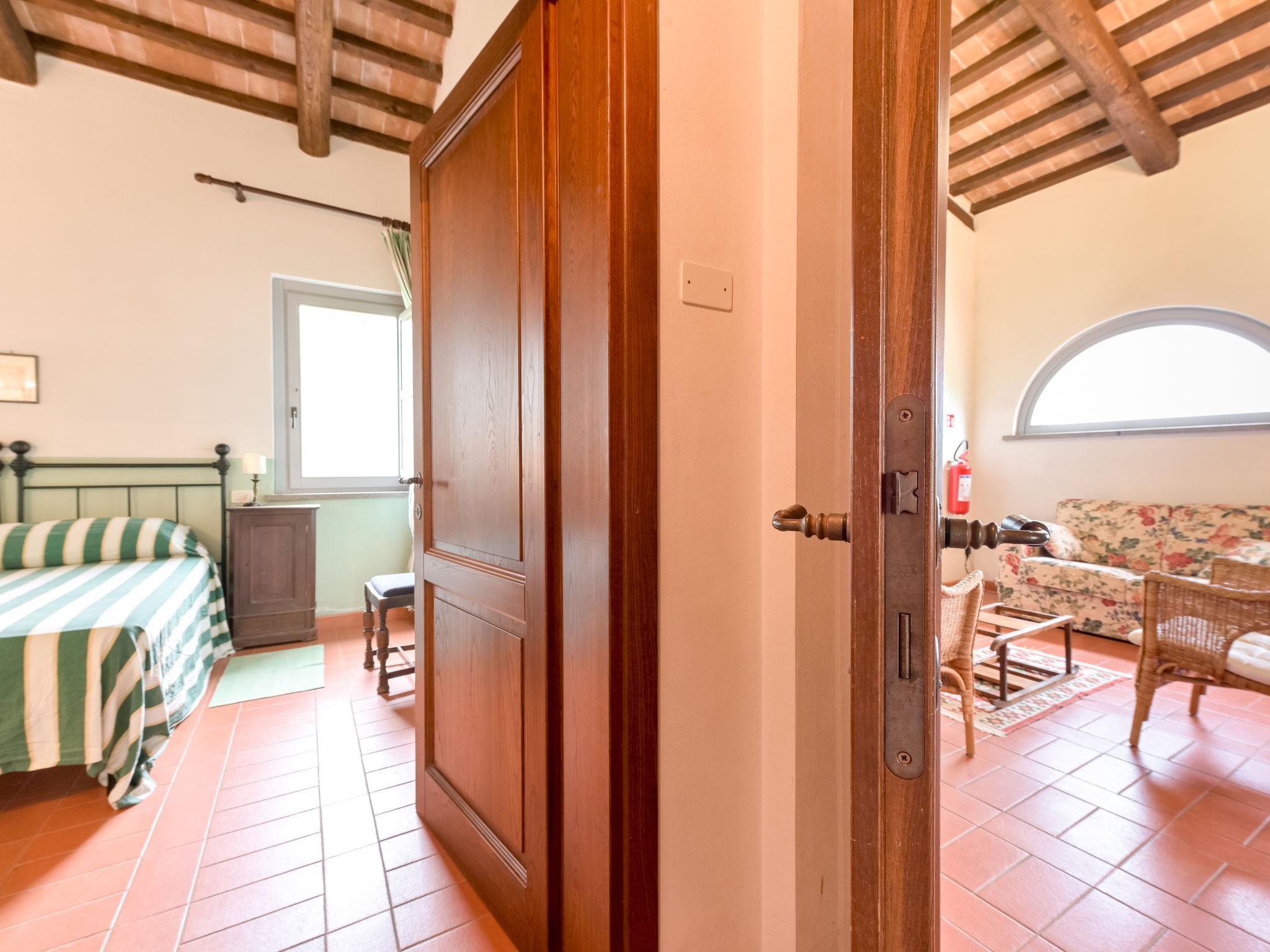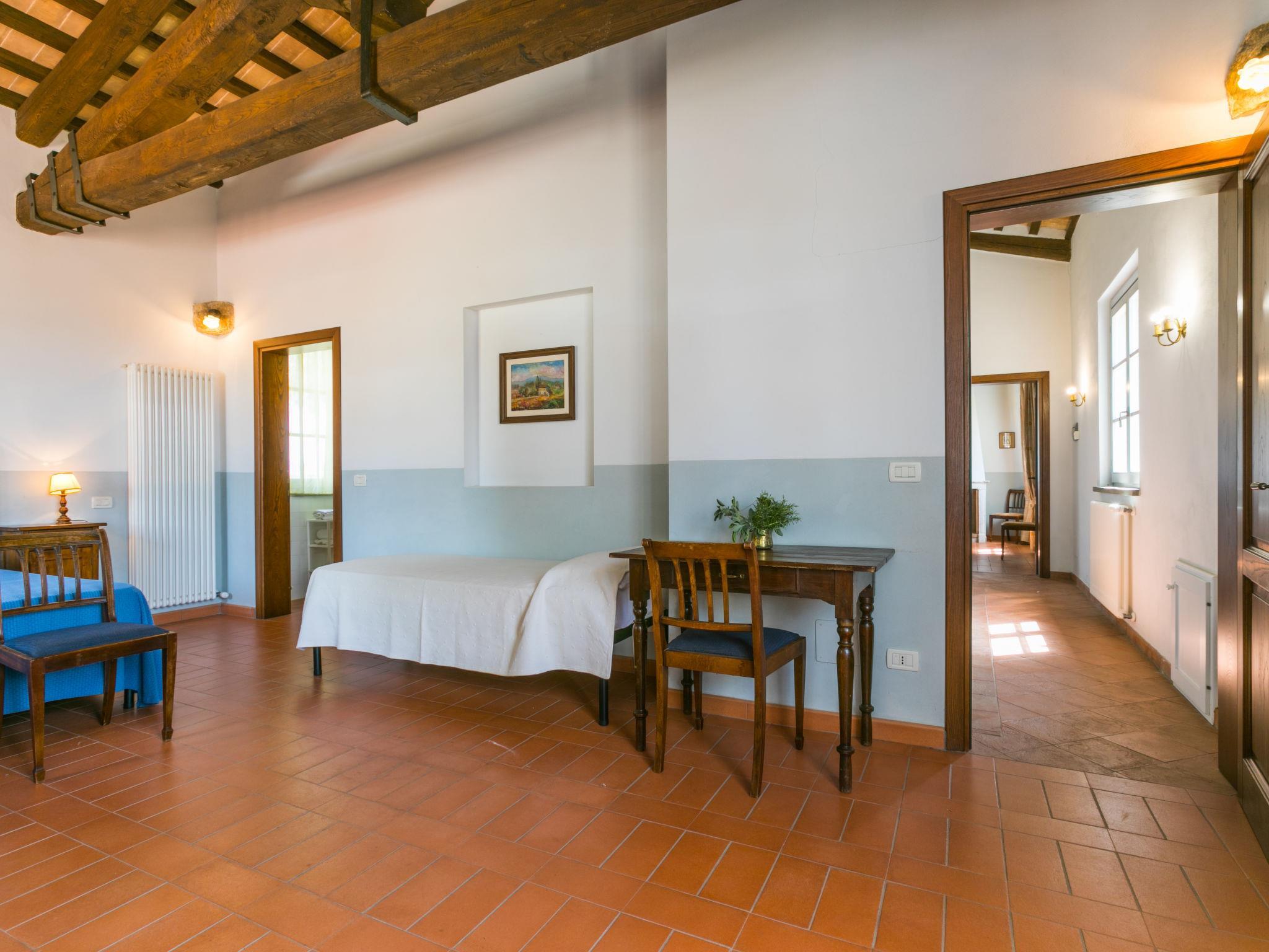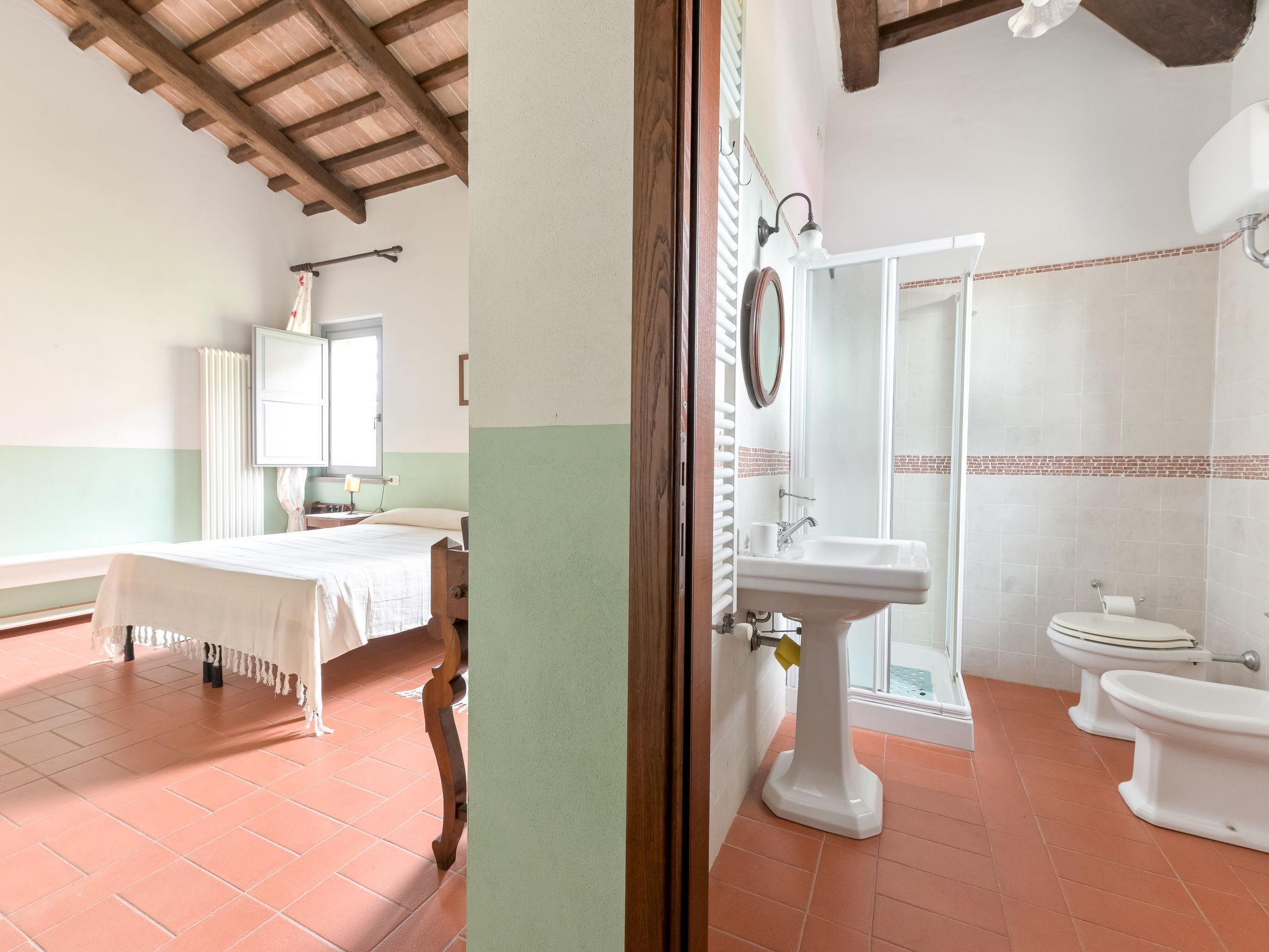 6-room villa 365 m2 on 2 levels. Antique and luxurious furnishings: large living room with open-hearth fireplace. Exit to the patio. Small living room with TV. 1 double bedroom 22 m2. 1 room 20 m2 with 2 beds. 2 rooms, each room with 1 double bed (160 cm), shower/bidet/WC. Kitchen 28 m2 (4 hot plates, oven, dishwasher, toaster, electric coffee machine) with dining table. Exit to the garden, pergola. Shower/bidet/WC, sep. WC. Upper floor: 1 double bedroom 28 m2 with open-hearth fireplace and shower/bidet/WC. 1 room 28 m2 with 1 bed, 1 double bed and shower/bidet/WC. Exit to the terrace. Patio, garden. Barbecue. Marvellous view of the countryside. Facilities: washing machine, iron, mosquito net, hair dryer. Parking. Please note: non-smokers only. Maximum 2 pets/ dogs allowed. Private entrance. No internal connecting door between the separated properties. All windows and patio doors have mosquito nets. IT053014B5TUJ7UD5C