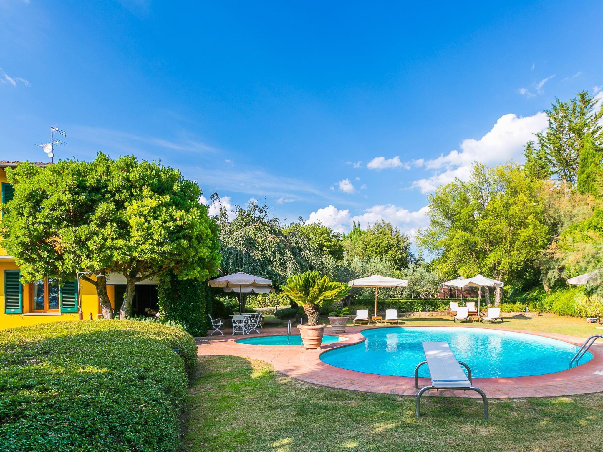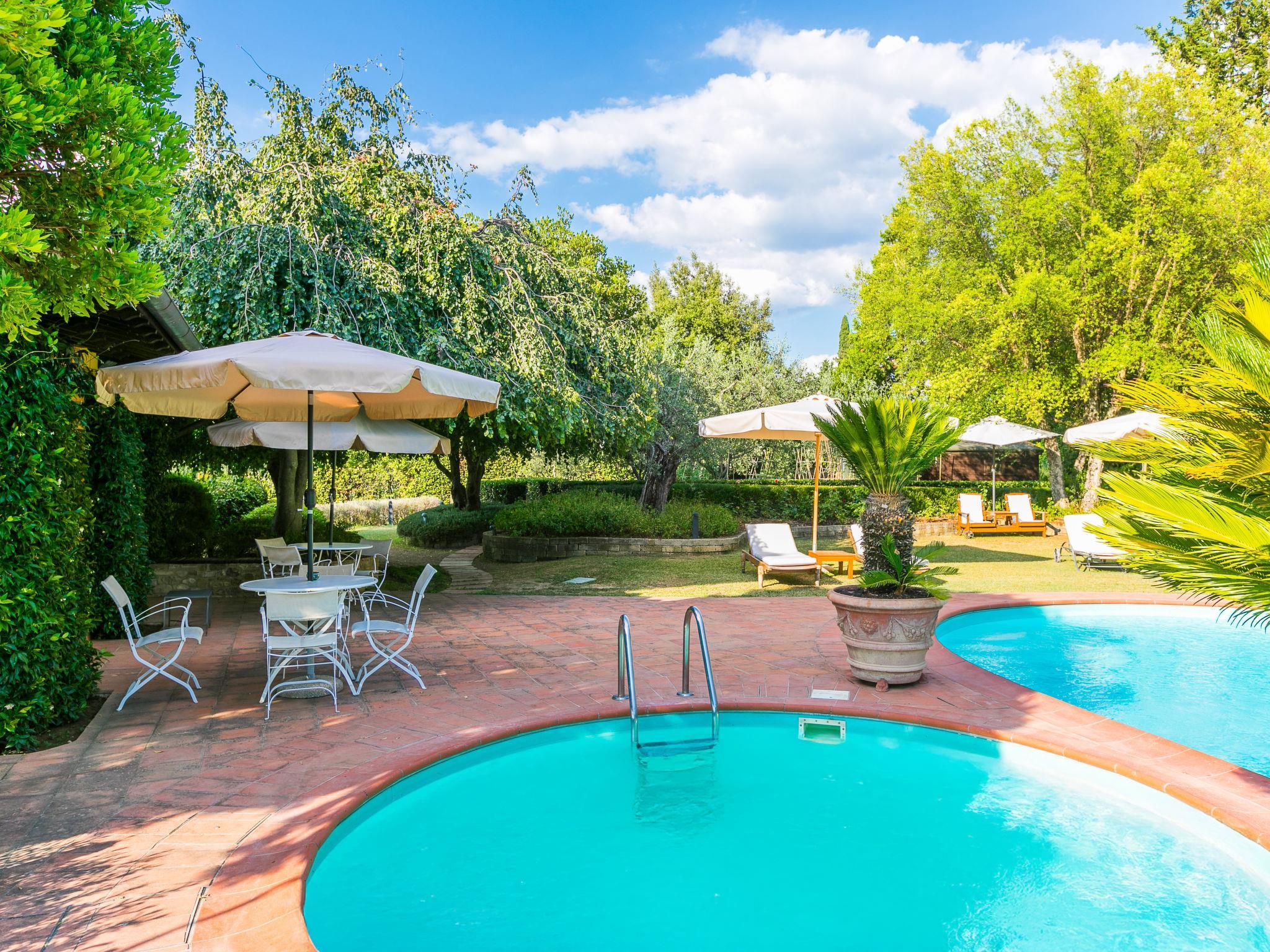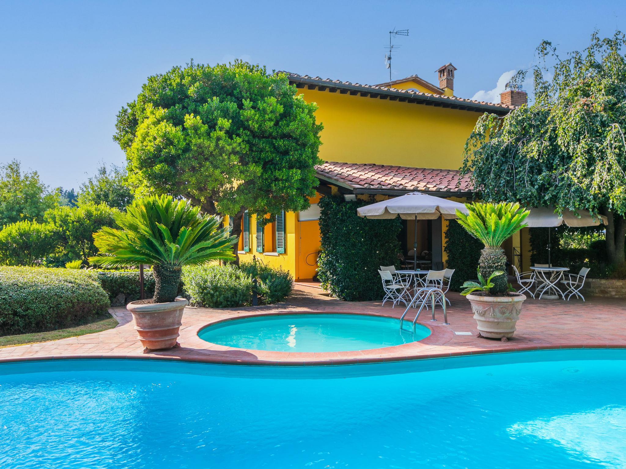 Marcialla 3 km from Tavarnelle Val di Pesa: Very beautiful, comfortable single-family house "Villa Silvana", 3 storeys. 800 m from the centre of Marcialla, in a secluded position in the residential district. Private: large, well-kept garden (fenced) with wildlife garden and trees, swimming pool (5 x 10 m, depth 100 - 250 cm, seasonal availability: 20.Apr. - 15.Oct.). Outdoor shower, hot tub, arbour, pergola, terrace, garden furniture, barbecue, pool maintenance by the owner/gardener. In the house: fitness room, hot tub (all included). Linen change (suppl. charge extra). Towel change (suppl. charge extra). Room cleaning on request (extra). House maid on request (extra). Cook on request (extra). Breakfast and half board possible (extra). Parking at the house, single garage at the house. Shop, grocery 800 m, supermarket 3 km, restaurant, bakery 800 m, bus stop 100 m, railway station "Zambra" 13 km, sandy beach "Cecina Mare" 90 km. Golf course (14 hole) 30 km. Nearby attractions: Certaldo 11 km, San Gimignano 22 km, Firenze 36 km, Siena 46 km, Volterra 47 km, Pisa 86 km. Please note: baby equipment (included). Suitable for events. Cooking courses bookable on request. The owner does not accept any youth groups.