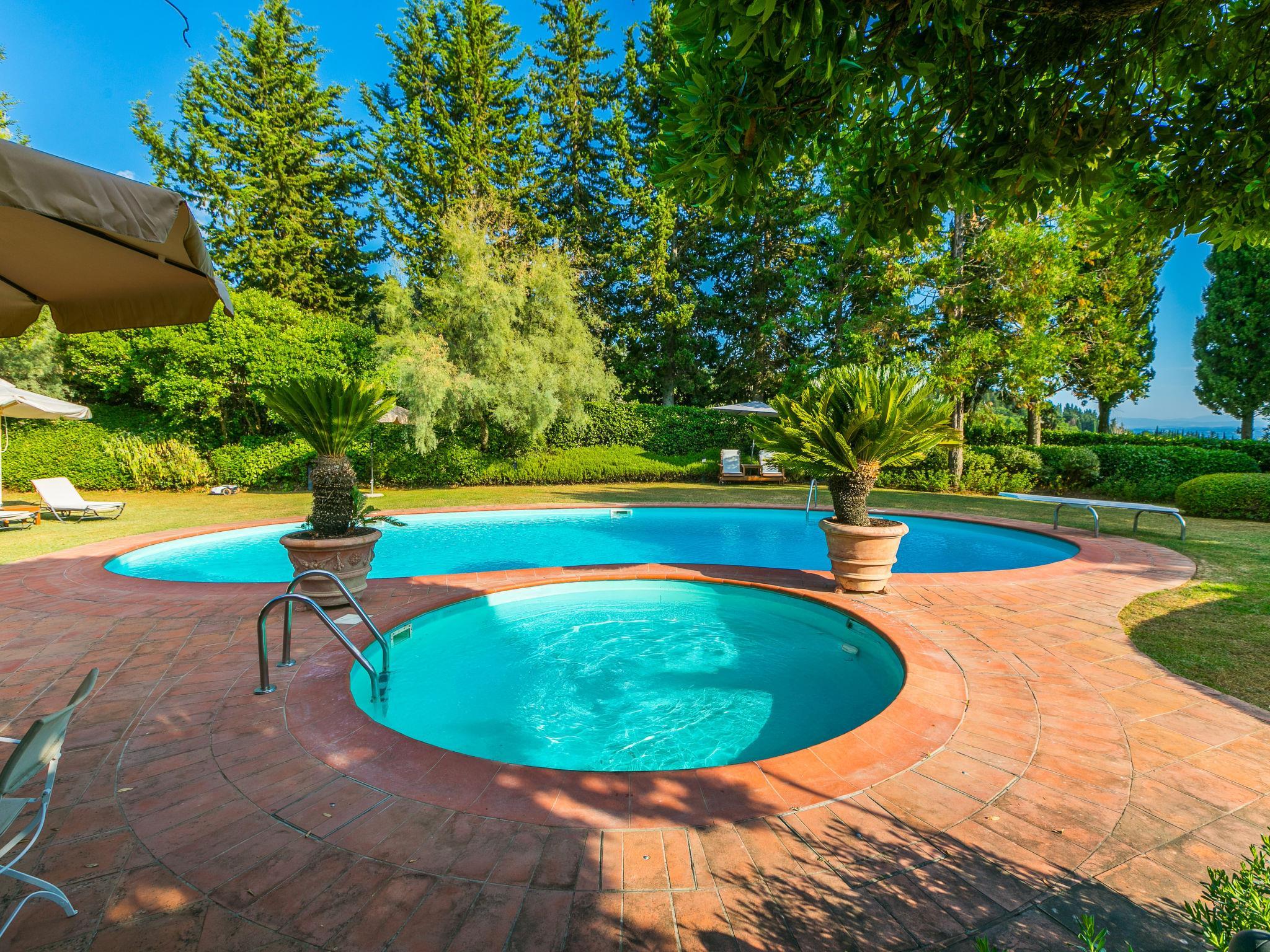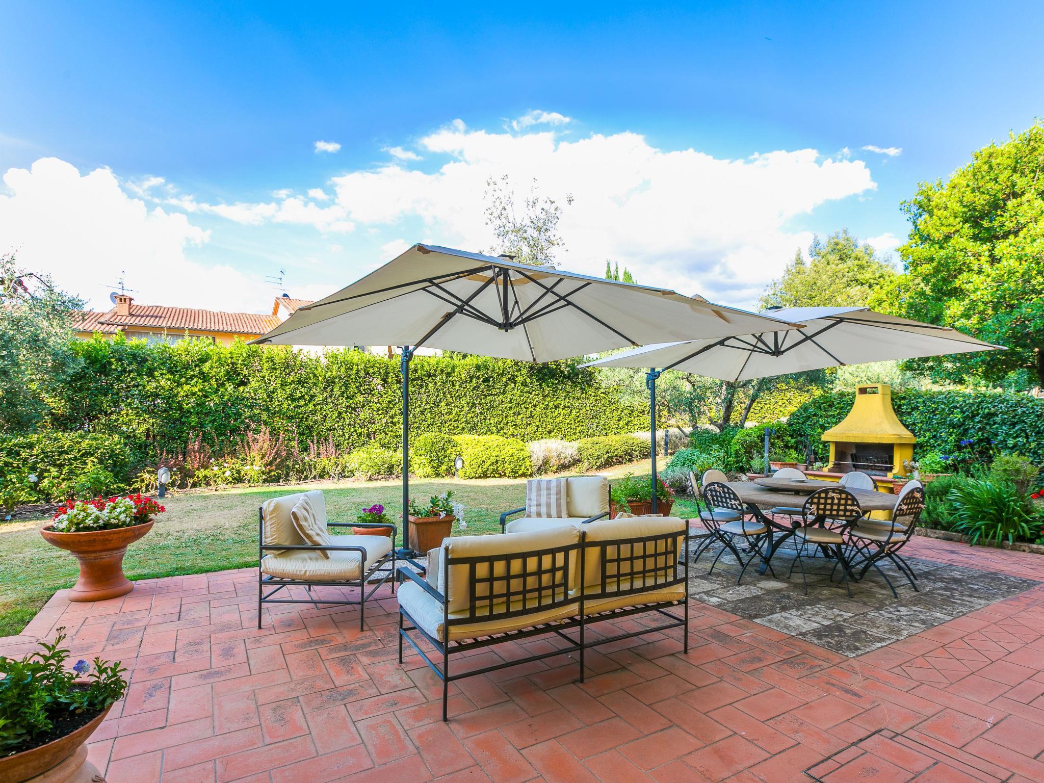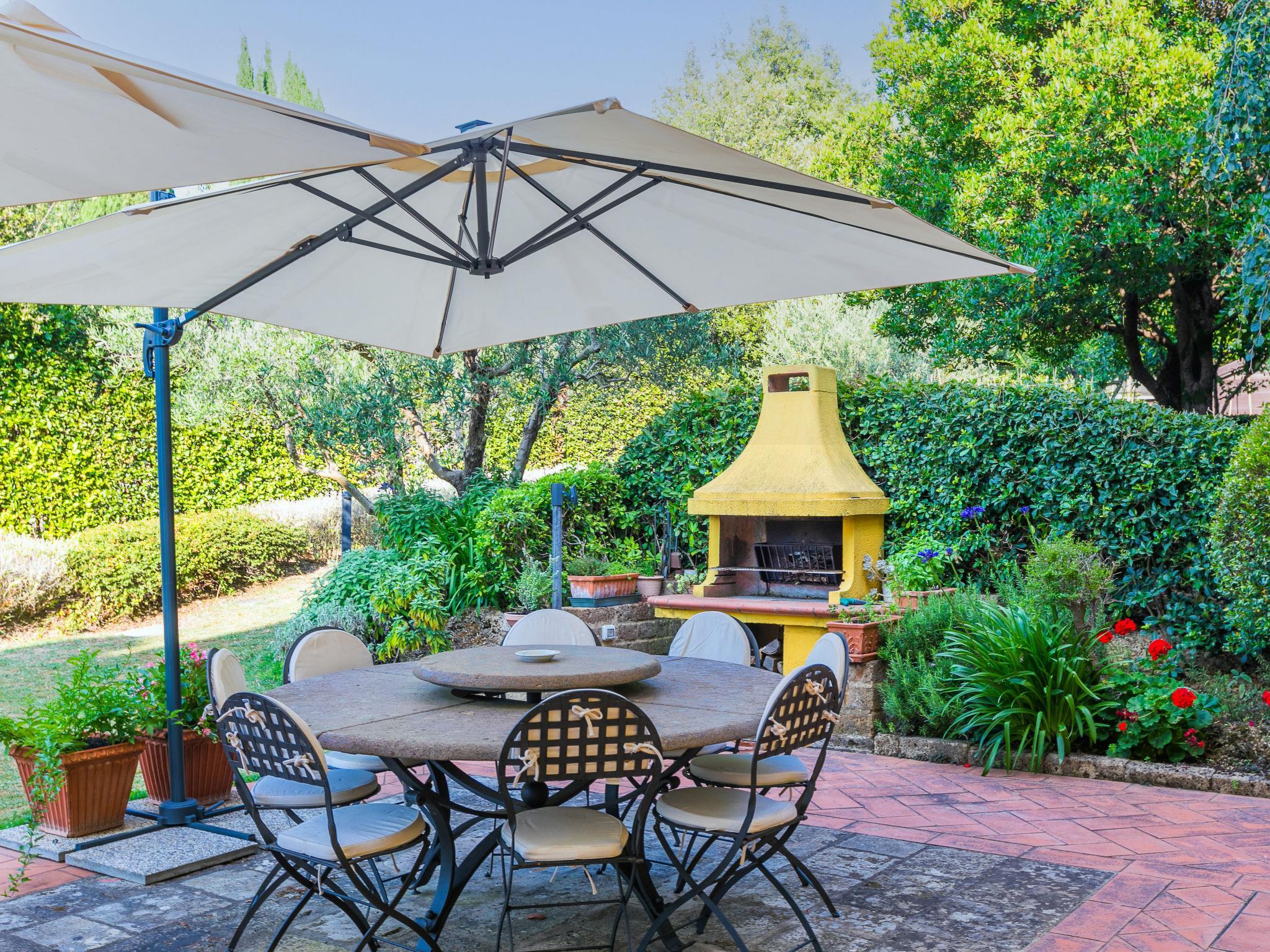 Marcialla 3 km from Tavarnelle Val di Pesa: Very beautiful, comfortable single-family house "Villa Silvana", 3 storeys. 800 m from the centre of Marcialla, in a secluded position in the residential district. Private: large, well-kept garden (fenced) with wildlife garden and trees, swimming pool (5 x 10 m, depth 100 - 250 cm, seasonal availability: 20.Apr. - 15.Oct.). Outdoor shower, hot tub, arbour, pergola, terrace, garden furniture, barbecue, pool maintenance by the owner/gardener. In the house: fitness room, hot tub (all included). Linen change (suppl. charge extra). Towel change (suppl. charge extra). Room cleaning on request (extra). House maid on request (extra). Cook on request (extra). Breakfast and half board possible (extra). Parking at the house, single garage at the house. Shop, grocery 800 m, supermarket 3 km, restaurant, bakery 800 m, bus stop 100 m, railway station "Zambra" 13 km, sandy beach "Cecina Mare" 90 km. Golf course (14 hole) 30 km. Nearby attractions: Certaldo 11 km, San Gimignano 22 km, Firenze 36 km, Siena 46 km, Volterra 47 km, Pisa 86 km. Please note: baby equipment (included). Suitable for events. Cooking courses bookable on request. The owner does not accept any youth groups.