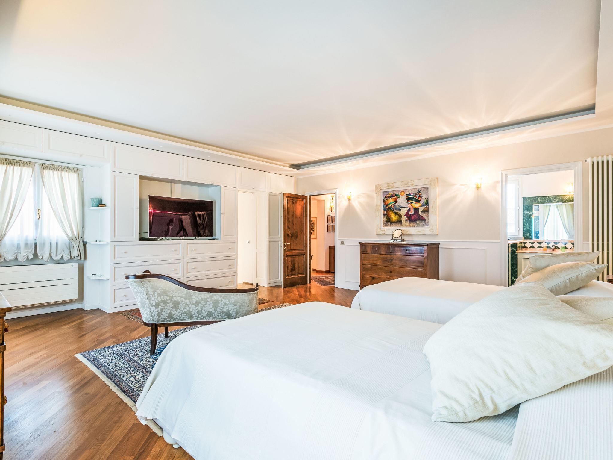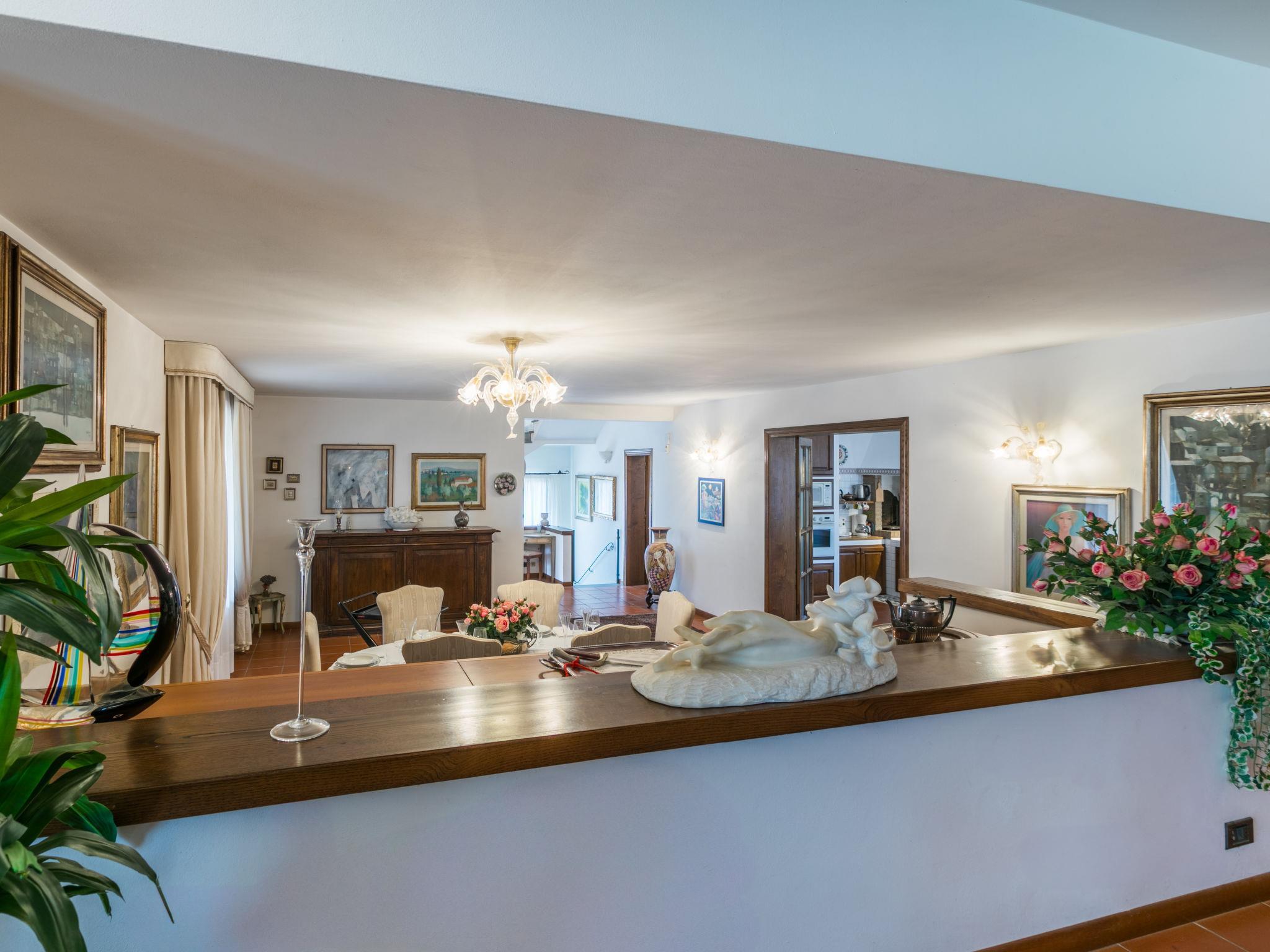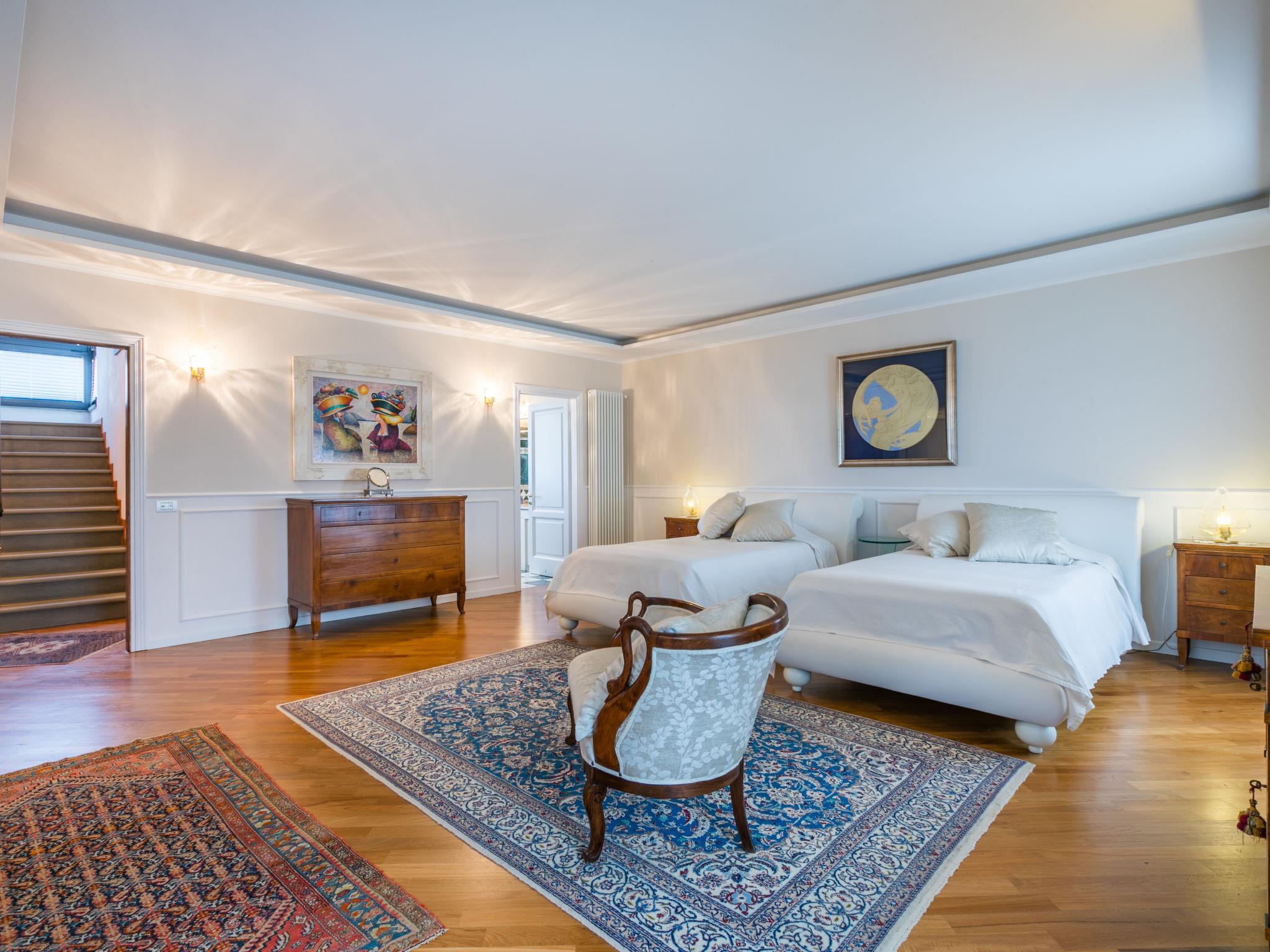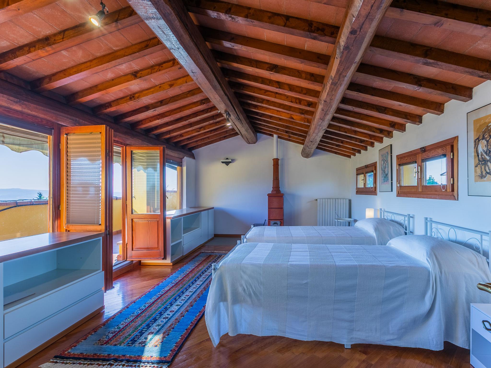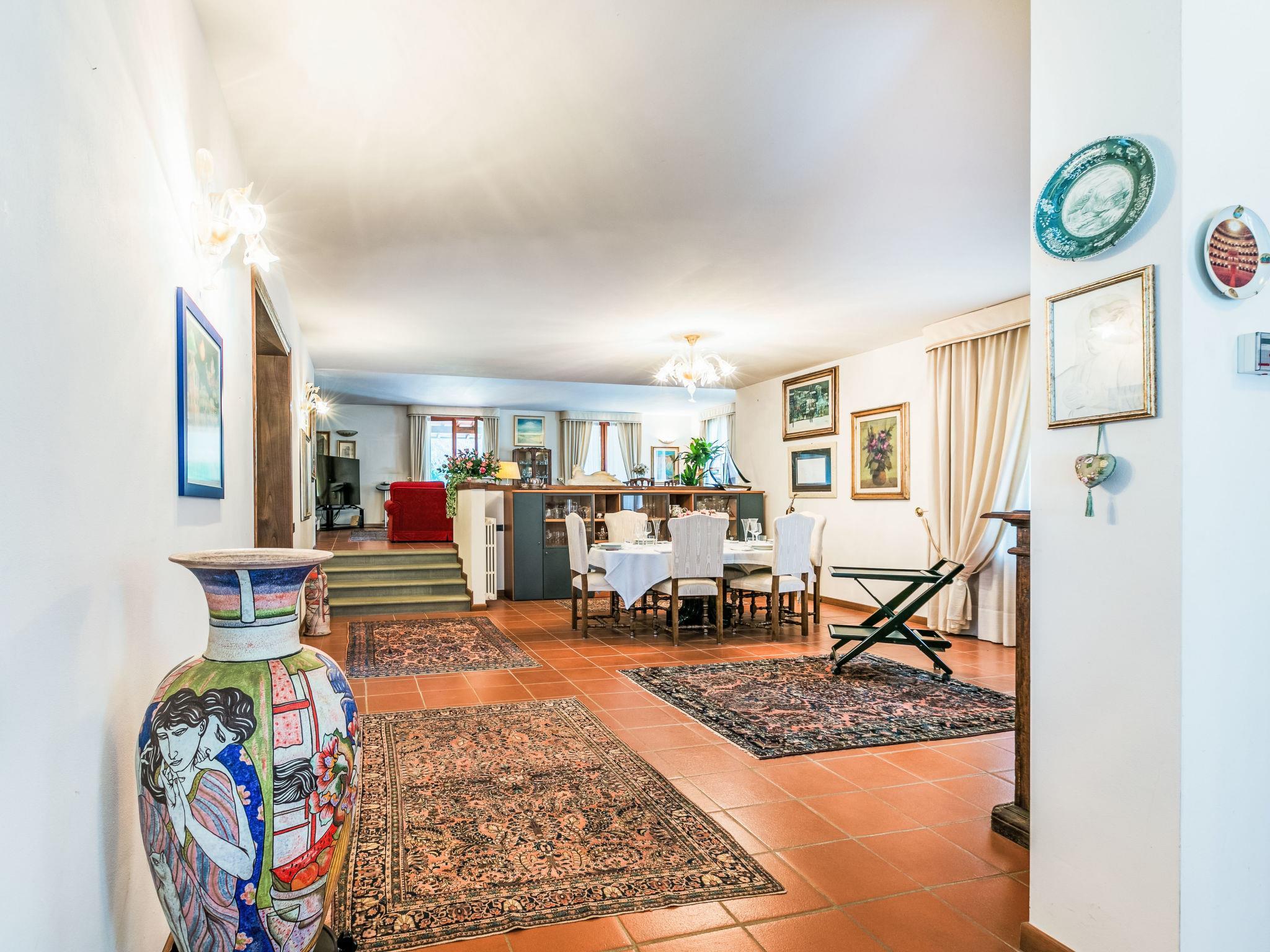 "Villa Silvana", 9-room villa 350 m2 on 4 levels. Spacious, tasteful and stylish furnishings: open entrance hall. Open dining room. Open large living room with open-hearth fireplace and TV (flat screen). Exit to the terrace, to the swimming pool. Large kitchen (oven, dishwasher, 4 induction hot plates, Gas stove, 2 gas rings, toaster, kettle, microwave, grill, electric coffee machine) with dining table. Exit to the terrace. Shower/bidet/WC. On the lower ground floor: open large dining room. Open large living/dining room with open-hearth fireplace. Playroom. Large kitchen (oven, dishwasher, Gas stove, 6 gas rings, toaster, kettle, microwave, freezer, electric coffee machine). Shower/bidet/WC. Upper floor: 2 double bedrooms. 1 large room with Dressing room with 2 beds (120 cm), bath/shower/bidet/WC and TV (flat screen), air conditioning. Exit to the balcony. 2 showers/bidet/WC. 2nd upper floor: 1 double bedroom with sloping ceilings with panoramic window. Exit to the balcony. Gas heating, air-conditioning. Parquet floors, natural stone floors. 2 terraces covered, patio, lawn. Terrace furniture, barbecue, deck chairs, covered balcony, sitting area, box-room. Marvellous panoramic view of the countryside. Facilities: washing machine, dryer, iron, mosquito net, children's high chair, baby cot for up to 2 year olds, hair dryer. Internet (WiFi, free). Parking (fenced 4 cars). Please note: suitable for families. Non-smokers only. Private entrance, smoke alarm, fire extinguisher. The pool mentioned in the description is for private use. IT048054C26OX2COPC