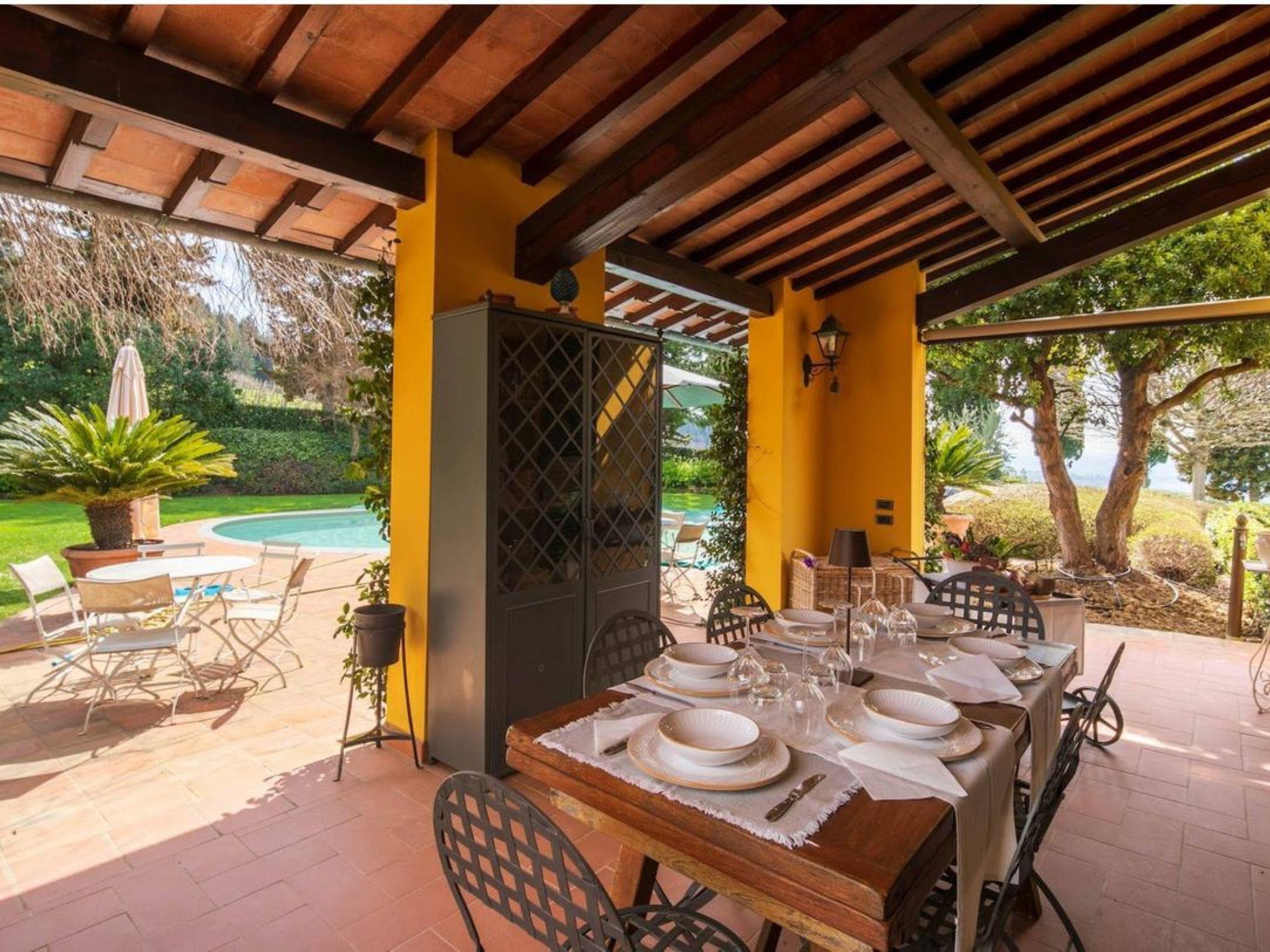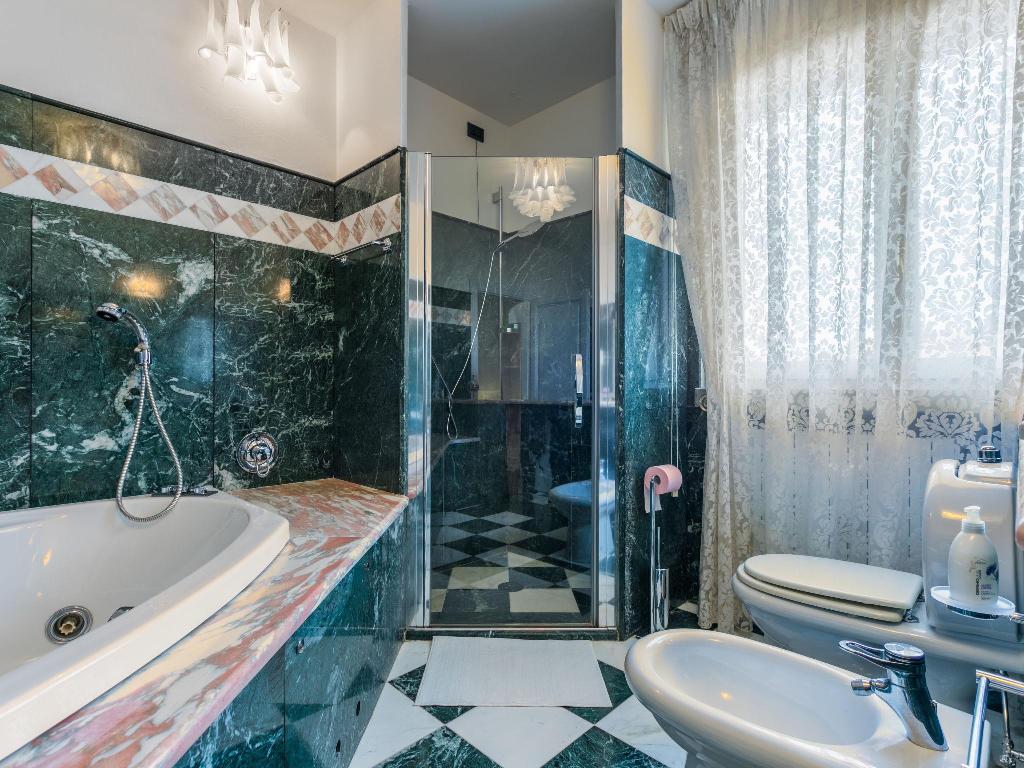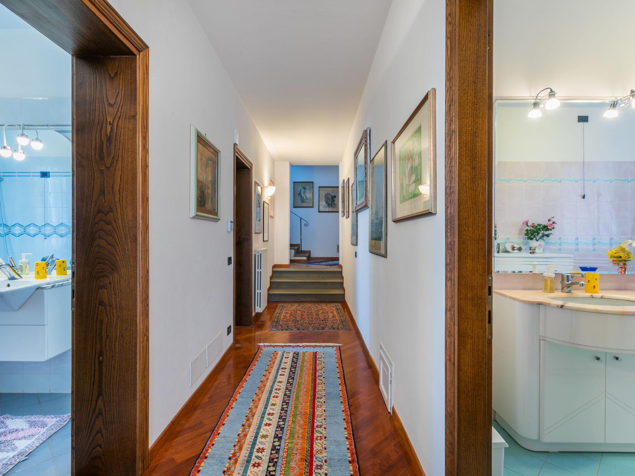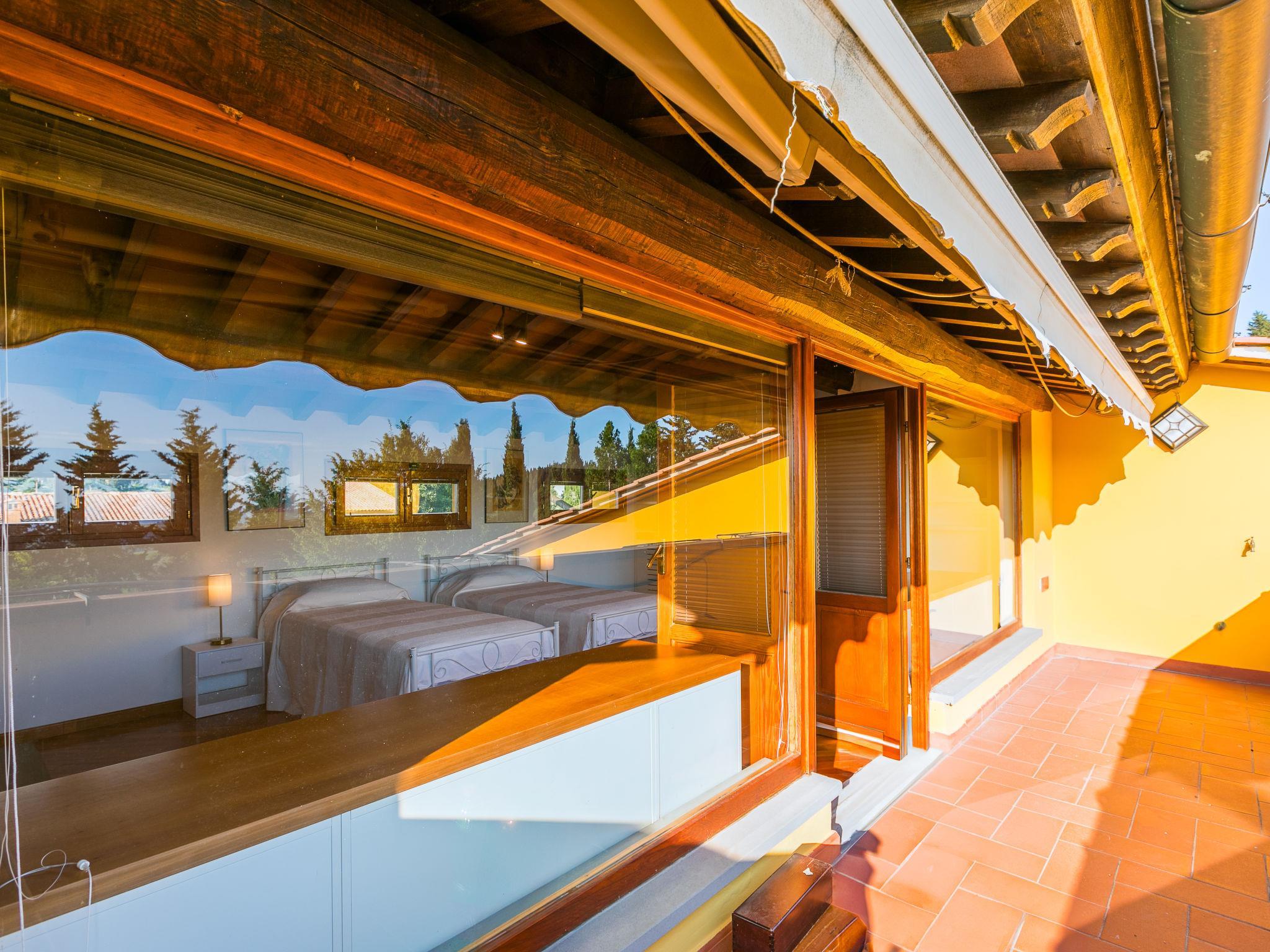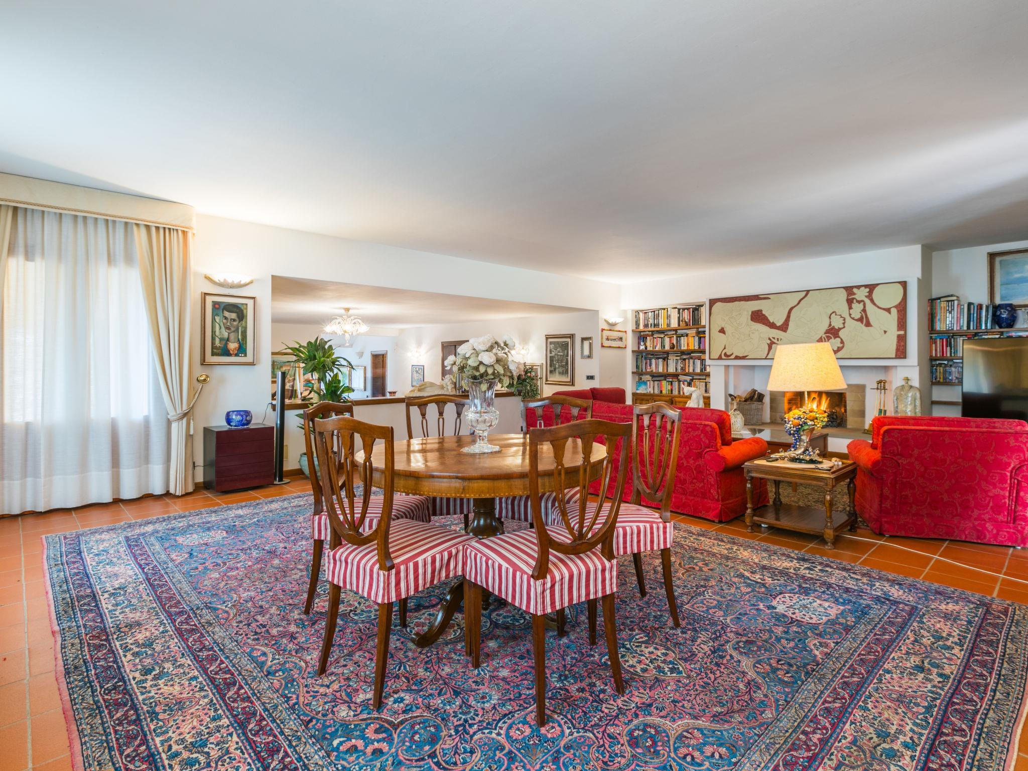 "Villa Silvana", 9-room villa 350 m2 on 4 levels. Spacious, tasteful and stylish furnishings: open entrance hall. Open dining room. Open large living room with open-hearth fireplace and TV (flat screen). Exit to the terrace, to the swimming pool. Large kitchen (oven, dishwasher, 4 induction hot plates, Gas stove, 2 gas rings, toaster, kettle, microwave, grill, electric coffee machine) with dining table. Exit to the terrace. Shower/bidet/WC. On the lower ground floor: open large dining room. Open large living/dining room with open-hearth fireplace. Playroom. Large kitchen (oven, dishwasher, Gas stove, 6 gas rings, toaster, kettle, microwave, freezer, electric coffee machine). Shower/bidet/WC. Upper floor: 2 double bedrooms. 1 large room with Dressing room with 2 beds (120 cm), bath/shower/bidet/WC and TV (flat screen), air conditioning. Exit to the balcony. 2 showers/bidet/WC. 2nd upper floor: 1 double bedroom with sloping ceilings with panoramic window. Exit to the balcony. Gas heating, air-conditioning. Parquet floors, natural stone floors. 2 terraces covered, patio, lawn. Terrace furniture, barbecue, deck chairs, covered balcony, sitting area, box-room. Marvellous panoramic view of the countryside. Facilities: washing machine, dryer, iron, mosquito net, children's high chair, baby cot for up to 2 year olds, hair dryer. Internet (WiFi, free). Parking (fenced 4 cars). Please note: suitable for families. Non-smokers only. Private entrance, smoke alarm, fire extinguisher. The pool mentioned in the description is for private use. IT048054C26OX2COPC
