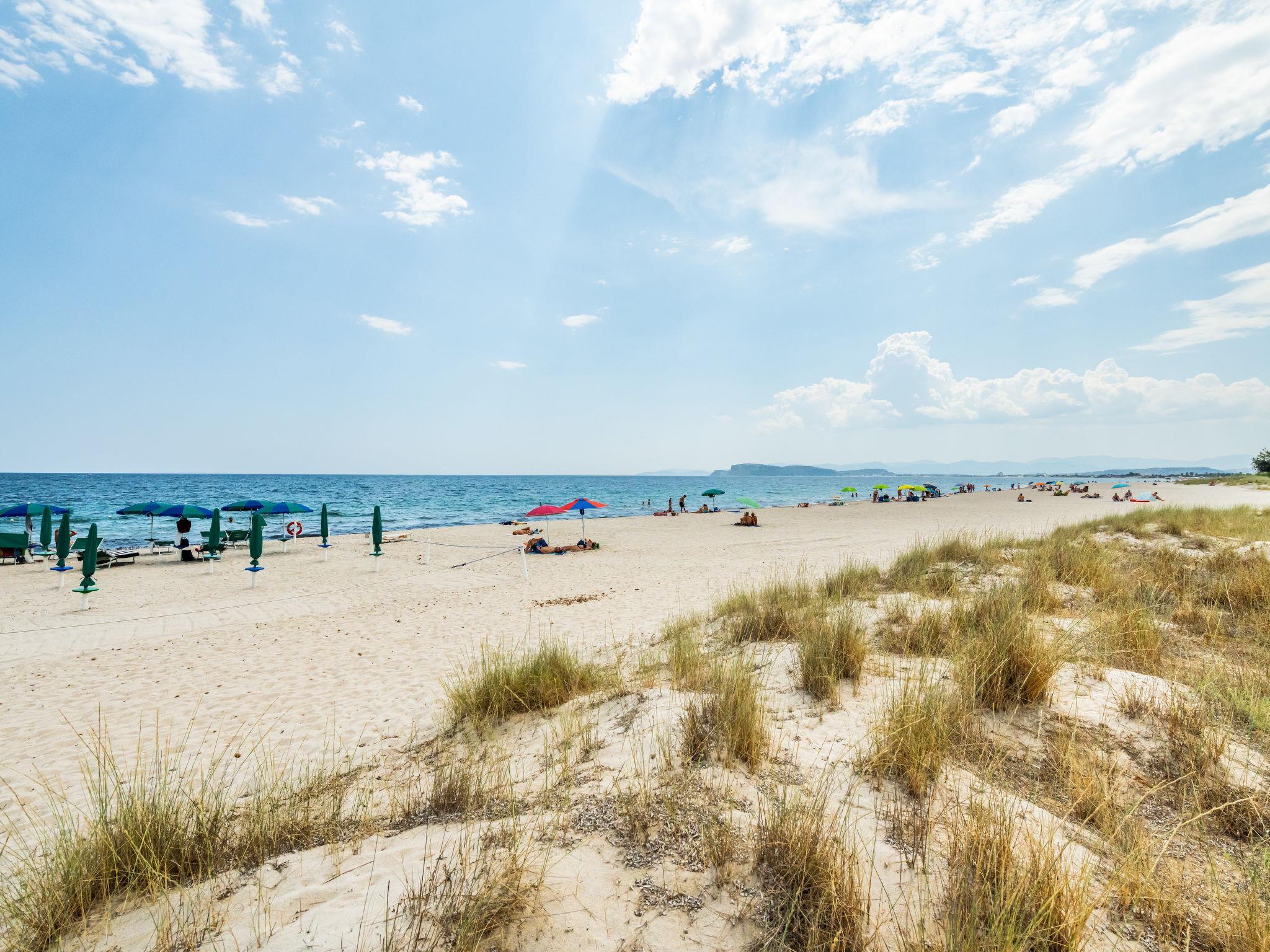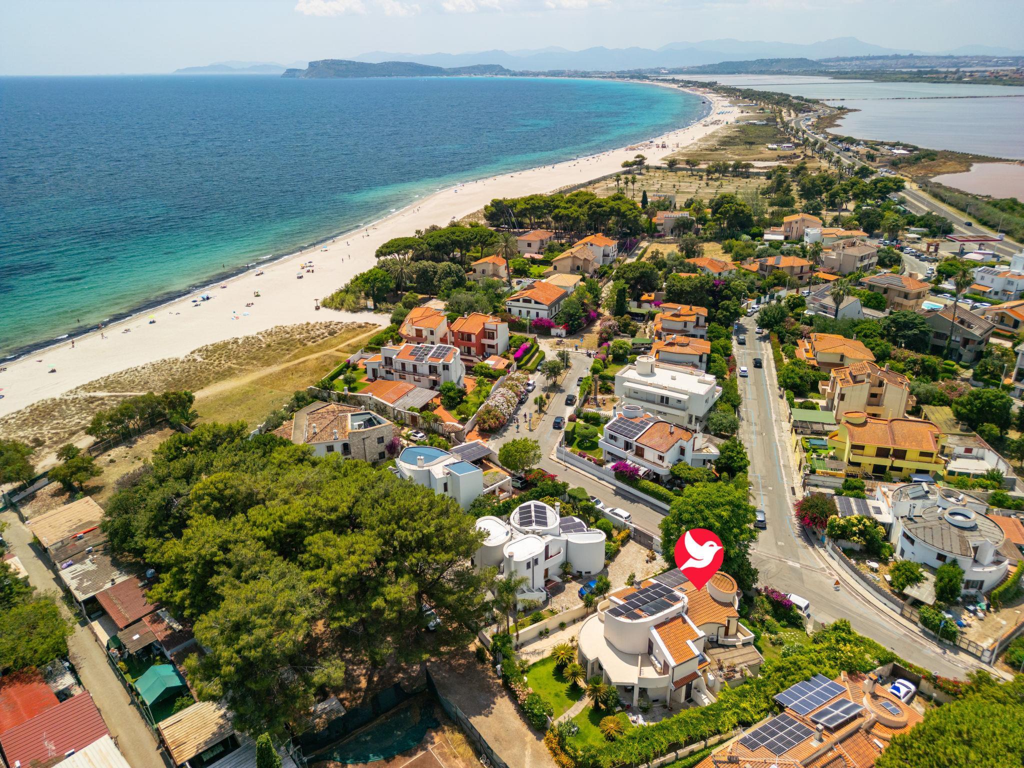 Very cosy villa detached, surrounded by trees. In the resort Margine Rosso, in a sunny position, 50 m from the sea, 50 m from the beach, in the countryside. Private: beautiful garden (fenced). 300 m long narrow motor access to the house. Parking on the premises. Supermarket 2 km, restaurant, bar 500 m, bus stop "Margine Rosso (angolo Scirocco)" 150 m, railway station "Cagliari" 14 km, ferry "Cagliari" 14 km. Nearby attractions: Poetto Spiaggia 150 m, Cagliari 15 km, Mari Pintau 17 km, Villasimius 45 km. Please note: car recommended.