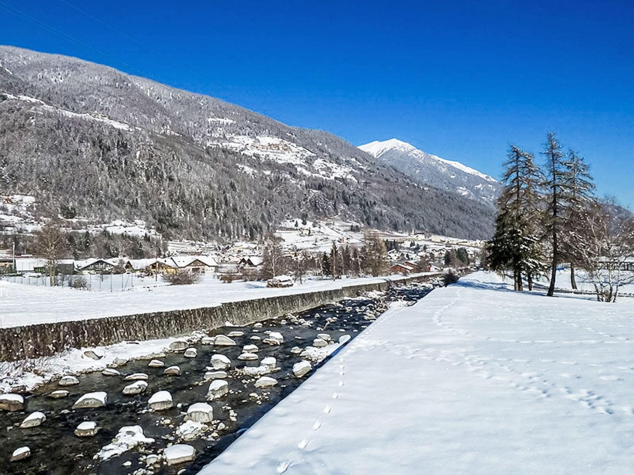 "Casa Maya Ski & Bike", 3-room apartment 55 m2, on the ground floor. Spacious, very comfortable and cosy furnishings: living/dining room with 1 double sofabed and satellite TV. Exit to the balcony. 1 room with 1 bed. 1 double bedroom with satellite TV. Kitchenette in the entrance (oven, dishwasher, Gas stove, 4 gas rings, toaster, kettle, microwave). Exit to the balcony. Bath/shower/bidet/WC. Heating. Small balcony. Terrace furniture, sitting area. Beautiful view of the mountains and the river. Facilities: washing machine, iron, baby cot for up to 2 year olds, hair dryer. Internet (WiFi, free). Parking (2 cars). Please note: non-smokers only. 1 small pet/ dog allowed. Private entrance. IT022114C2WUN3A6CS