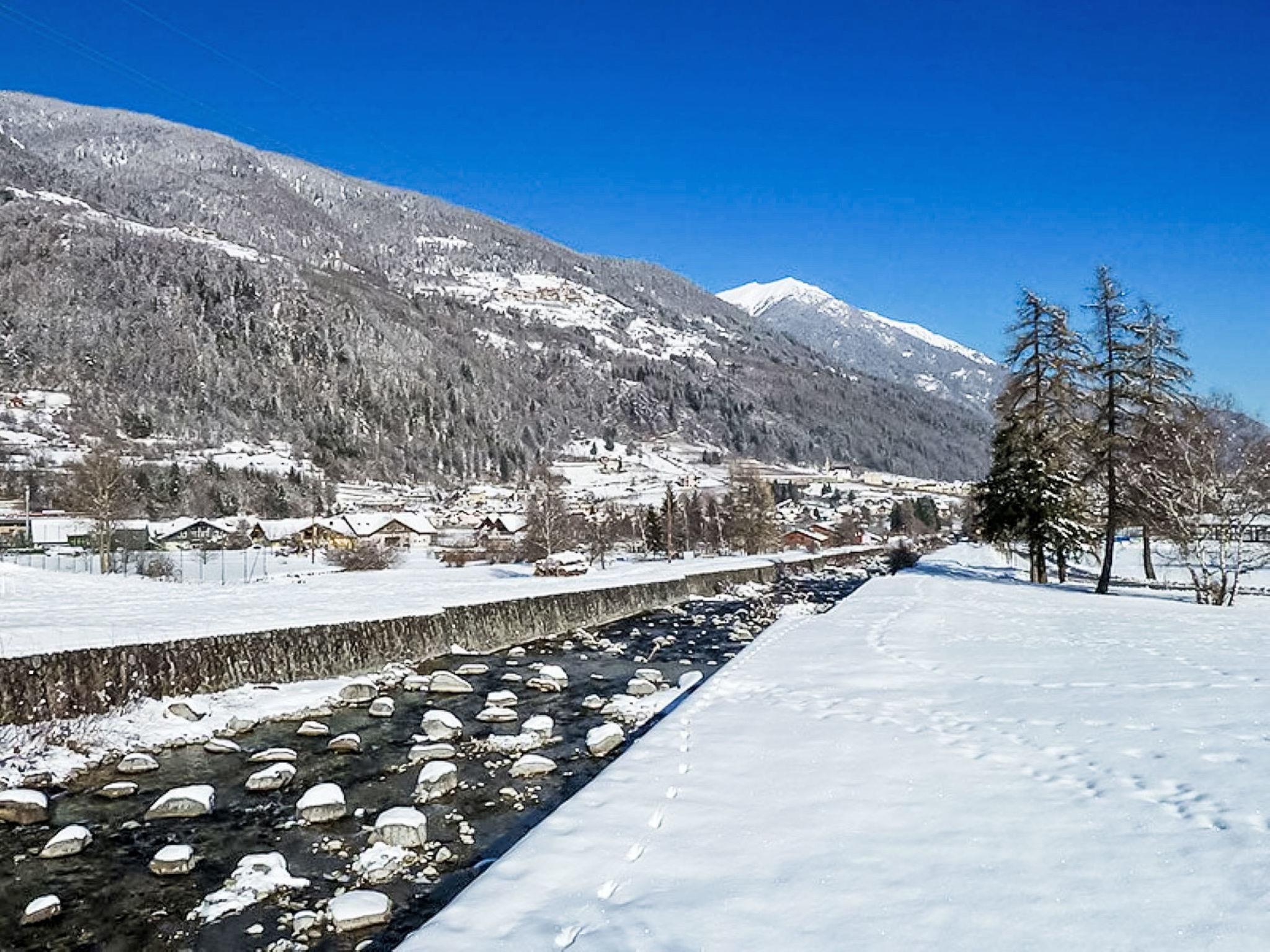 2-room apartment 40 m2 on 2nd floor. Practical and modern furnishings: living/sleeping room with 1 double sofabed (140 cm, length 200 cm), satellite TV (flat screen). 1 small double bedroom. Kitchenette (2 ceramic glass hob hotplates, microwave, freezer) with dining table and dining nook. Shower/bidet/WC. Heating. View of the mountains and the valley. Facilities: hair dryer. Internet (WiFi, free). Please note: non-smokers only. IT022114C2JMYDOESJ
