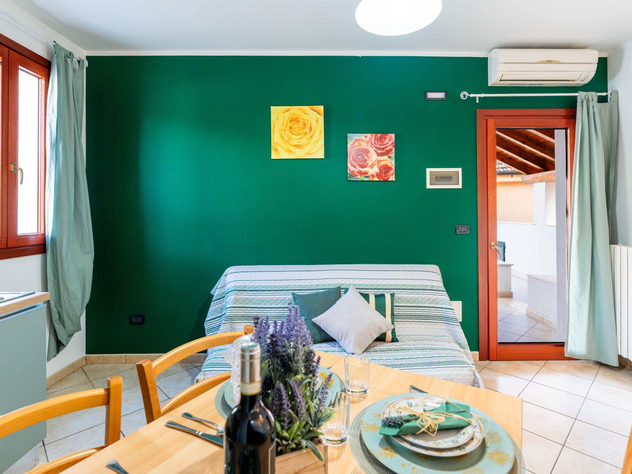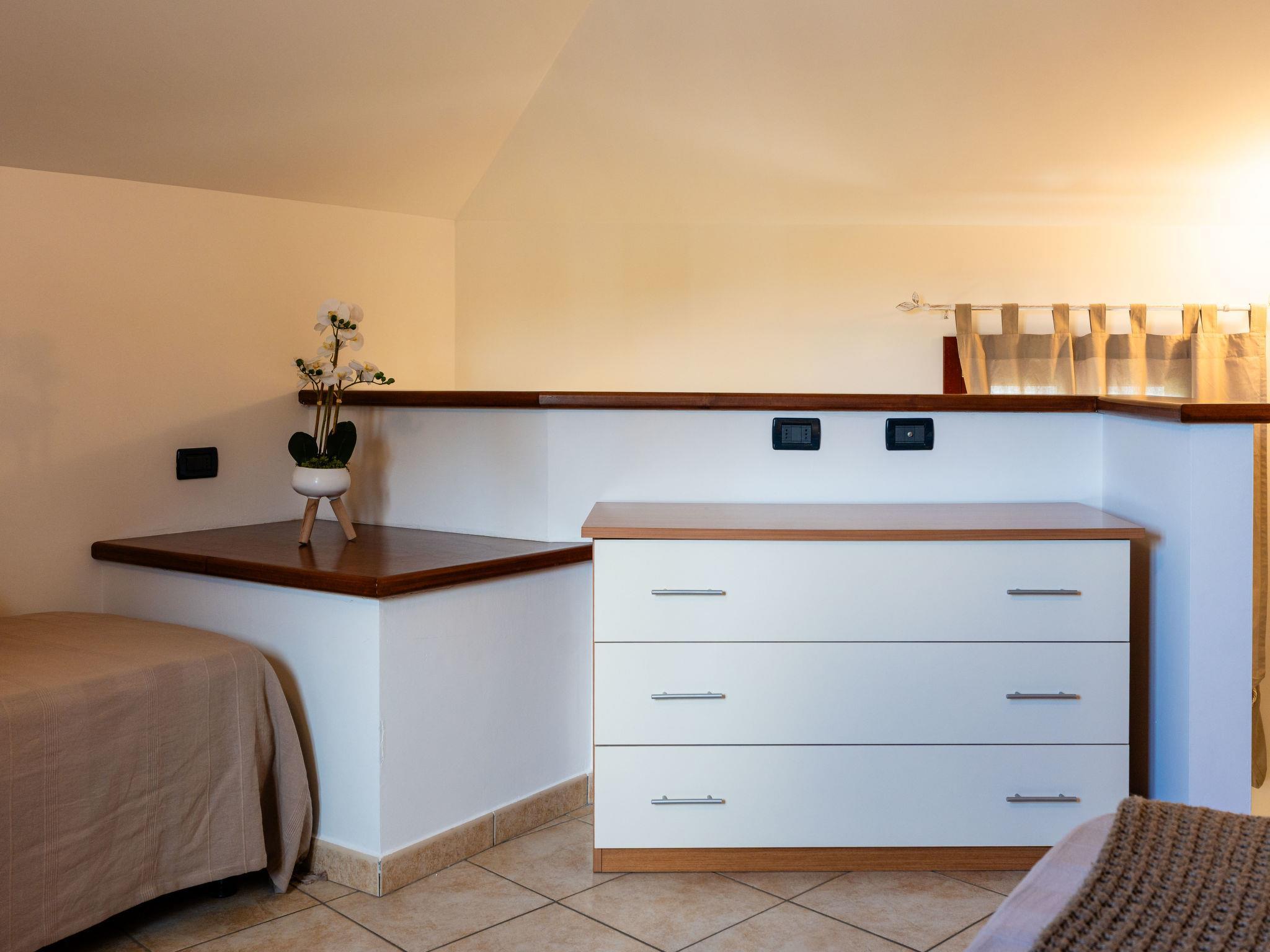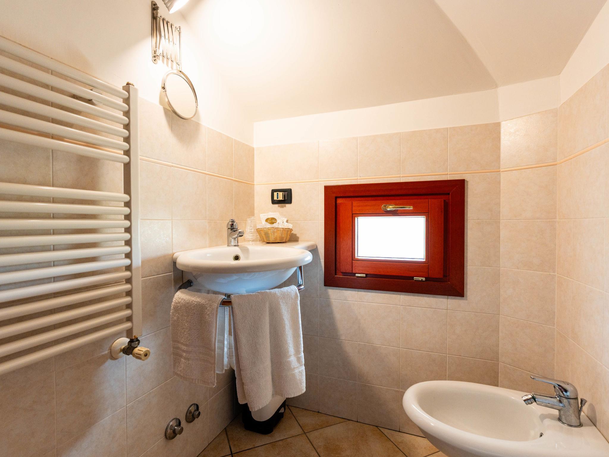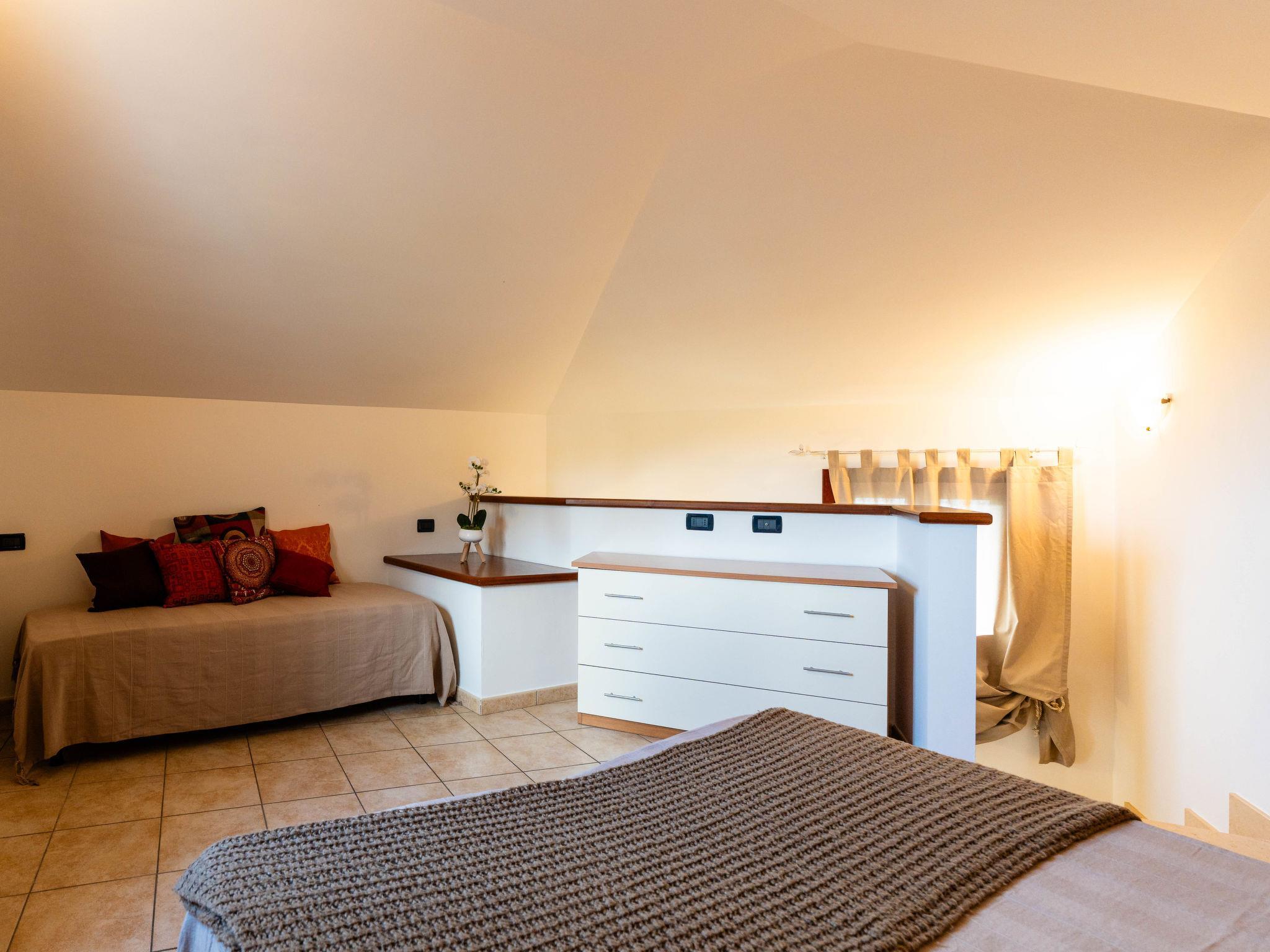 "Rosmarino", 2-room apartment 70 m2 on 2 levels, on the ground floor. Practical and cosy furnishings: living/dining room with 1 double sofabed (140 cm, length 200 cm). Exit to the balcony. Kitchenette (oven, dishwasher, 4 gas rings, toaster, kettle). Shower/bidet/WC. Upper floor: 1 double bedroom with sloping ceilings. Shower/bidet/WC. Air-conditioning. Heating available only from 01.11. to 15.04. Terrace 20 m2. Terrace furniture. View of the countryside. Facilities: baby cot for up to 2 year olds, hair dryer. Internet (WiFi, free). Parking at the house. Please note: maximum 1 pet/ dog allowed. Smoke alarm, fire extinguisher. IT009006B4MY6VRM77