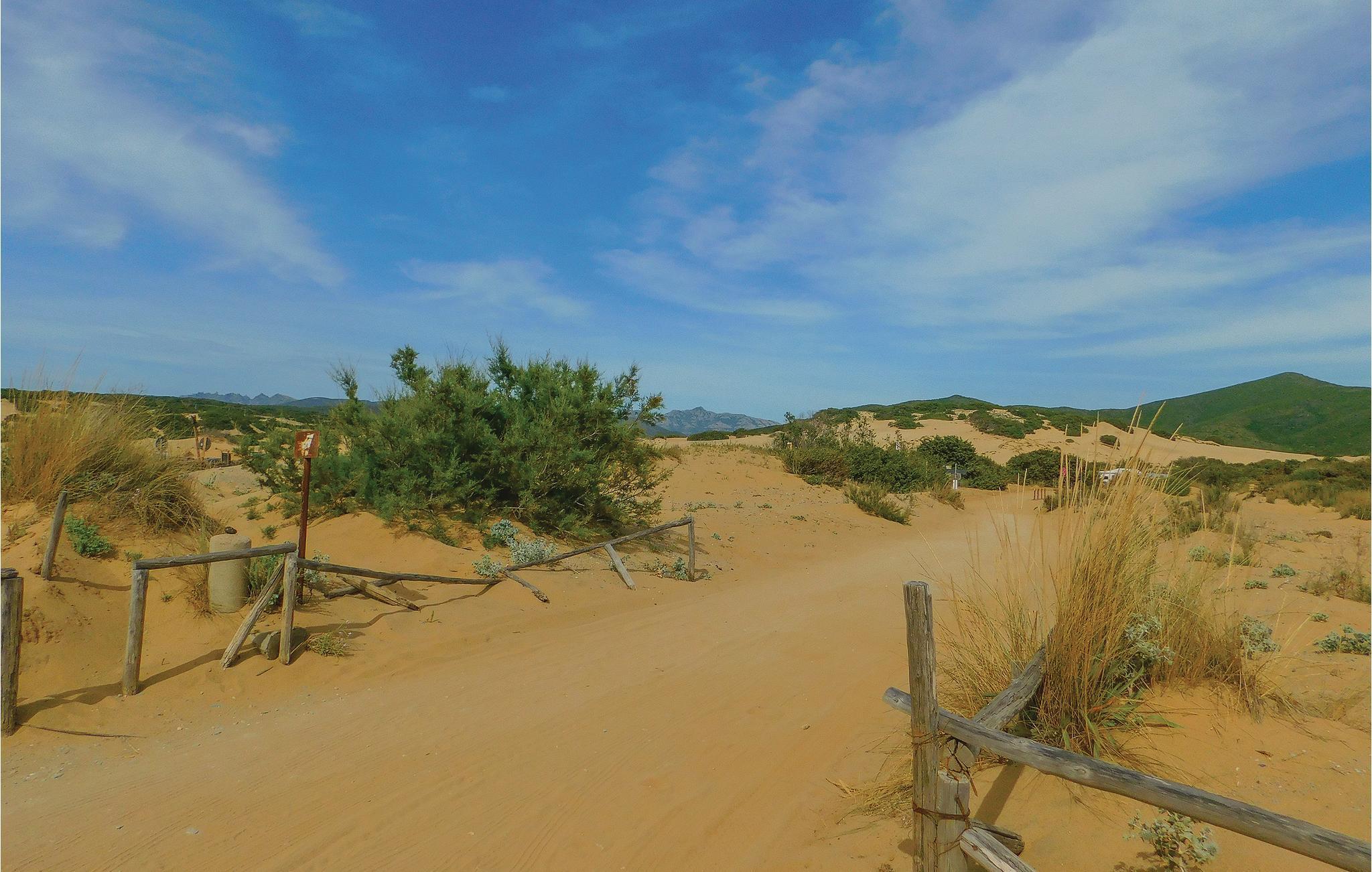 Bo kun 300 m fra stranden i denne ferielejlighed, der ligger i smukke naturomgivelser. Der er udsigt over havet og udgang til møbleret terrasse. Et ideelt feriemål til jer der vil bo i rolige omgivelser, langt væk fra masseturisme. Landskabet er præget af den mediterrane makki, lange gyldne sandstrande og op til 70 meter høje klitter og Arcuentubjerget. Smut også en tur til Piscinas stranden (3 km) og Torre dei Corsari (17 km). Her er der lavt vand, perfekt til familier med små børn. I nærheden af byen kan I sejle i kano og leje gummibåde. Her er en rampe hvorfra mindre både (som gummibåde) nemt kan sættes i vandet, så I kan lægge til, tættere ved stranden.