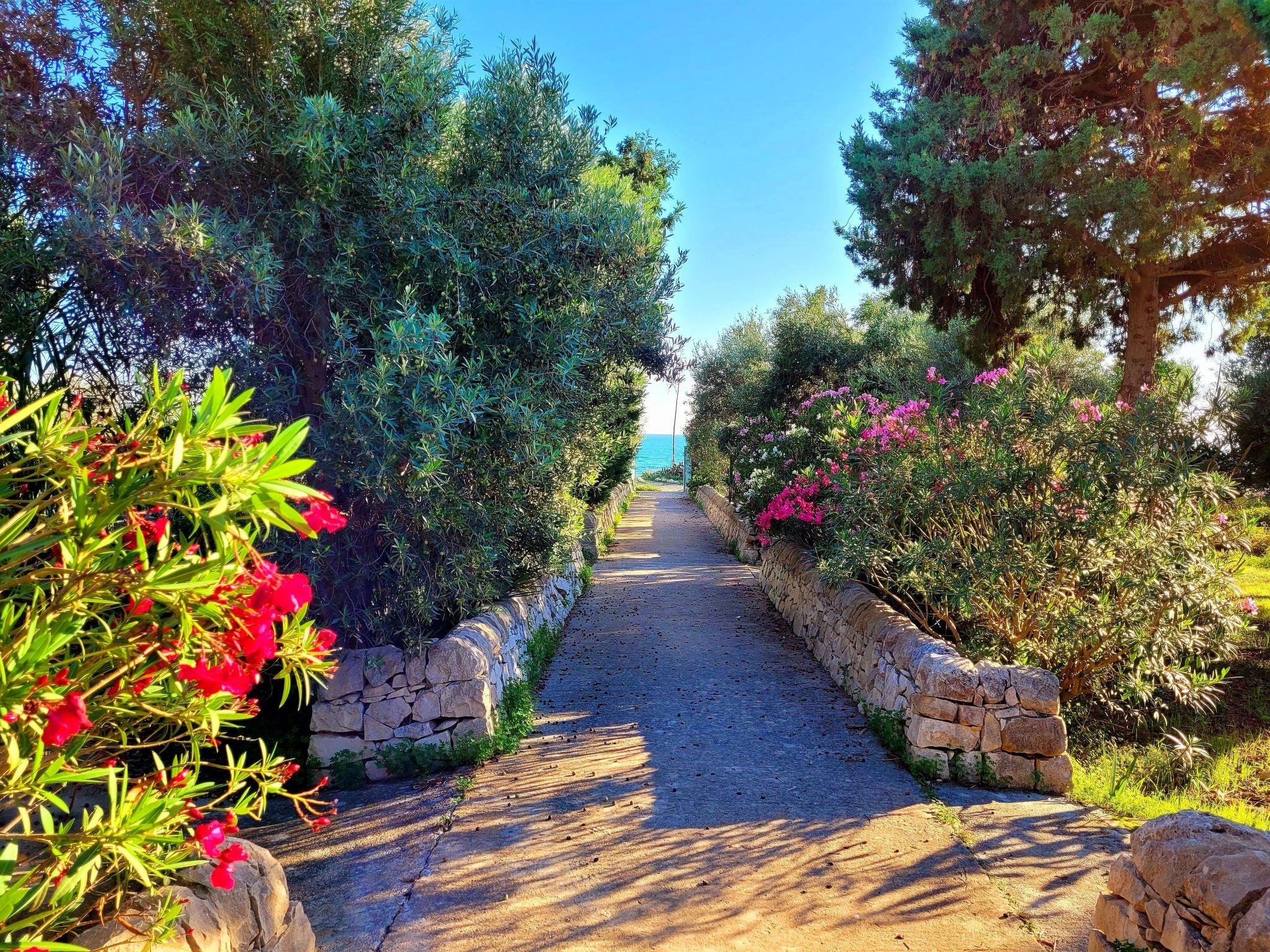 HOLIDAY HOME BY THE SEAThe small holiday house "Il Pino", together with 2 other holiday houses, is situated in a typical southern garden, directly at the sea, at a small rocky reef, which can be reached by a private entrance. The holiday home is surrounded by numerous pine trees, cacti, carob and eucalyptus trees, as well as flowering oleander and hibiscus bushes.Beautiful dune beaches and romantic bays are only 2 minutes away from the garden by car.