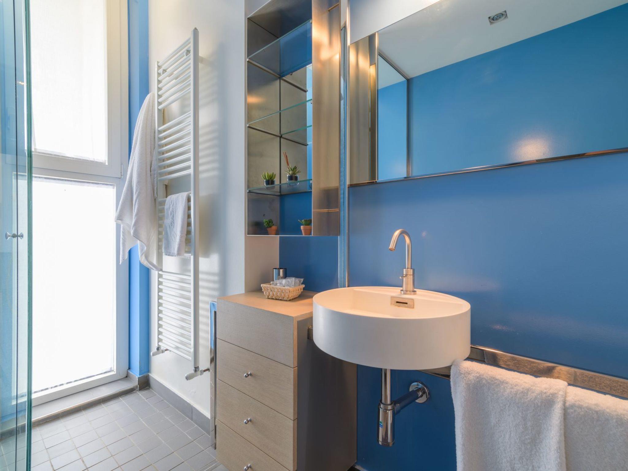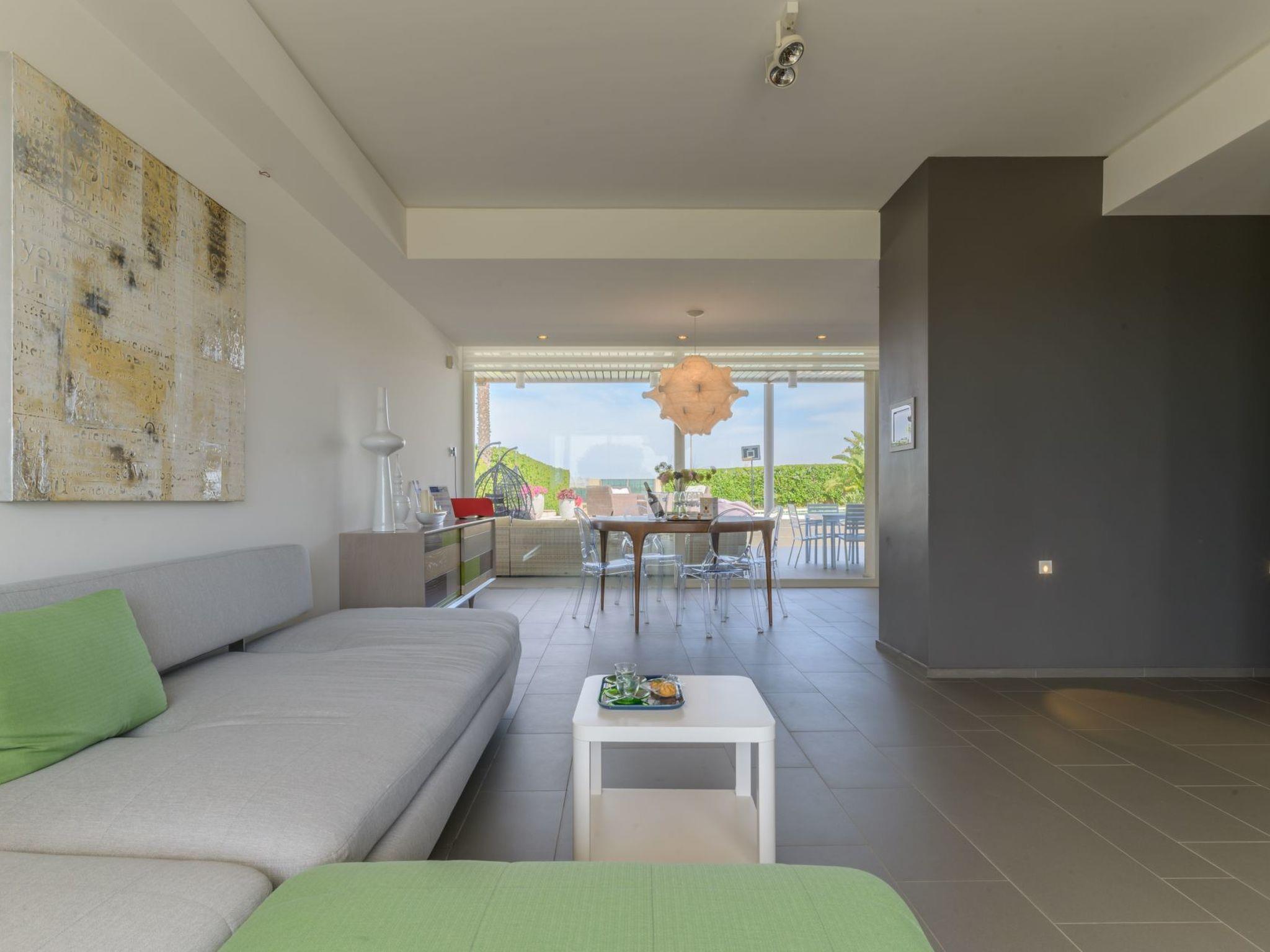 The villa, bright and tastefully furnished, offers modern and minimalist interiors with designer furniture.
