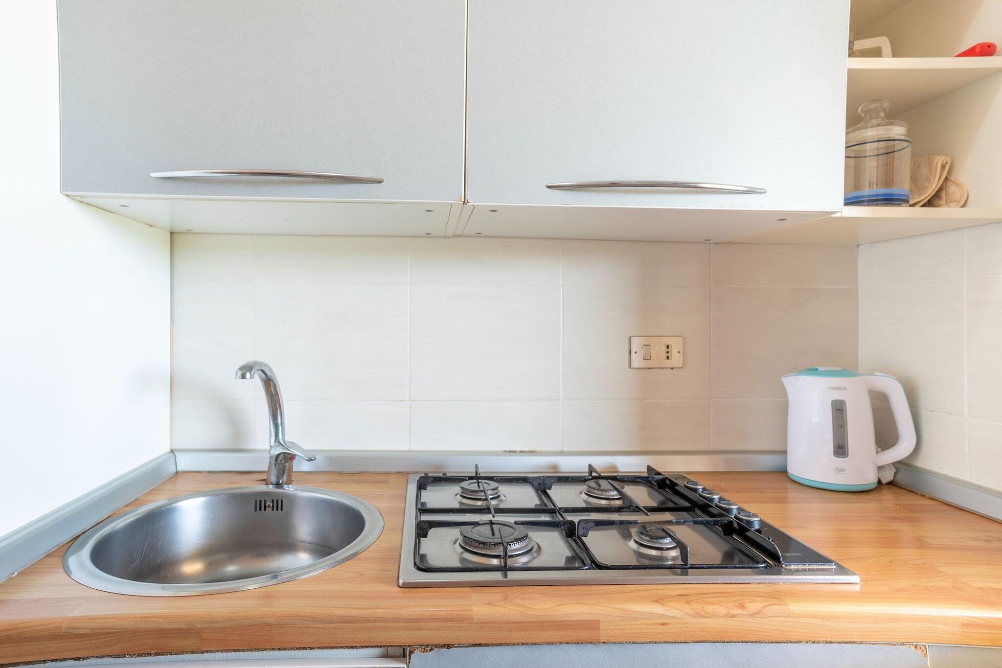 Dette hyggelige studie til 2 tilbyder et komfortabelt og funktionelt opholdsrum med en stue med et åbent tekøkken udstyret med komfur, køleskab med fryser og alt det nødvendige til dit ophold. Opholdsområdet omfatter også en dobbelt sovesofa, et tv og et spisebord til måltider og afslapning. Badeværelset har bruser, håndvask, toilet og bidet, hvilket sikrer en behagelig og behagelig oplevelse under dit ophold. Lejlighederne ligger i stueetagen og har en terrasse med indhegnet have eller på første sal med en beboelig veranda; begge tilbyder det perfekte sted til udendørs afslapning. Yderligere faciliteter omfatter parkering og aircondition (ikke tilgængelig i alle enheder). Da lejlighederne er individuelt ejet og indrettet i forskellige stilarter, kan layout og indretning (klassisk, enkel/basic) variere, men den overordnede kvalitet og komfort forbliver den samme.