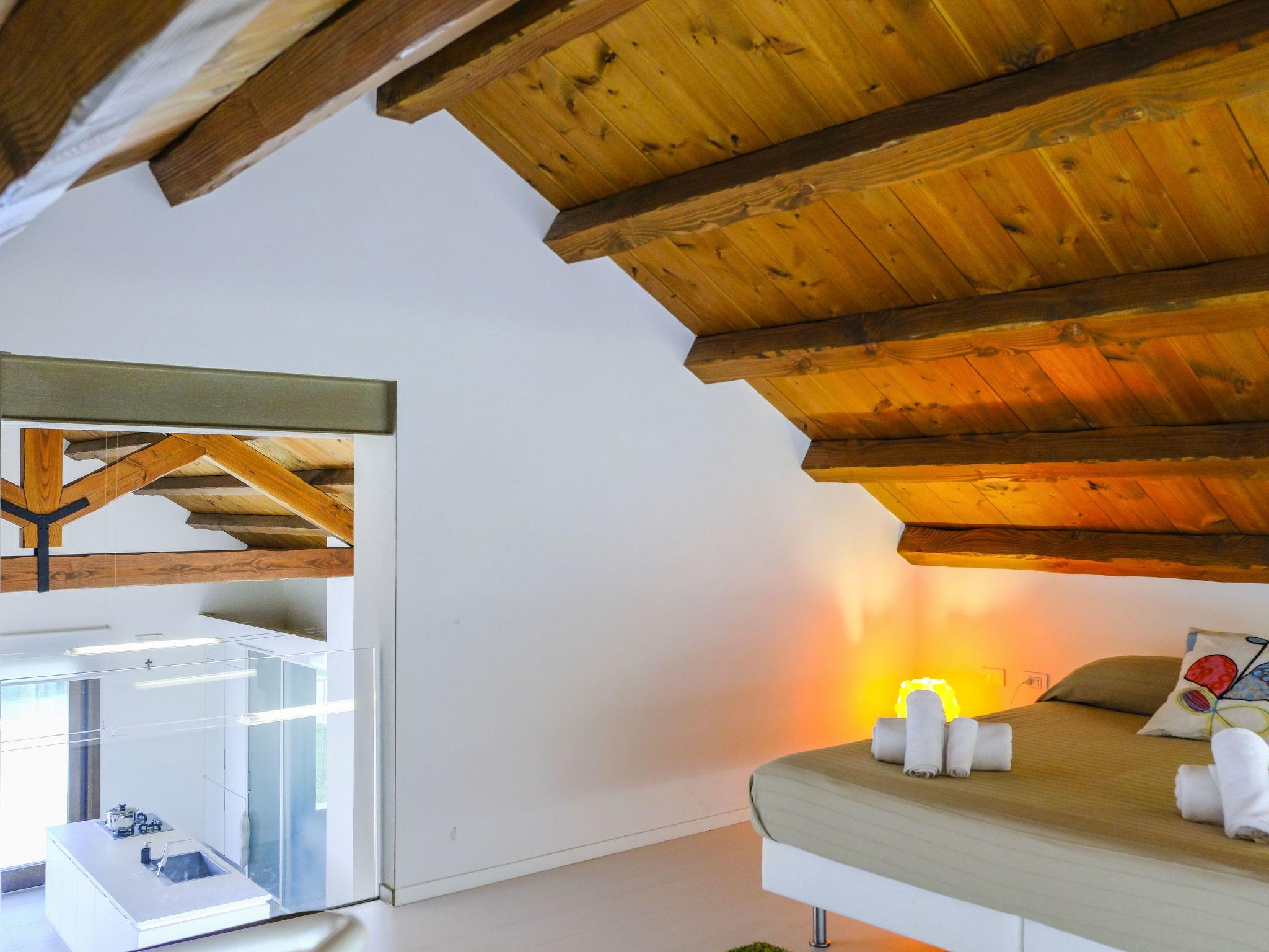 The villa is on one level and consists of two buildings. In the main building we find the sleeping area, while the living area is located in the loft that the owners have carefully transformed, respecting the original character of the pre-existing architecture. In fact, they have been preferred combinations between raw and natural materials, such as stone floors, while the ceiling has been kept in chestnut wood, so you can notice a continuity between indoor and outdoor environments. The sleeping area consists of two double bedrooms, a twin bedroom and a single bedroom. Another double bedroom is located in the loft.The furniture is neat and essential, creates a warm and comfortable environment,There are two bathrooms with shower.
