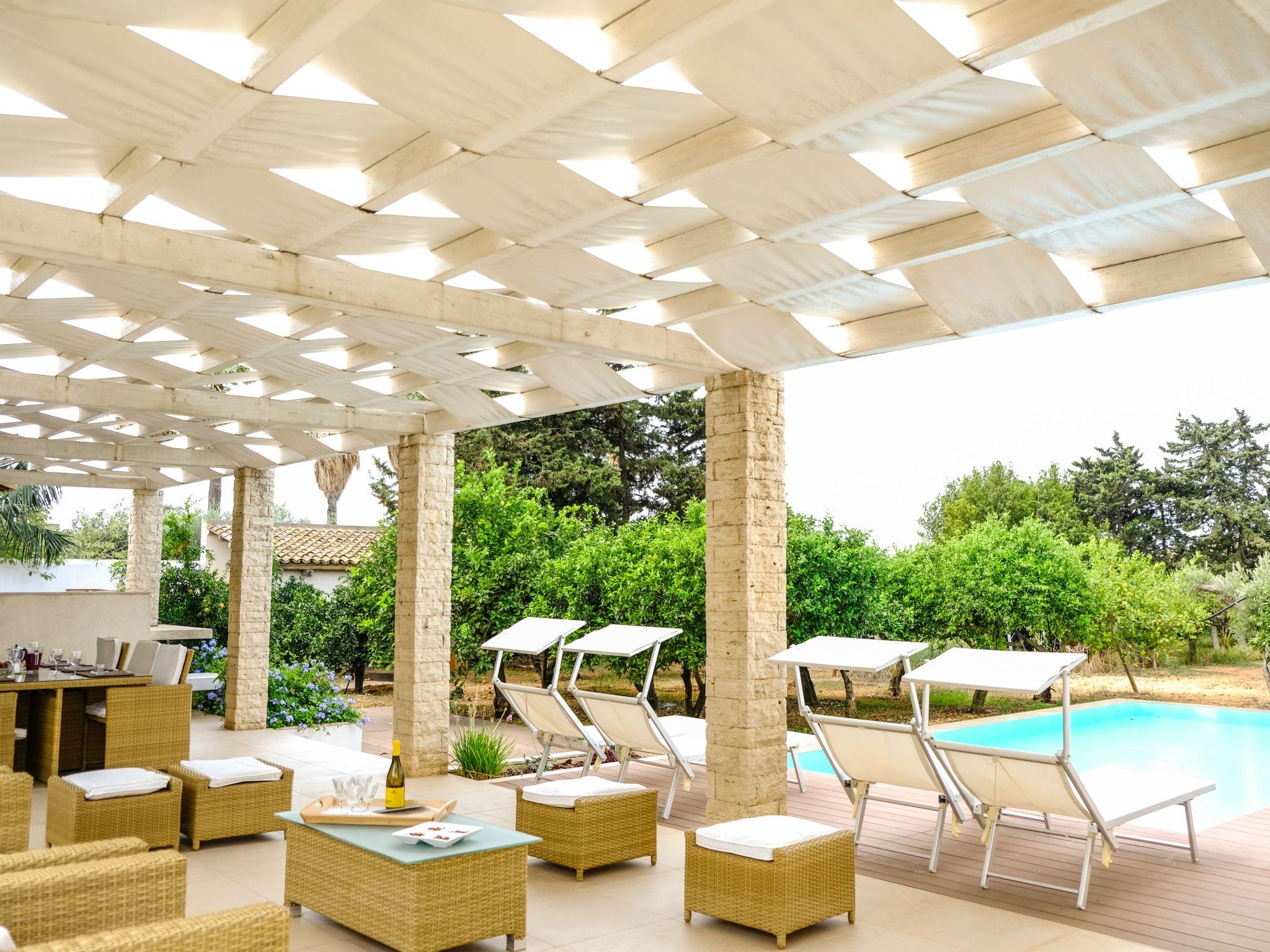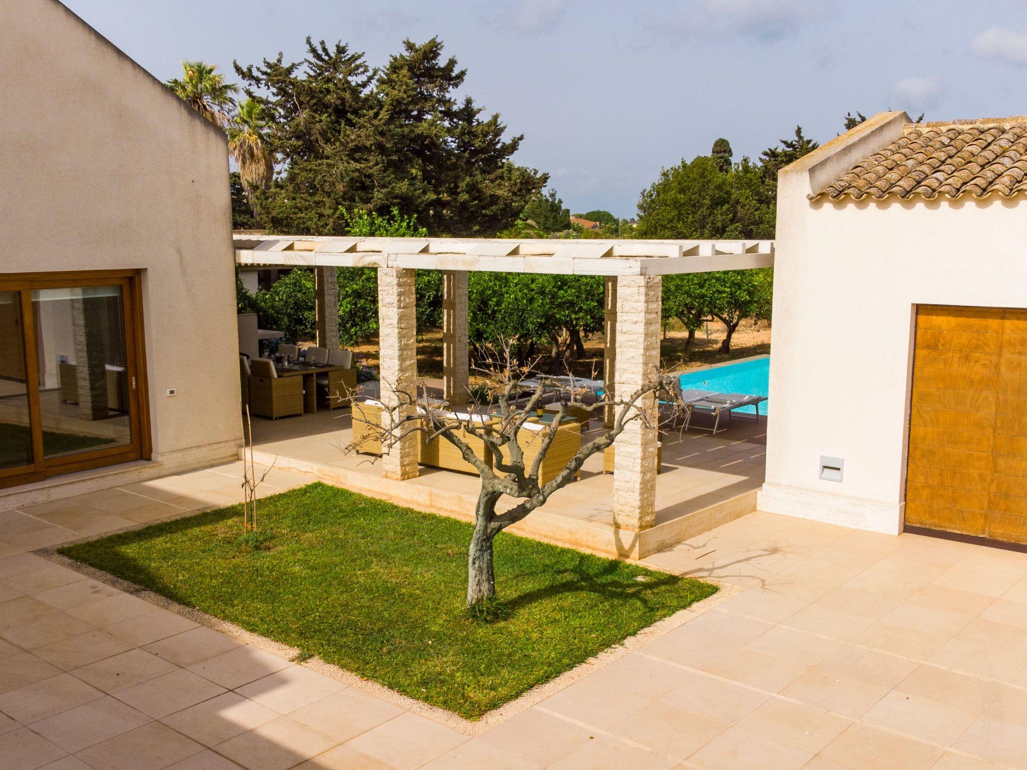 The house is surrounded by a fragrant citrus grove. The pool and patio are perfect for spending pleasant moments of relaxation in the open air.