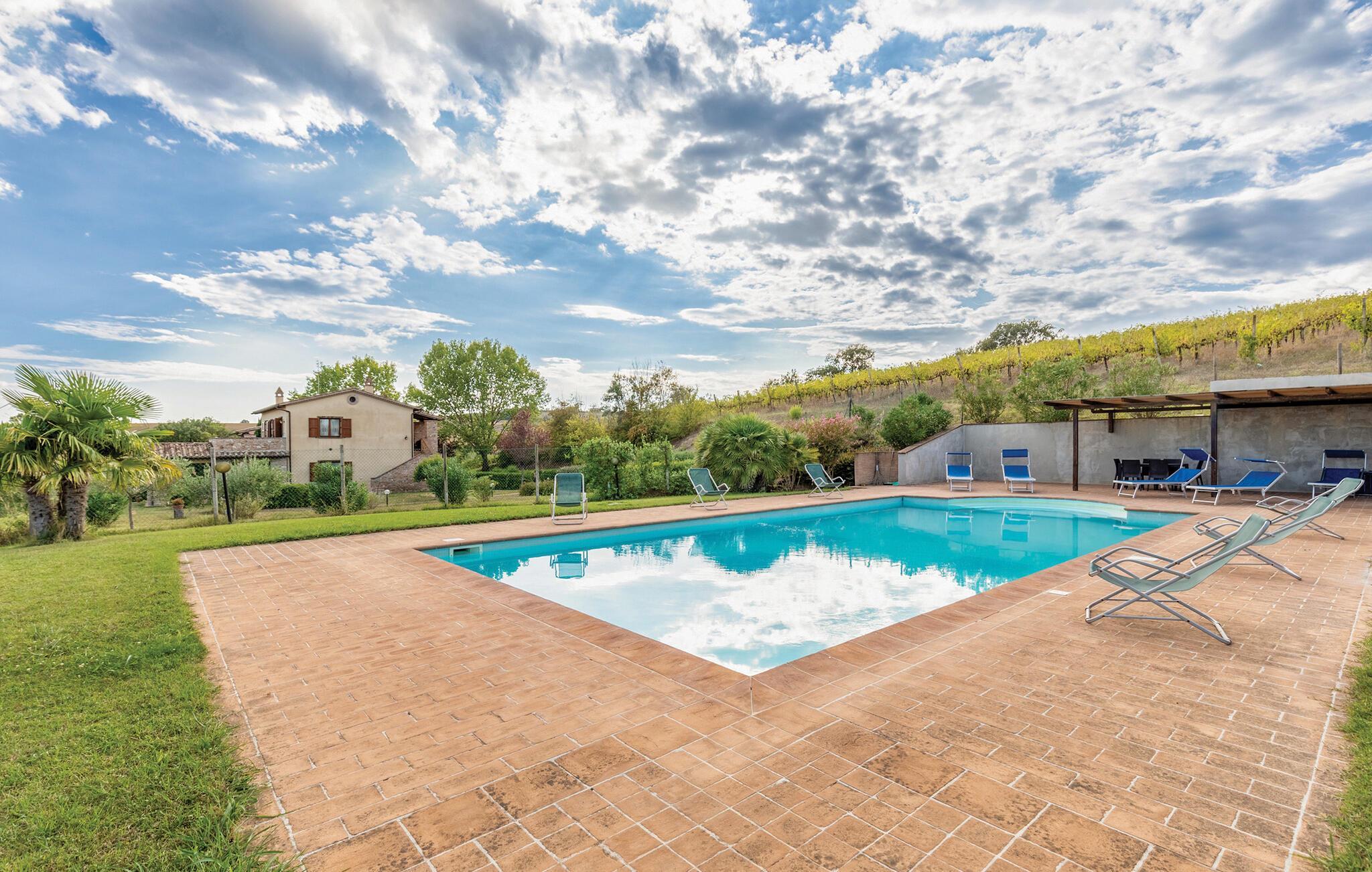 Huset er blevet renoveret og opdelt i fire rummelige lejligheder (IUP758, IUP759 og IUP761), der også kan lejes samlet med i alt 16 sovepladser under IUP773. Nyd de rolige omgivelser og panoramaudsigten over landskaberne. Til gæsternes fælles brug er der en dejlig swimmingpool. Bolig: Første sal (80 m²) byder på en rummelig (spise-)stue med tv og en privat trappe ned til et grønt område på ca. 200 m², køkkenhjørne, dobbeltværelse med badeværelse med brusebad (vaskemaskine).